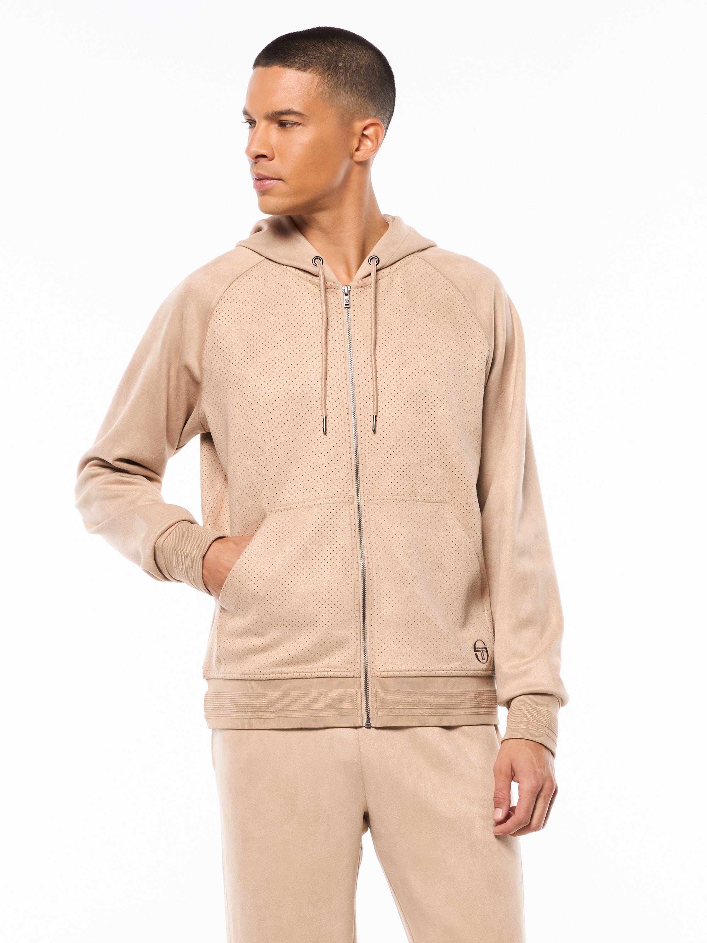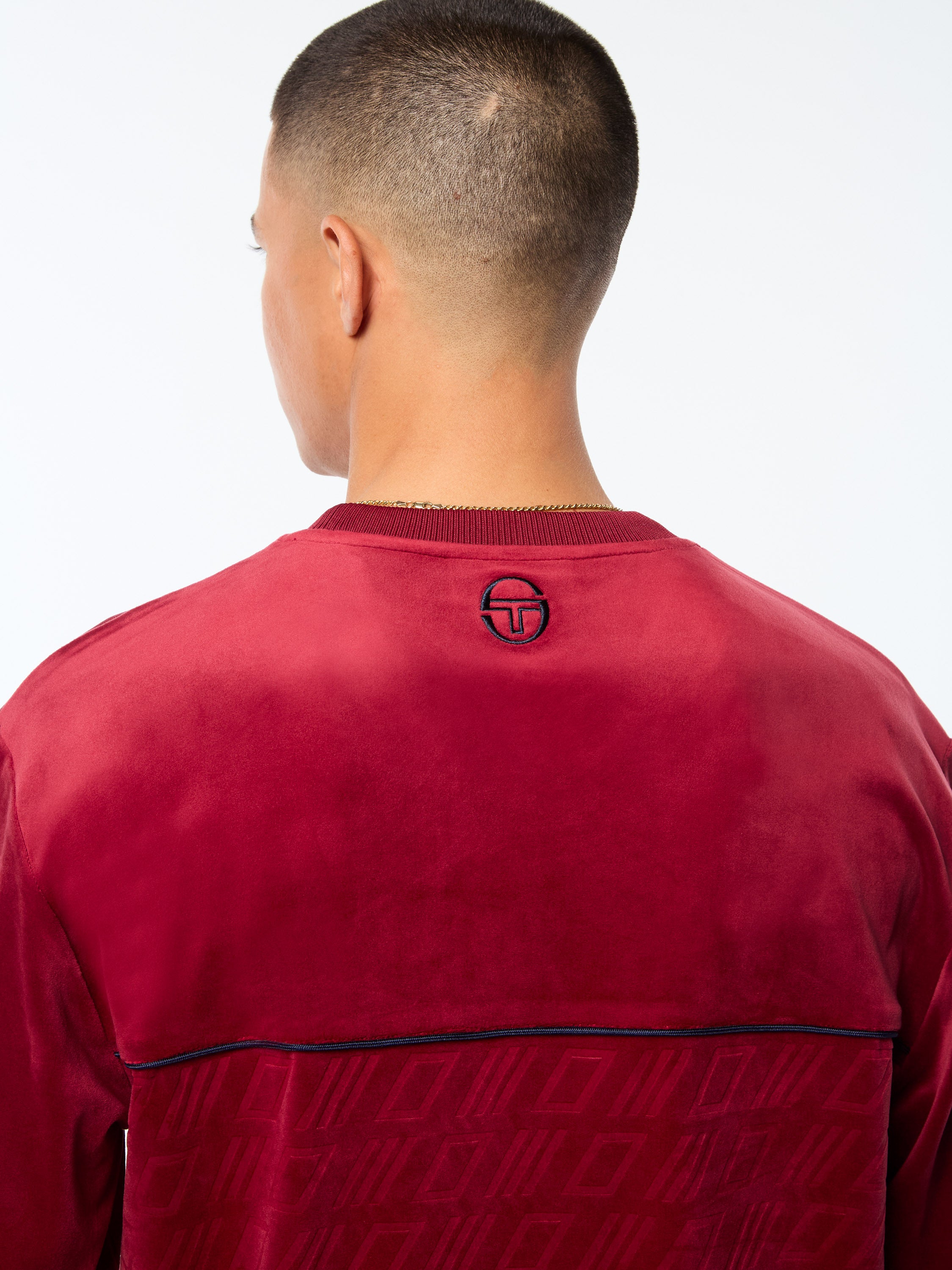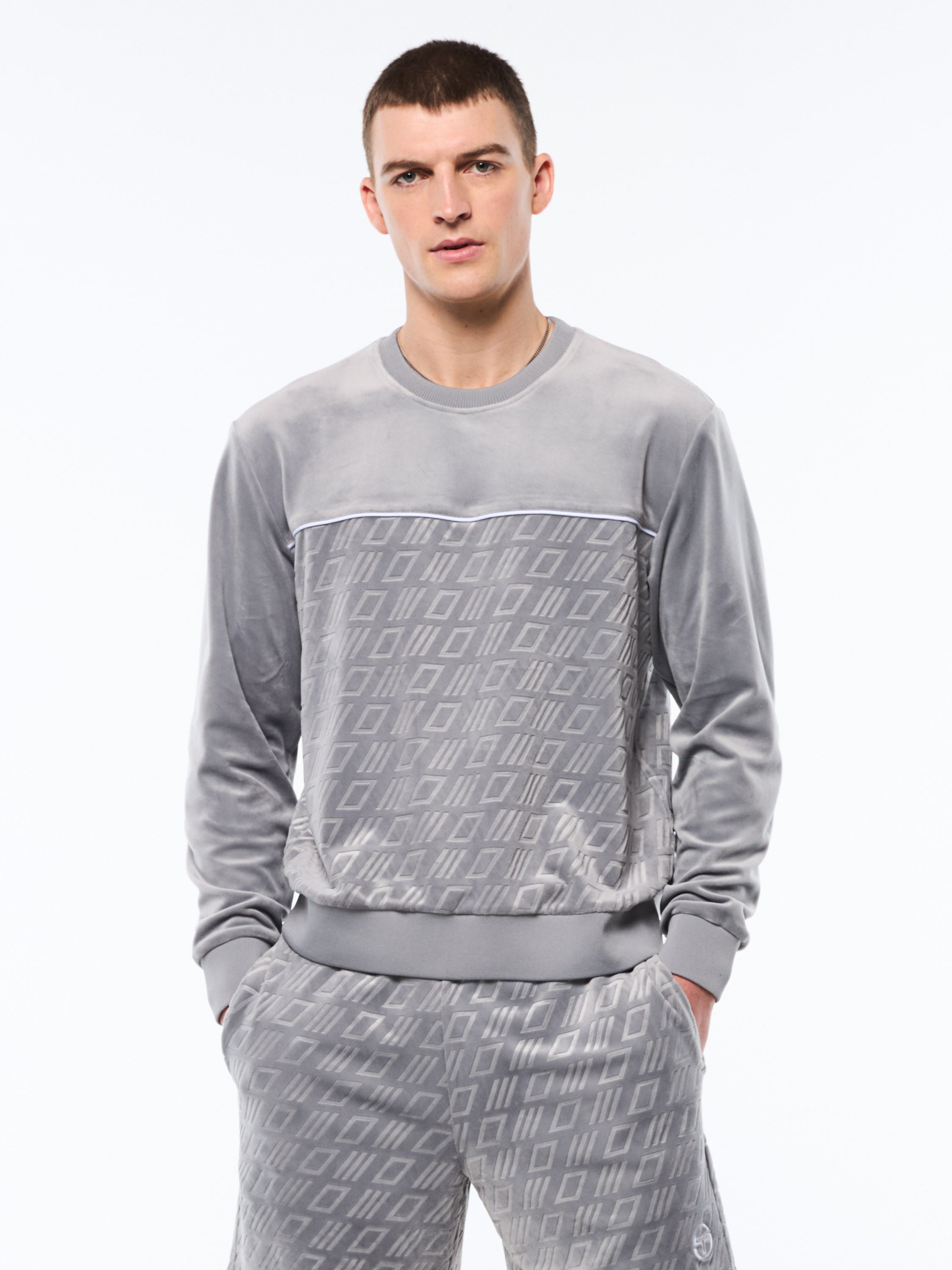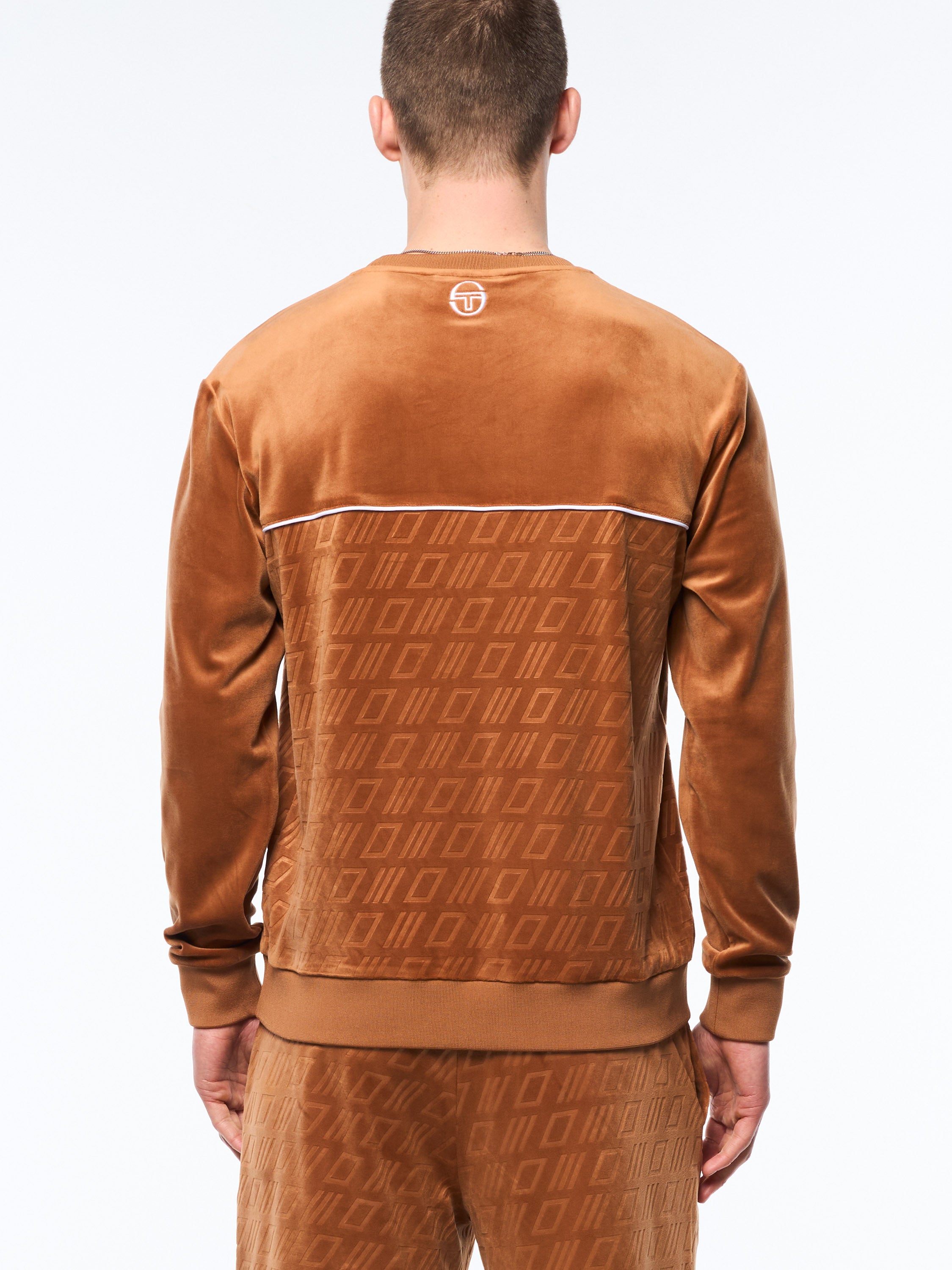 Bandiera Debossed Velour Crewneck-Sugar Almond