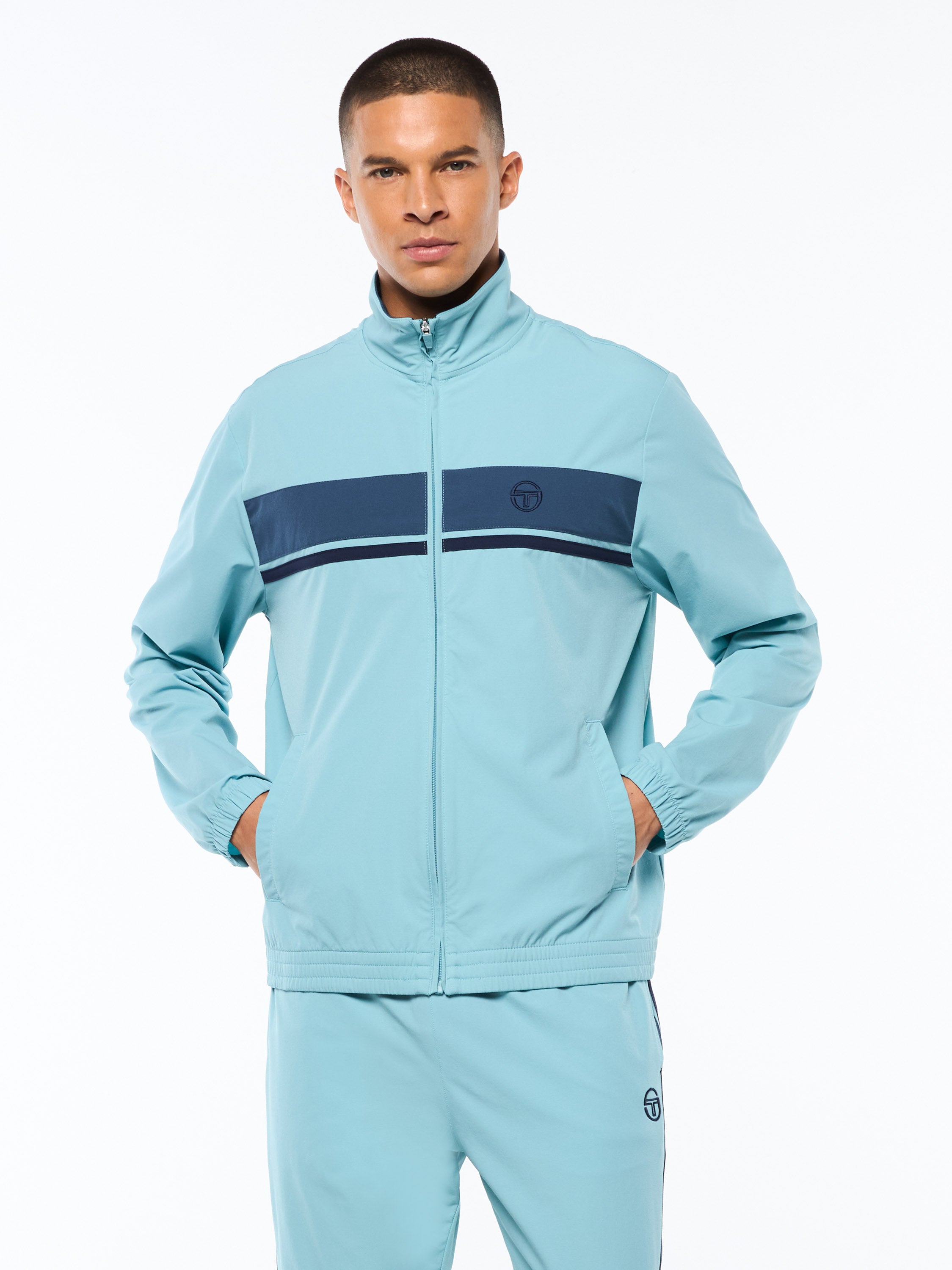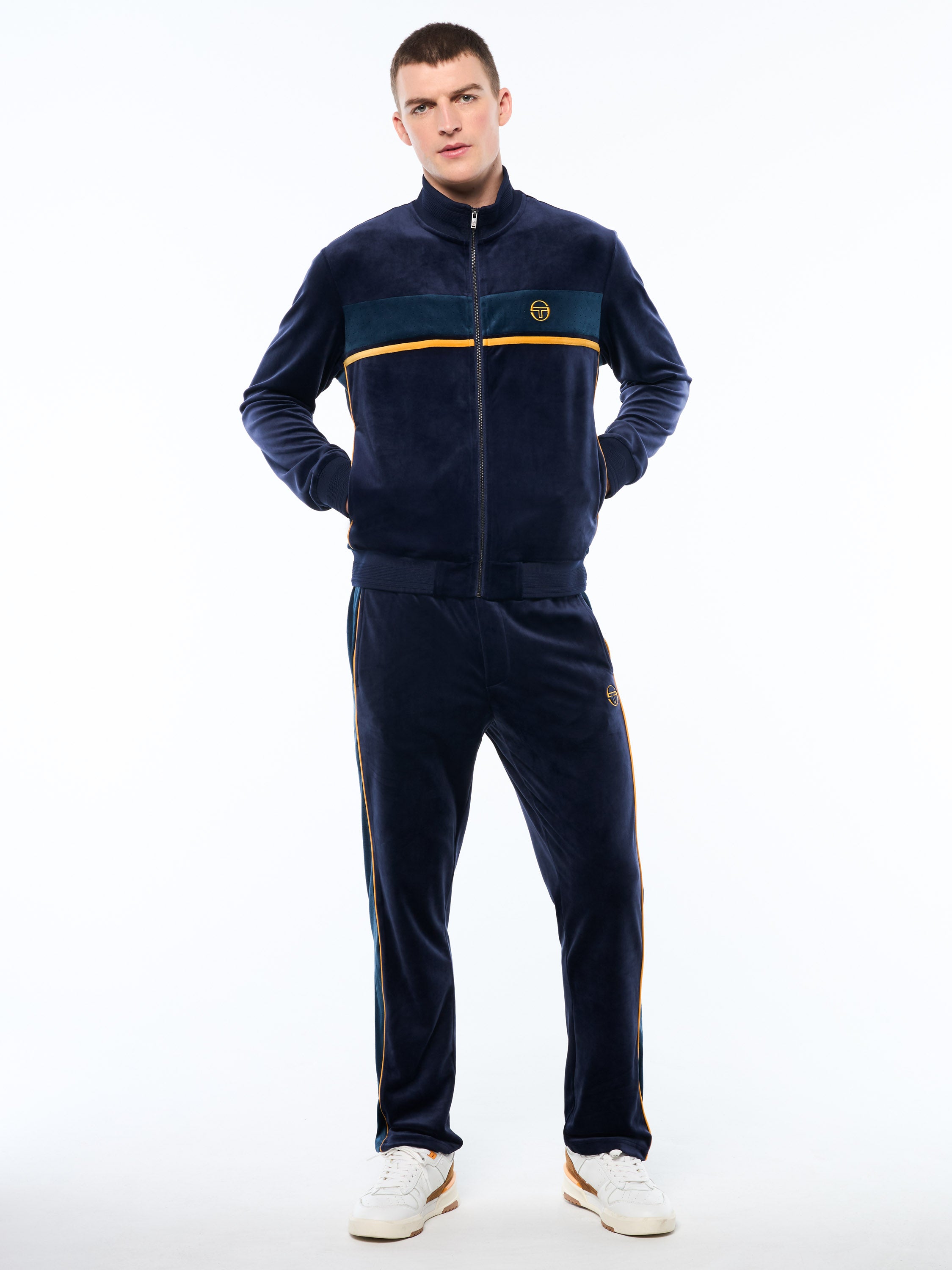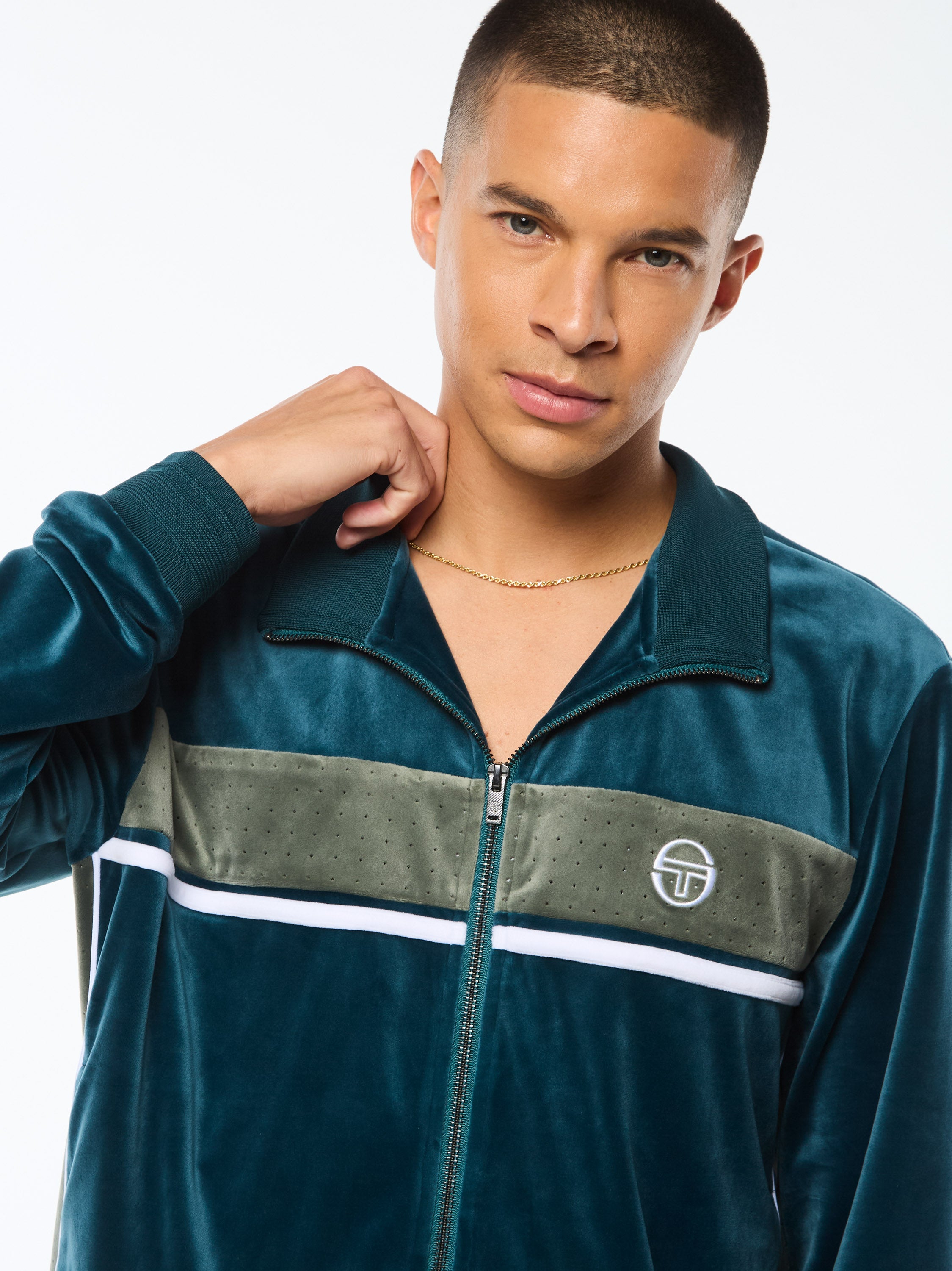 Forato Velour Track Jacket-Maritime Blue