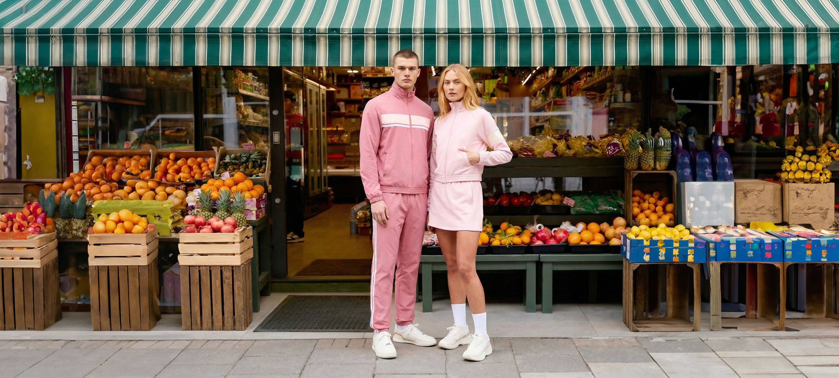 Matching hues, complementary cuts. Coordinated color for two.