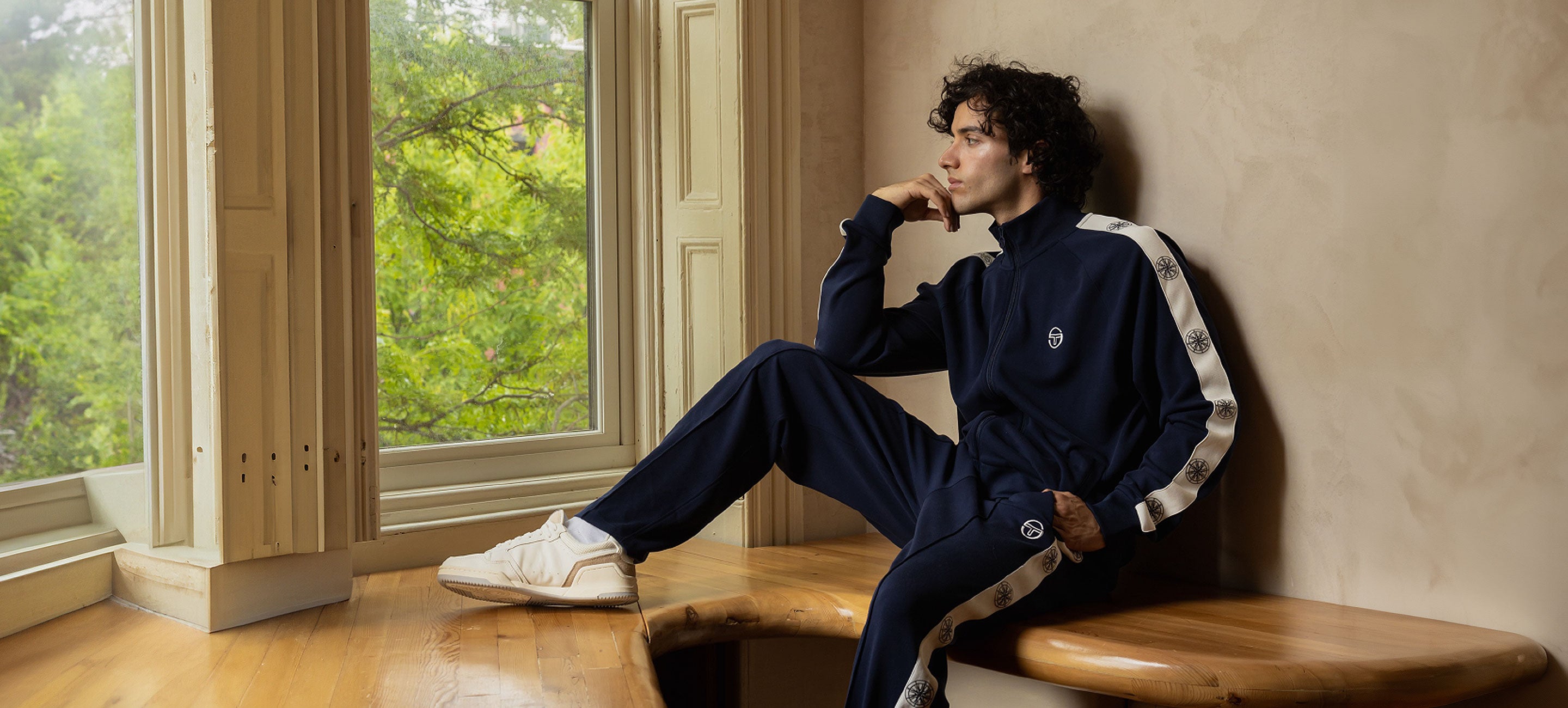 Bandiera Debossed Velour Crewneck-Sugar Almond