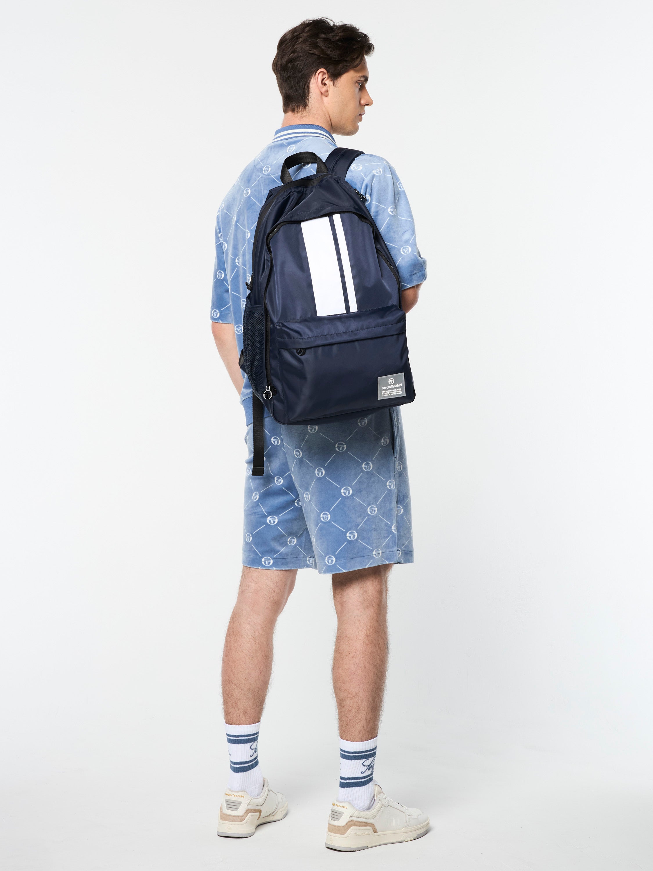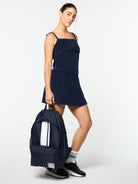 Pack up for a pickup game or a weekend getaway with our versatile Tennis Backpack, featuring a spacious main compartment and padded inner sleeve to secure your tennis racket or laptop. Complete with a convenient front zip pocket for easy access to keys and small necessities, this go-anywhere backpack is finished with our Damarindo stripe and a woven logo label at the front.