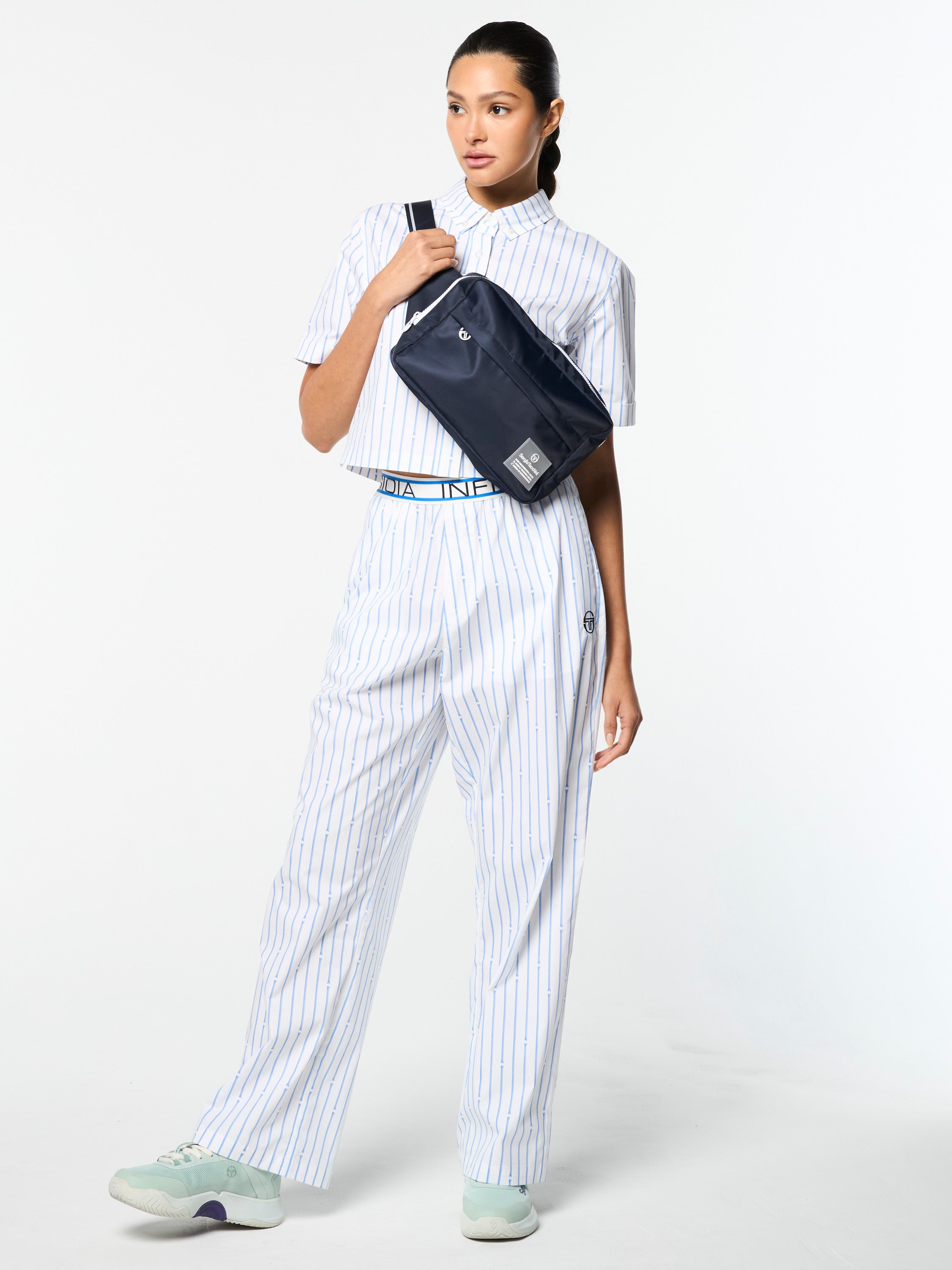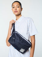 Perfect for everyday outings and travel, our versatile Belt Bag boasts a spacious zippered main compartment and front pocket to secure your essentials when you're on the go. The adjustable webbing strap can be slung at the chest for close-fitting comfort or secured across the waist as an oversized fanny pack. Featuring a custom woven label at the front, this street-ready bag is finished with Damarindo stripe accents and 'ST' monogram details.
