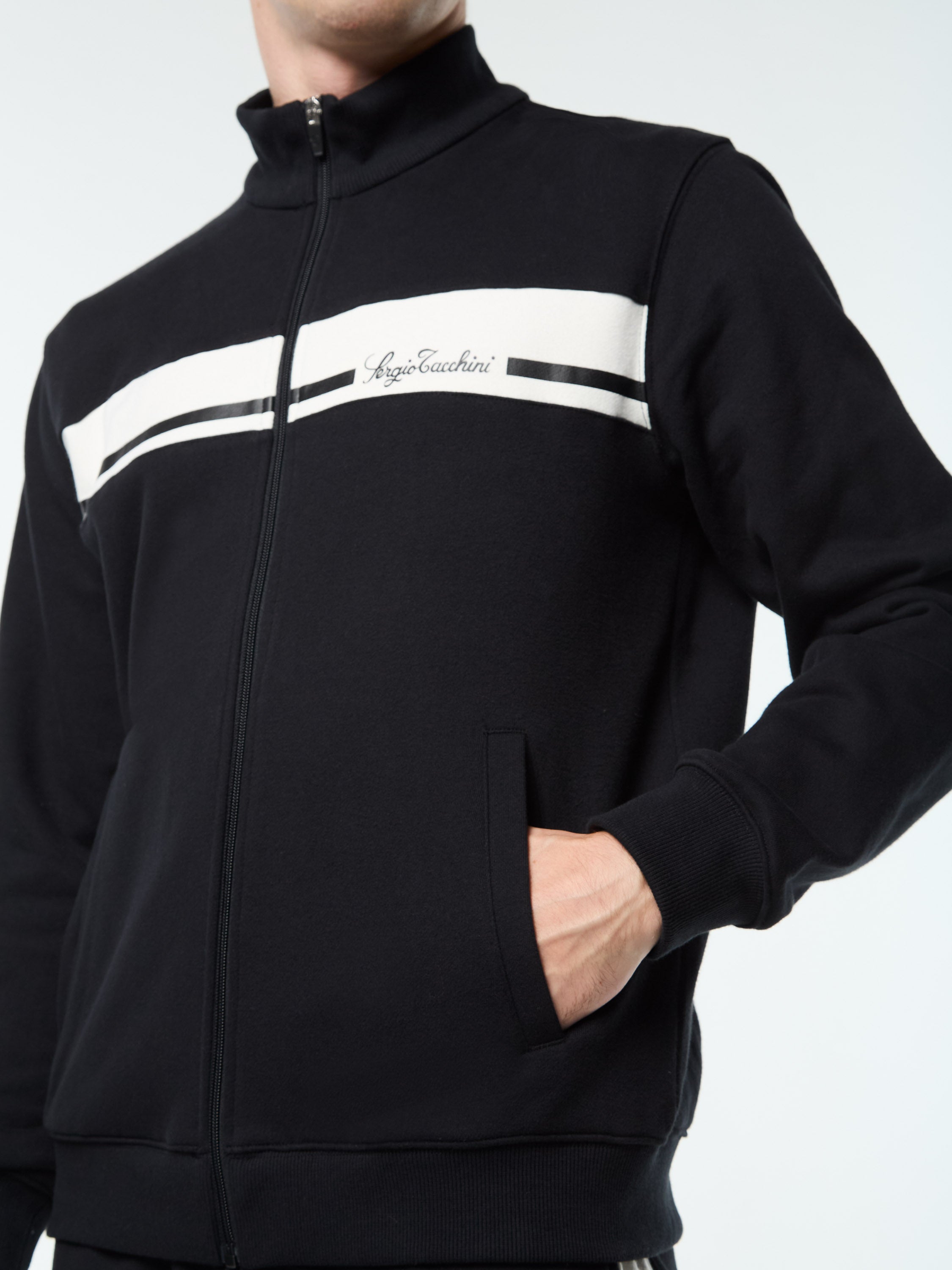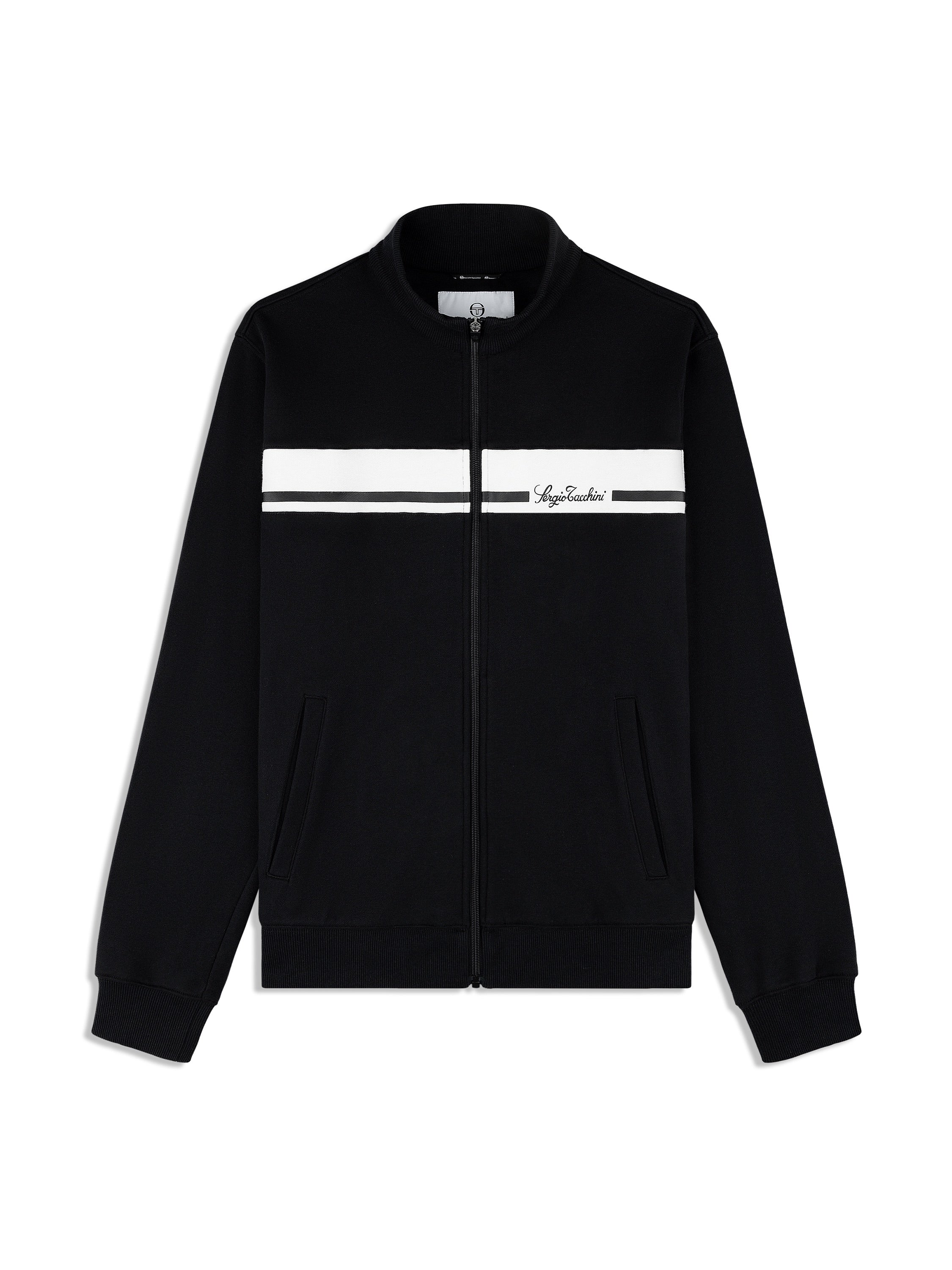Heritage sport styling, elevated for your everyday. The Cursivo Track Jacket is crafted from soft cotton French terry for a plush, breathable feel that moves with you. A bold contrast chest panel with vintage-inspired Sergio Tacchini script adds a heritage hit, while ribbed trims and welt hand pockets keep things refined and functional.