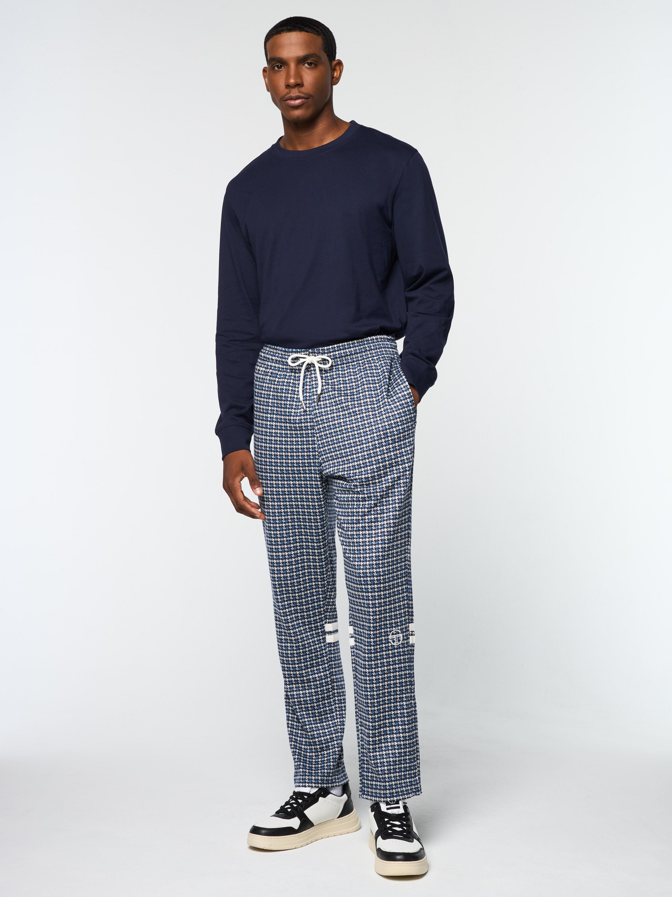 Keep it classy with the Dallas Houndstooth Track Pant, featuring an all-over houndstooth check pattern, taping stripes at the rear lower legs, and a custom woven label at the rear right zip pocket. An elevated spin on a Tacchini classic, the pants are finished with a comfortable drawstring waistband and adjustable ankle zips.
