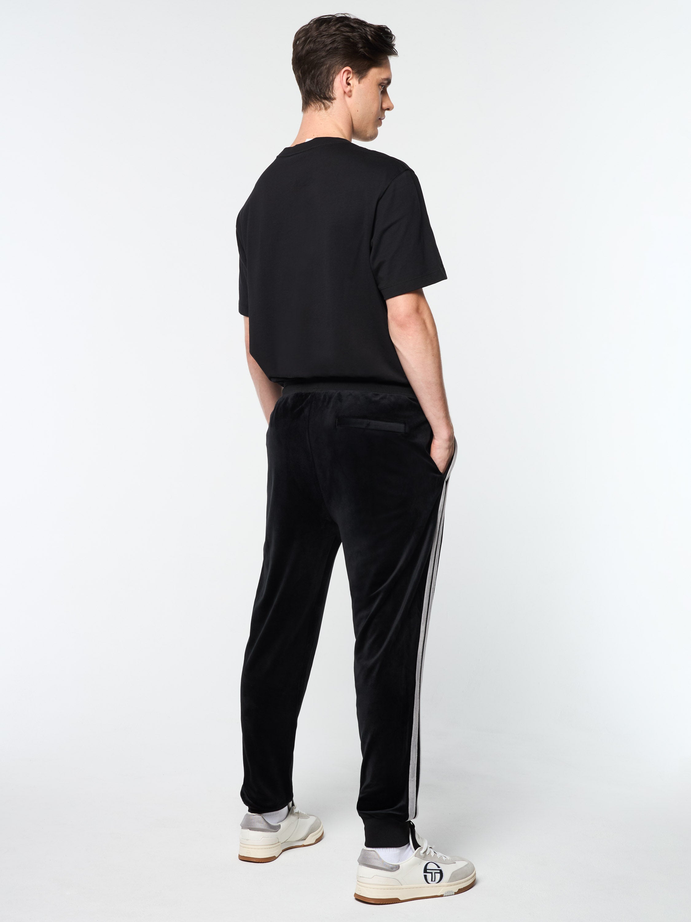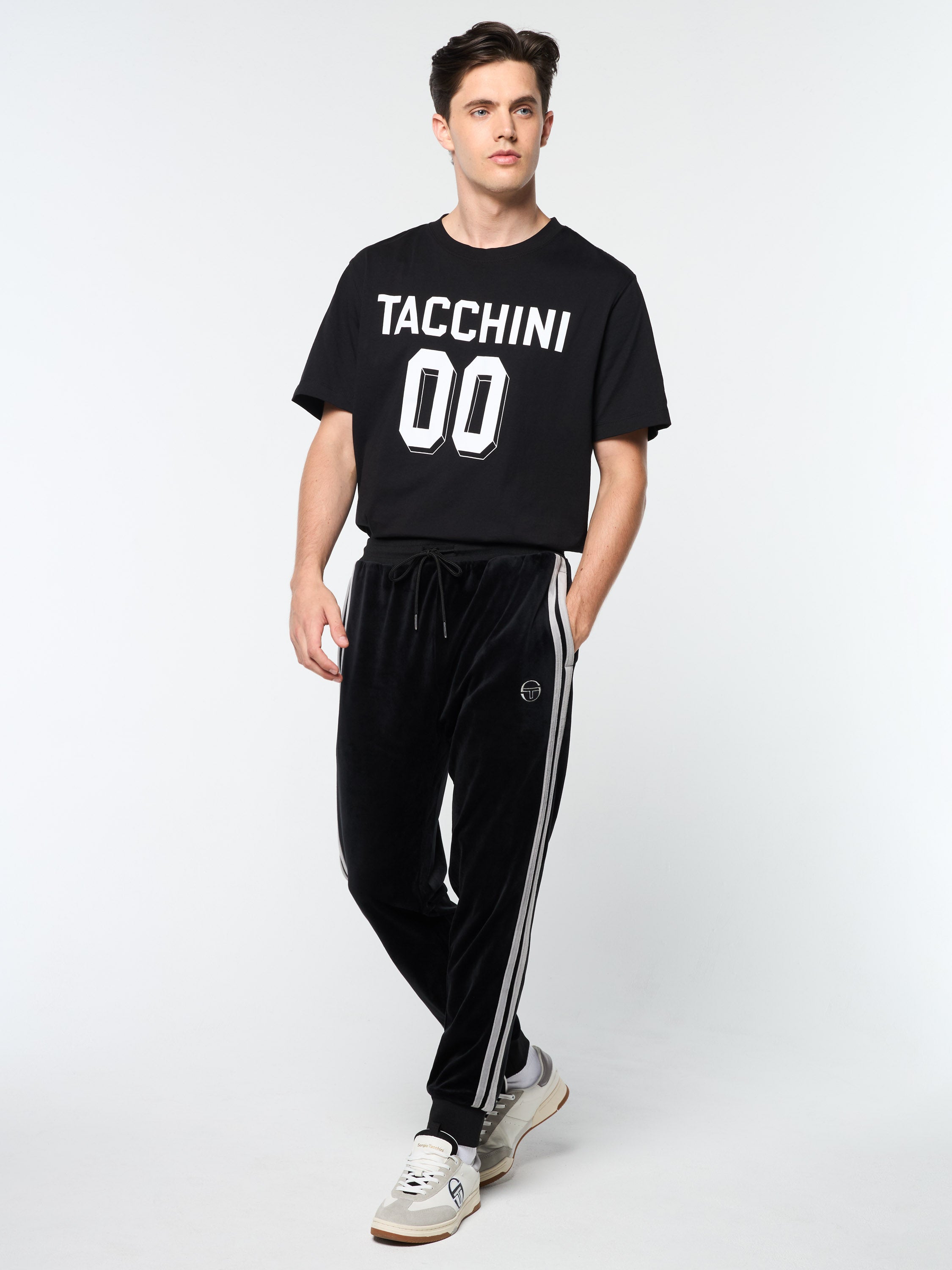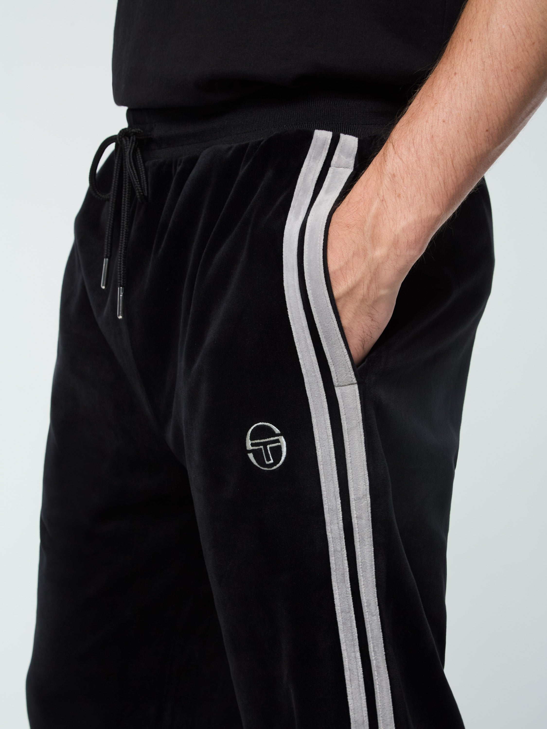 A premium take on a Tacchini classic, the Damarindo Velour Track Pant is crafted from plush velour for a luxurious feel. Topped with a comfortable rib-knit waistband, these elevated track pants are complete with double stripe taping down the legs, spacious pockets, and our iconic 'ST' monogram logo embroidered at the left thigh.