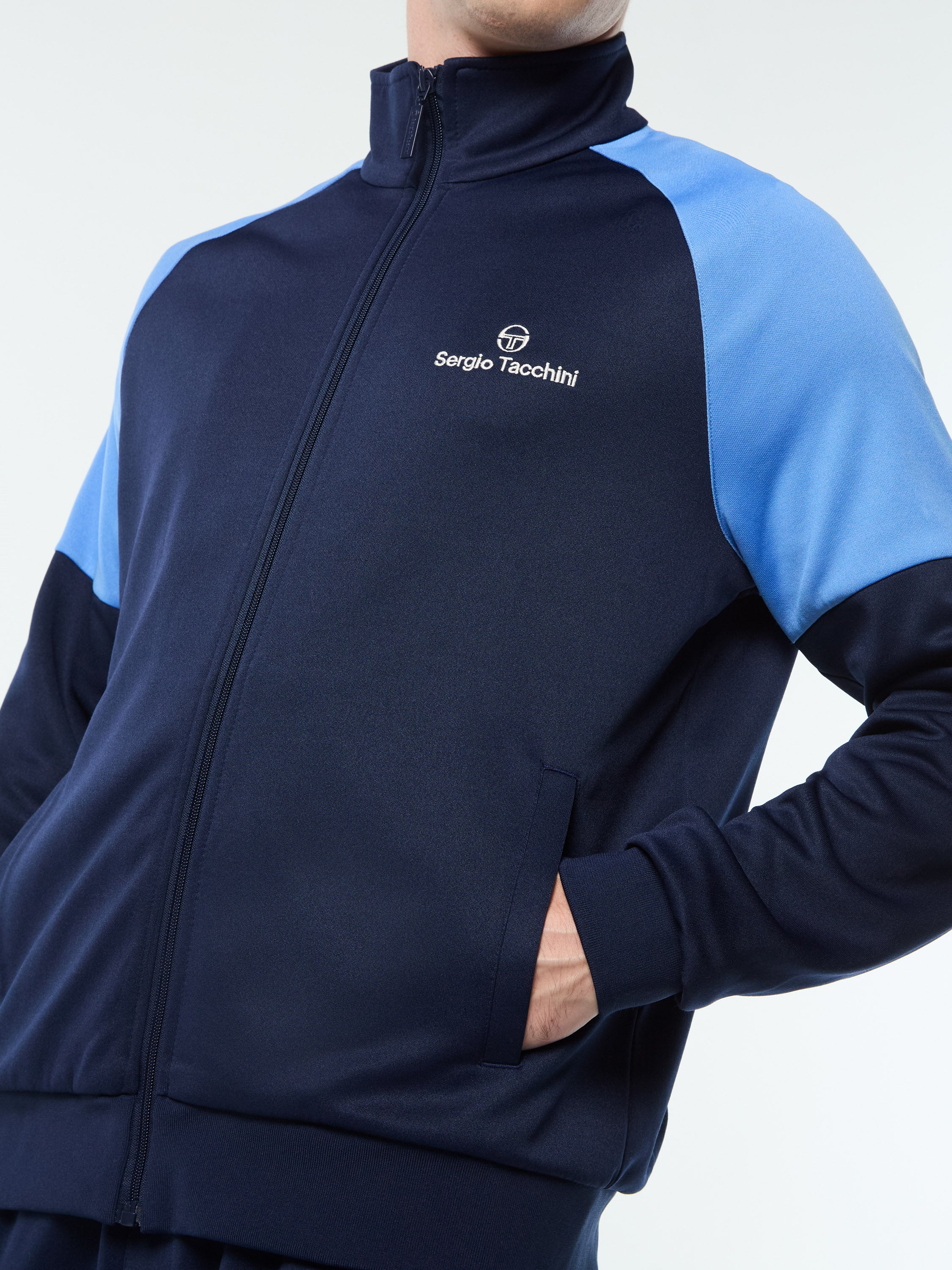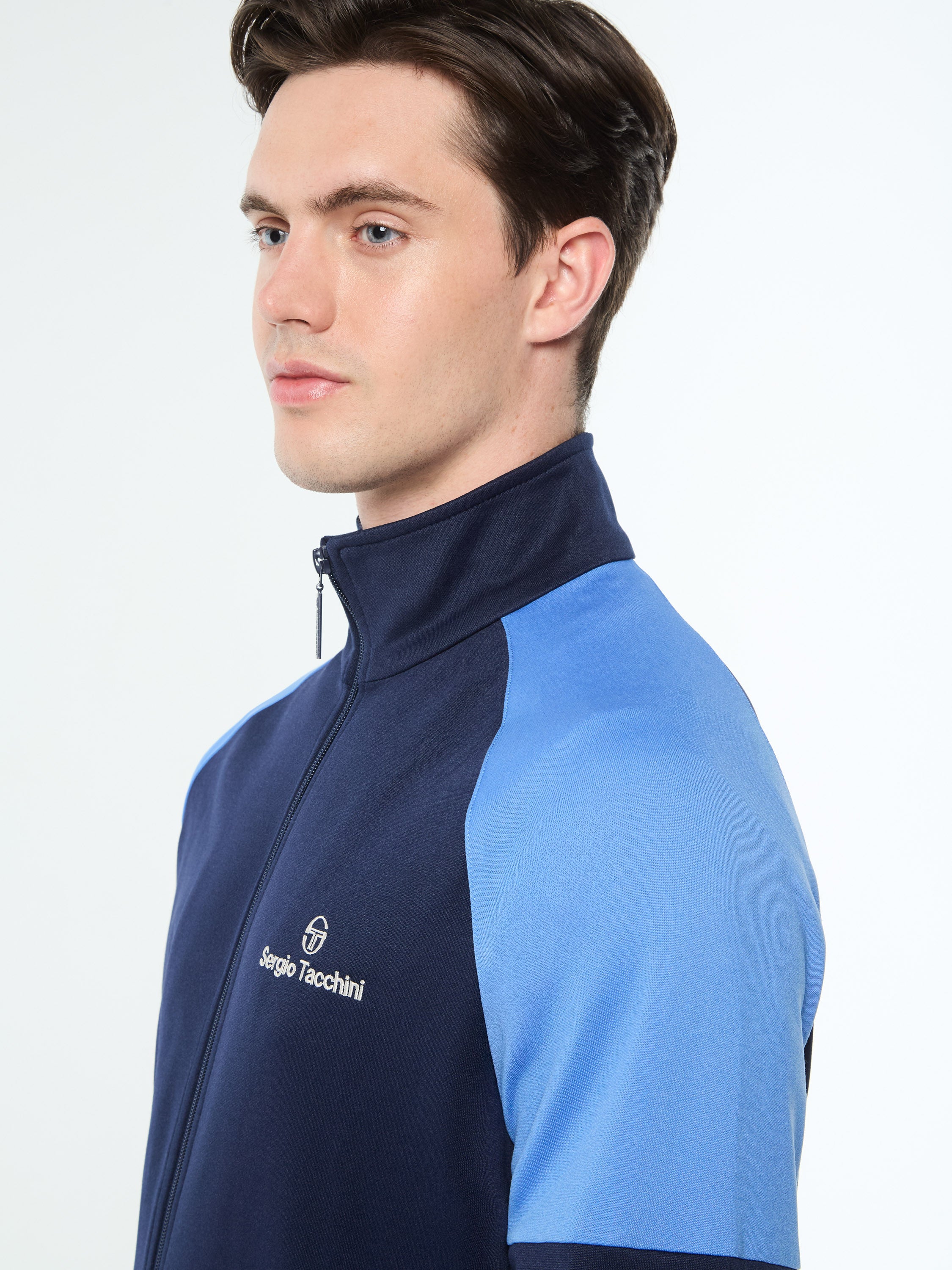 A refined take on retro sport style, the Spacco Track Jacket is crafted from premium double-face knit fabric for structure, softness, and all-day comfort. Designed with clean color-blocked shoulder panels, this elevated full-zip features a stand-up collar, welt hand pockets, and rib-knit trims for a tailored finish. Layer it over a tee for casual weekend wear or style it with the matching track pant for a coordinated look.