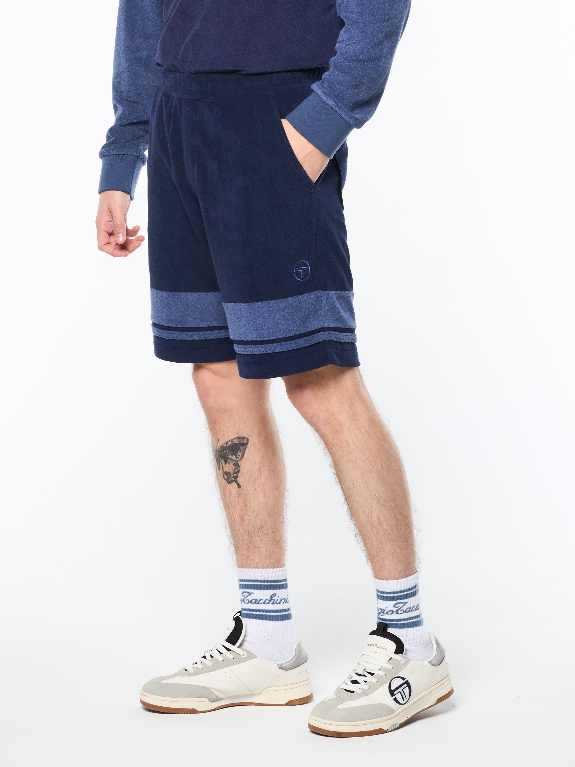 Keep it classy in our premium Alvar Short, crafted from incredibly soft and absorbent terry towel fabric to keep you comfortable during a match on the court or a night out. Featuring our distinctive Damarindo double stripe at the lower legs, these elevated shorts are an effortless blend of style and sportiness.Pair with the Alvar Long Sleeve Polo for the full fit. (Sold separately)