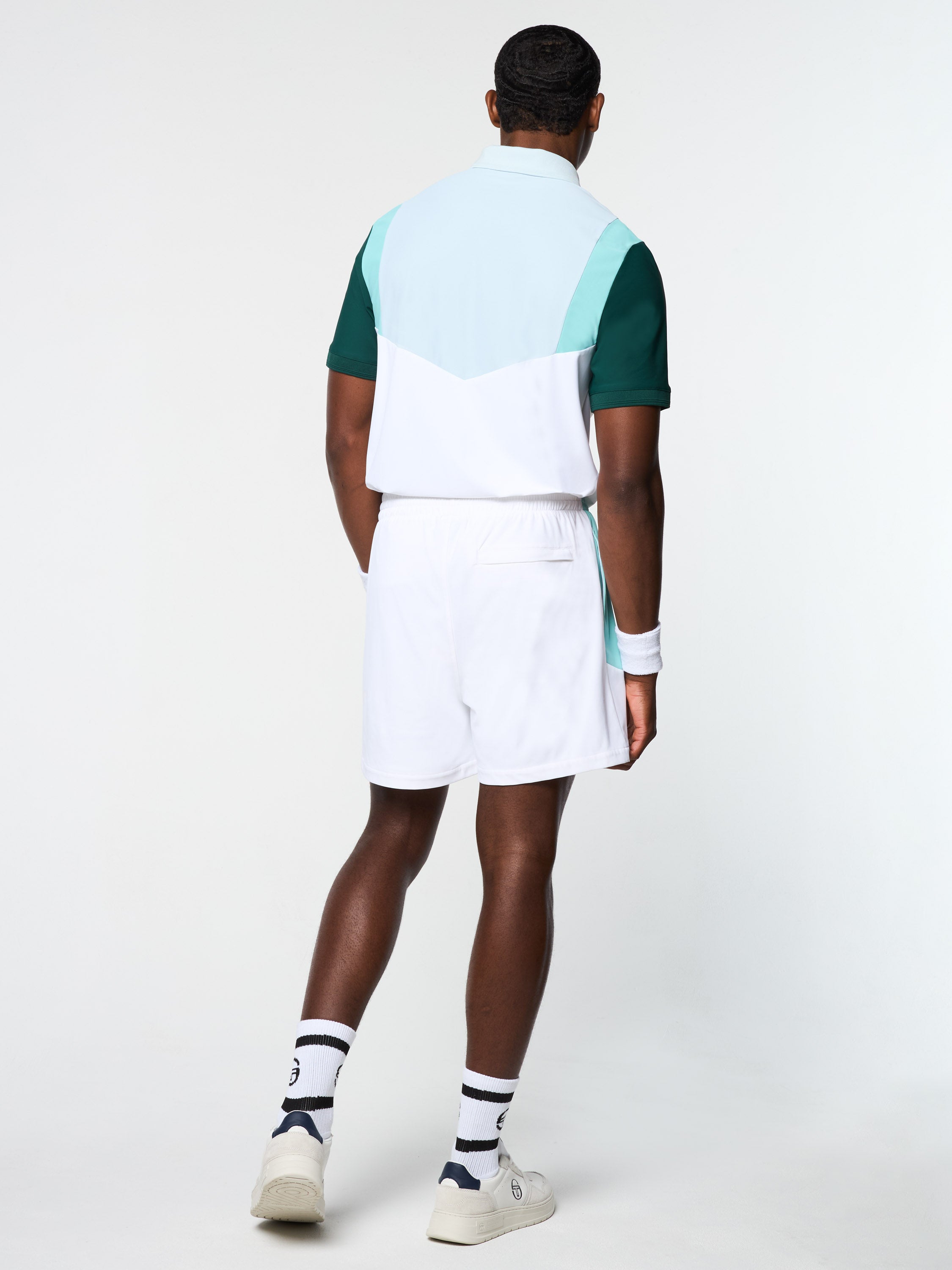 The Angolo Short is made of moisture-wicking performance piqué with a subtle stretch to keep you cool and moving freely through any workout. Perfect for on and off-court wear, these color-blocked shorts are complete with chevron seam detailing, spacious pockets for your essentials, and a Sergio Tacchini logo at the left hem.Pair with the Angolo Polo for the full fit. (Sold separately)