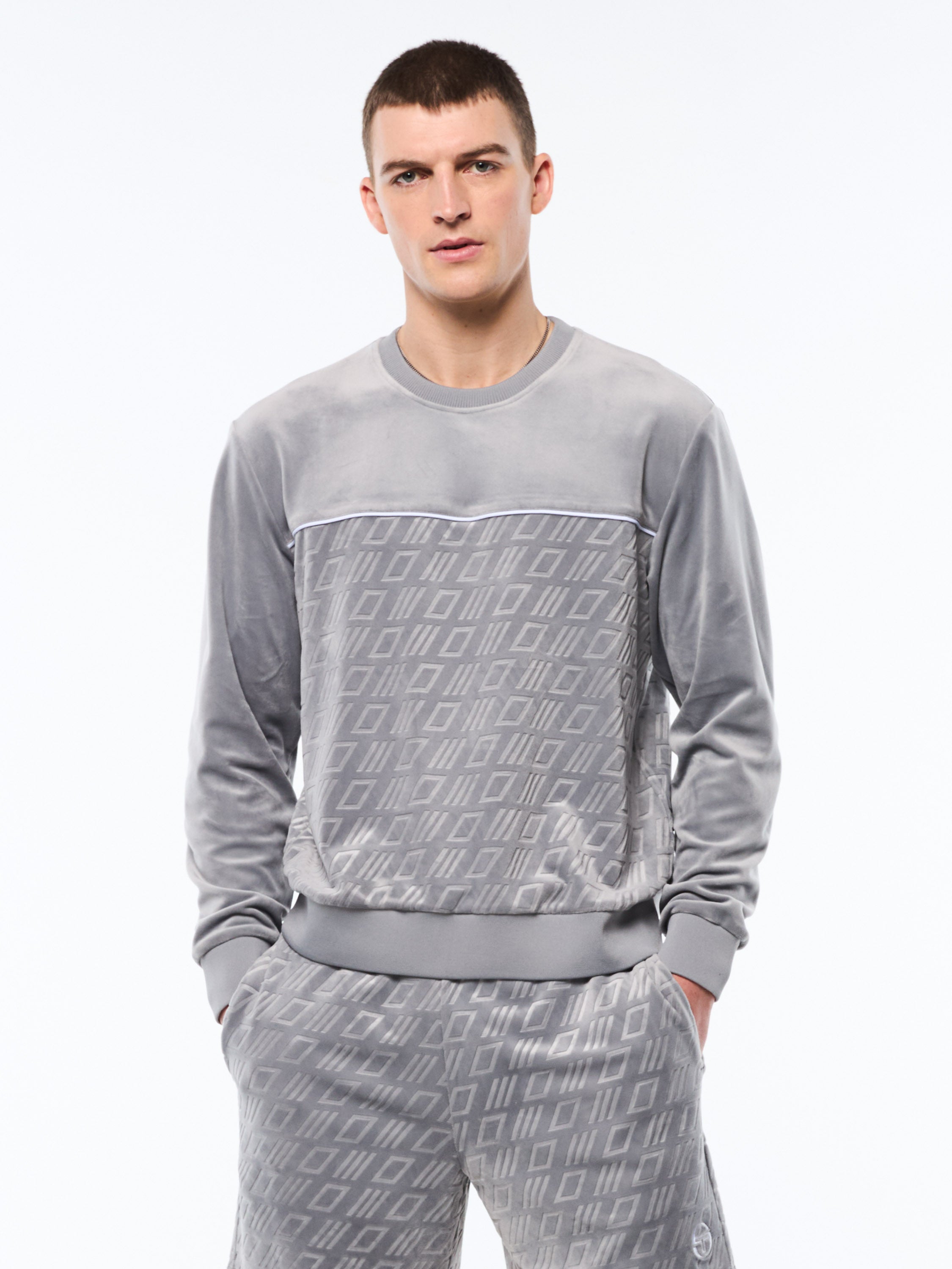 Bandiera Debossed Velour Crewneck-Sleet