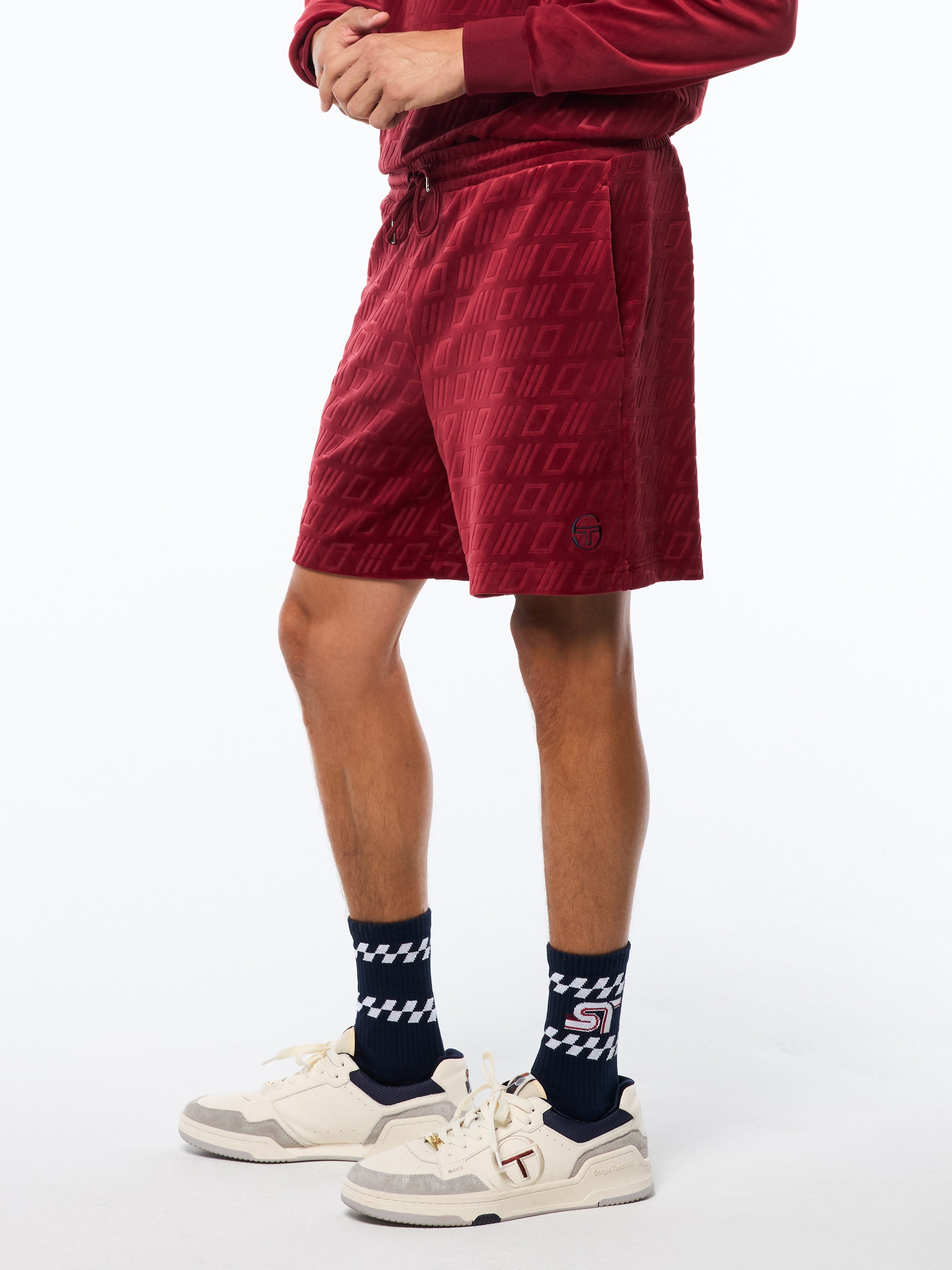 Luxe texture, standout detail. The Bandiera Debossed Velour Short is crafted from ultra-soft stretch velour with a debossed motif all over for a subtle hit of dimension. Finished with an 'ST' embroidered monogram logo at left hem, this elevated short fuses retro athletic heritage with modern polish.