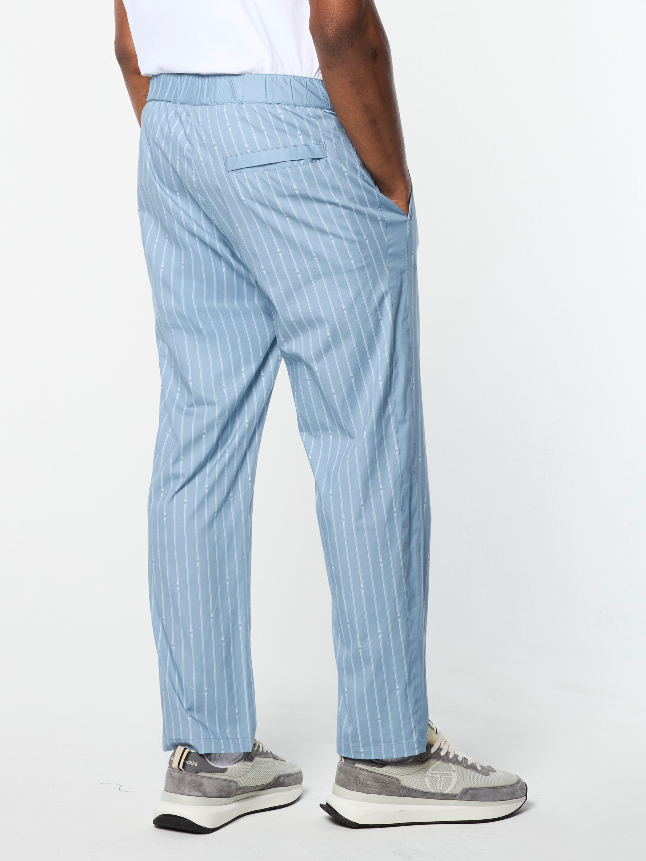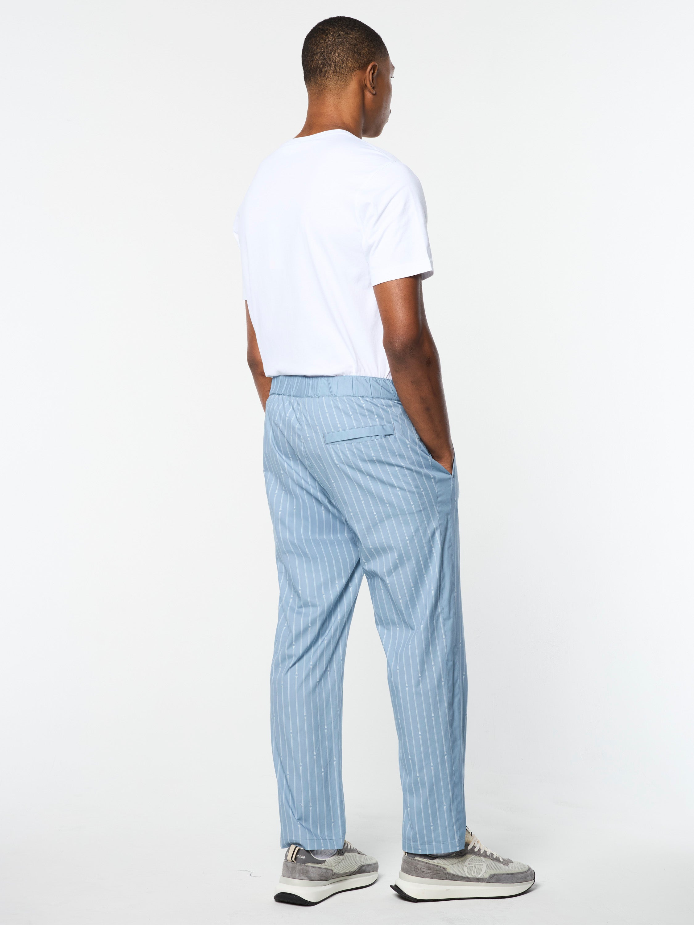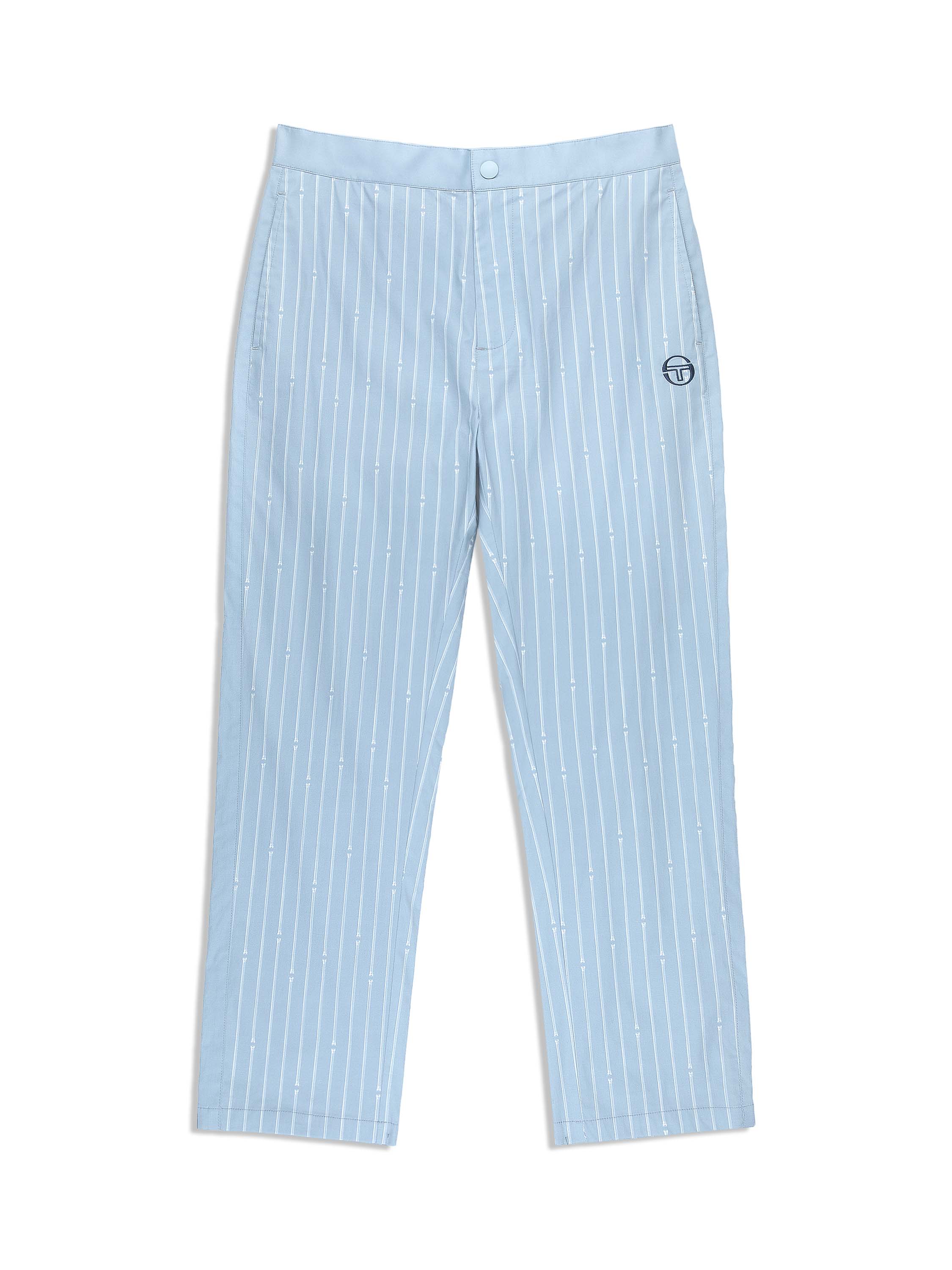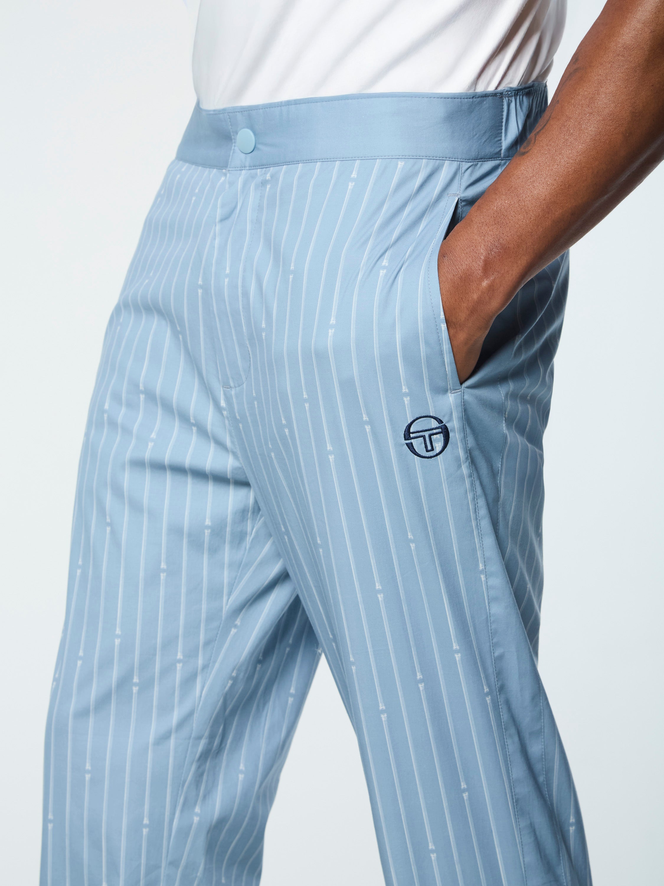 Inspired by Roman columns—a nod to Sergio Tacchini's Italian heritage.The Colonna Pant is crafted from luxurious stretch cotton poplin featuring an all-over Roman column pinstripe print for a casual look with a touch of elegance. Topped with a snap-button waist with elastic at the rear for a comfortable fit, these elevated pants are lightweight and breathable with a subtle stretch—perfect for travel and warmer weather.Pair with the Colonna Jacket for the full fit. (Sold separately)