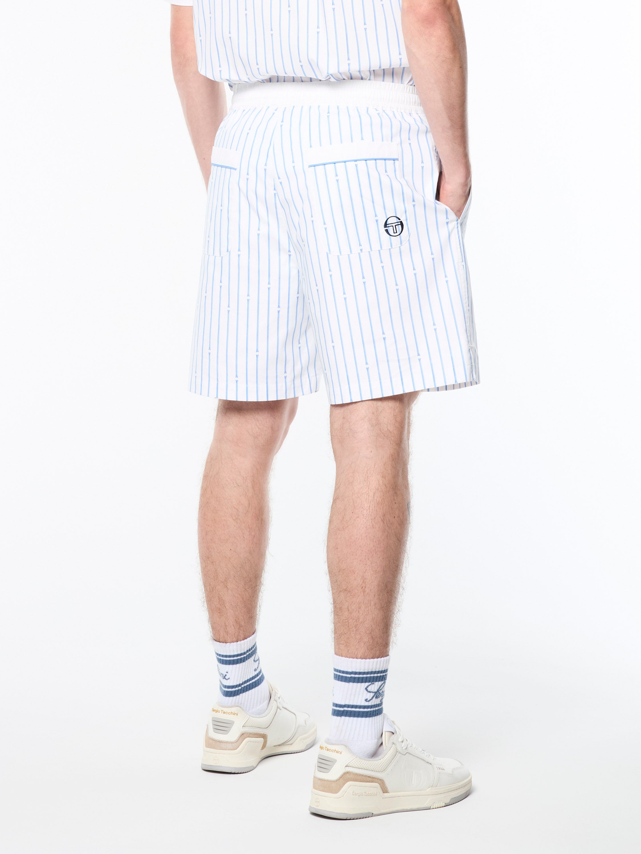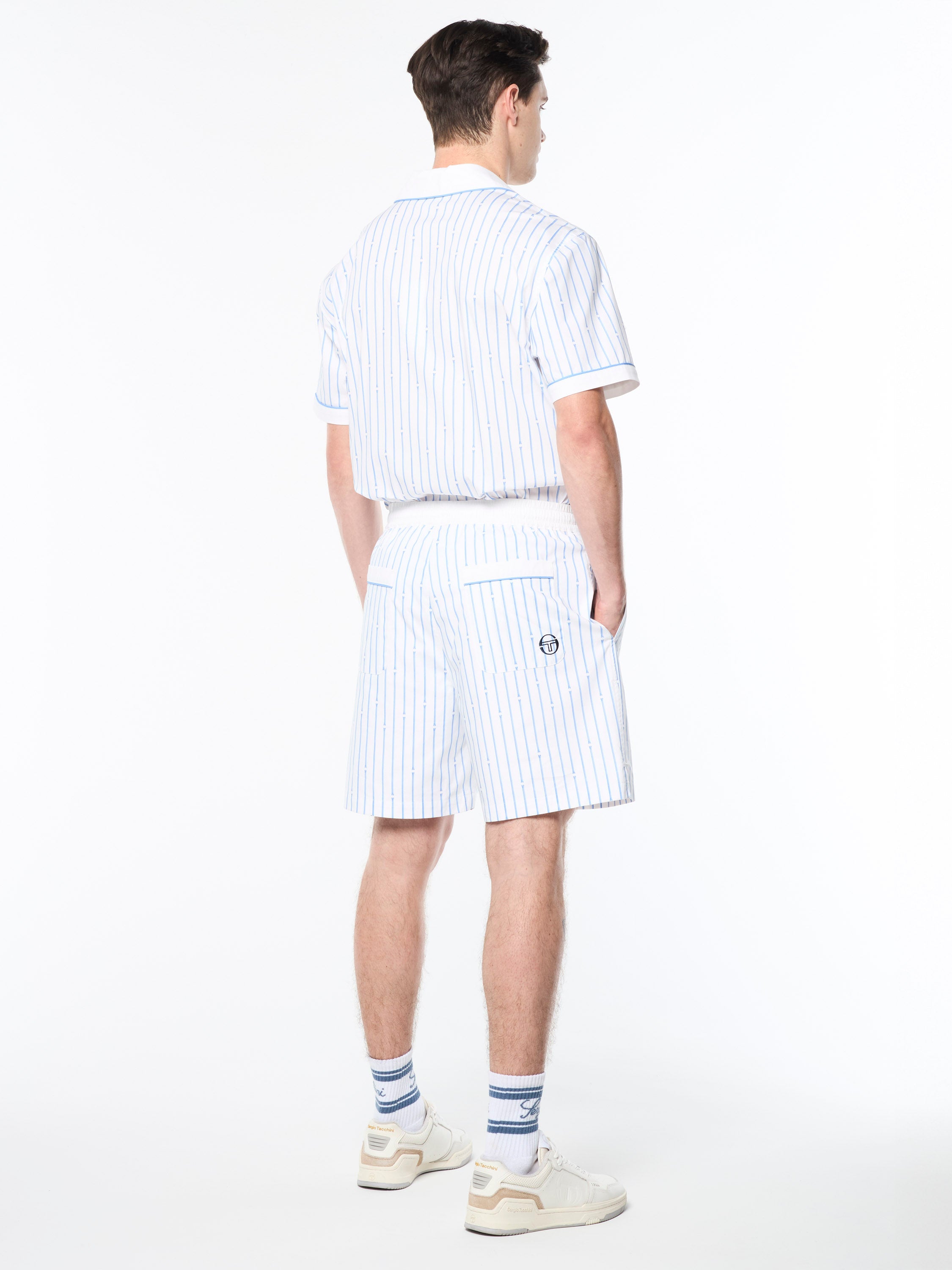 Inspired by Roman columns—a nod to Sergio Tacchini's Italian heritage.The Colonna Cabana Short is crafted from luxurious stretch cotton poplin featuring an all-over Roman column pinstripe print for a casual look with a touch of elegance. Topped with a comfortable elastic waistband, these resort-ready shorts are lightweight and breathable with a subtle stretch—perfect for travel and warmer weather.Pair with the Colonna Cabana Shirt for the full fit. (Sold separately)