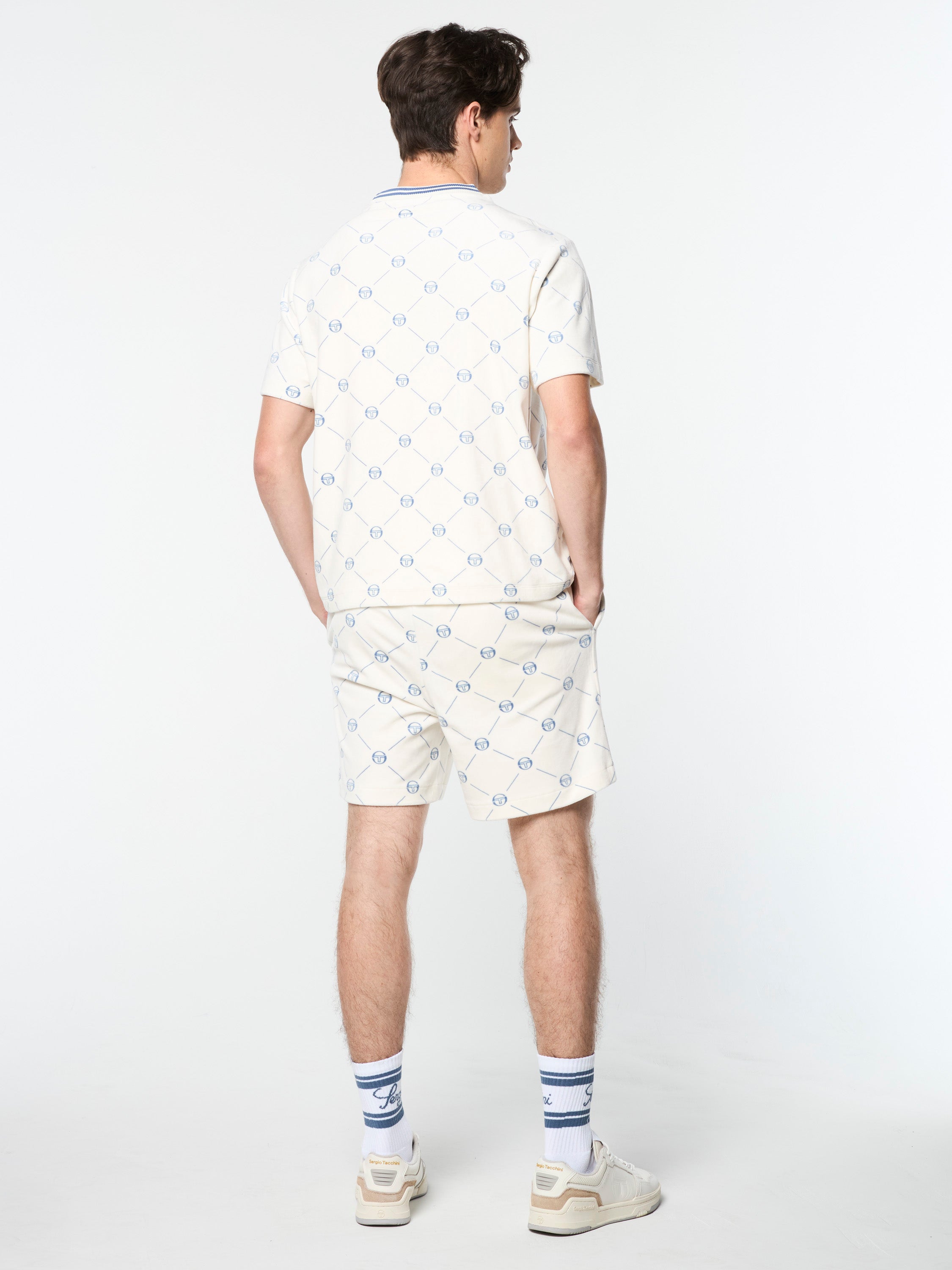 Crafted from luxurious printed velour, our Cosimo T-Shirt features an all-over 'ST' monogram motif and double stripe tipping accents for an elevated look. Exuding sophistication and comfort, this premium tee transitions seamlessly from everyday outings to nightlife vibes.Pair with the Cosimo Velour Short for the full fit. (Sold separately)
