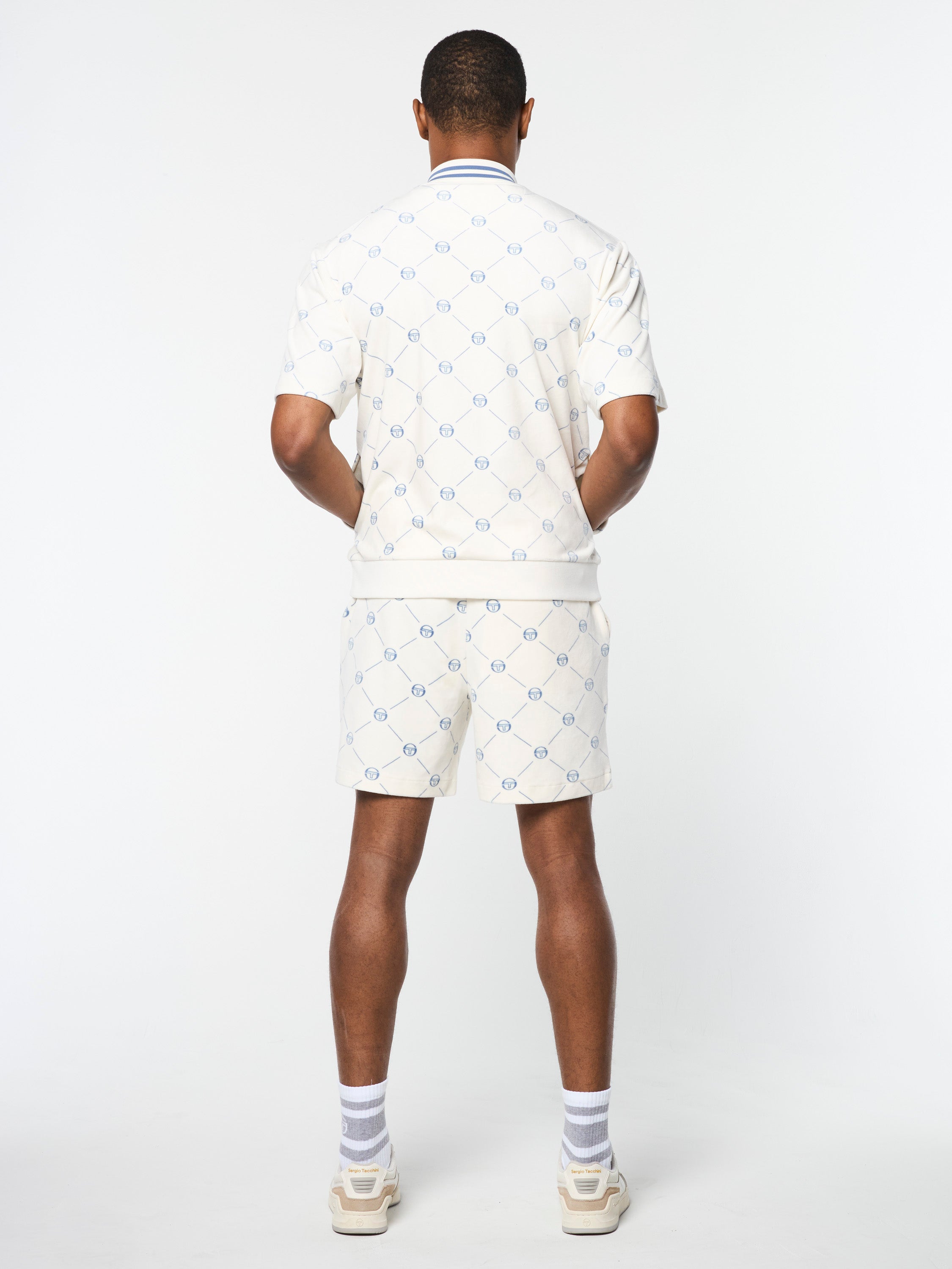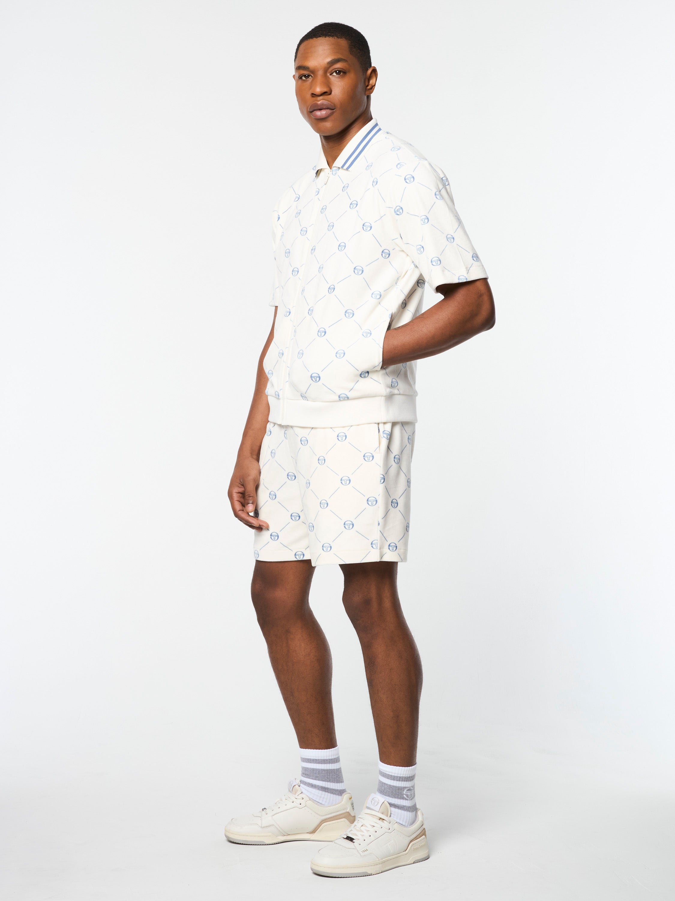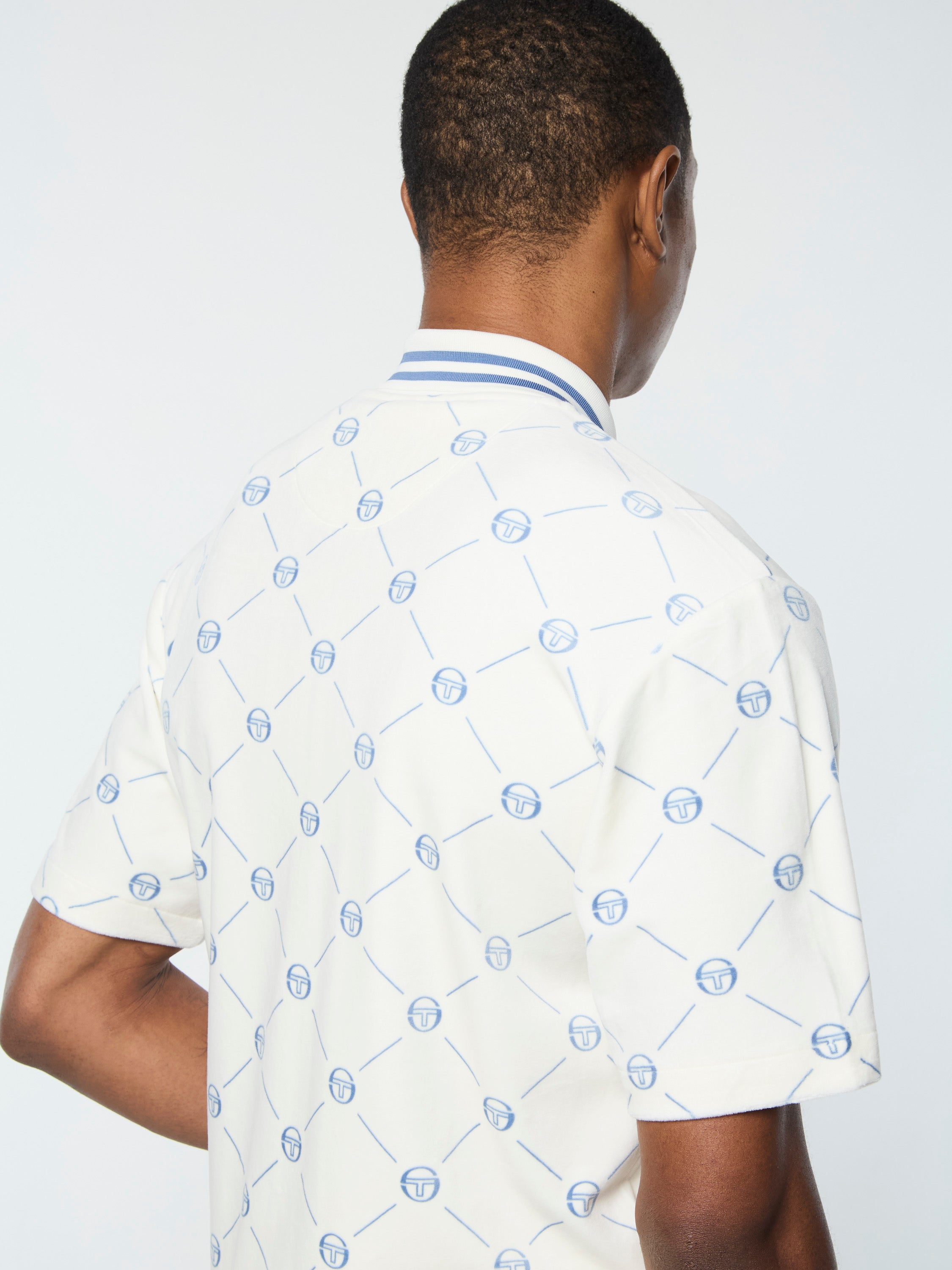Crafted from luxurious printed velour, our Cosimo Zip-Up Polo features an all-over 'ST' monogram motif and double stripe tipping accents for an elevated look. Exuding sophistication and comfort, this premium full-zip polo transitions seamlessly from everyday outings to nightlife vibes.Pair with the Cosimo Velour Short for the full fit. (Sold separately)
