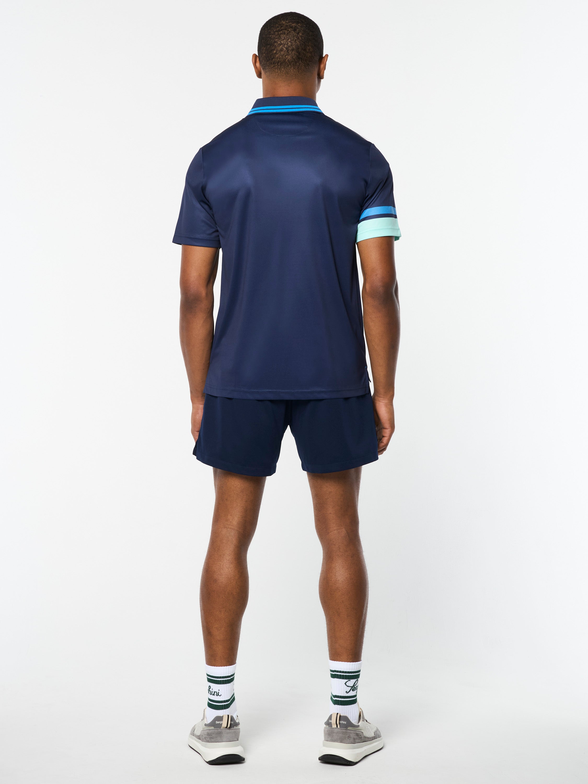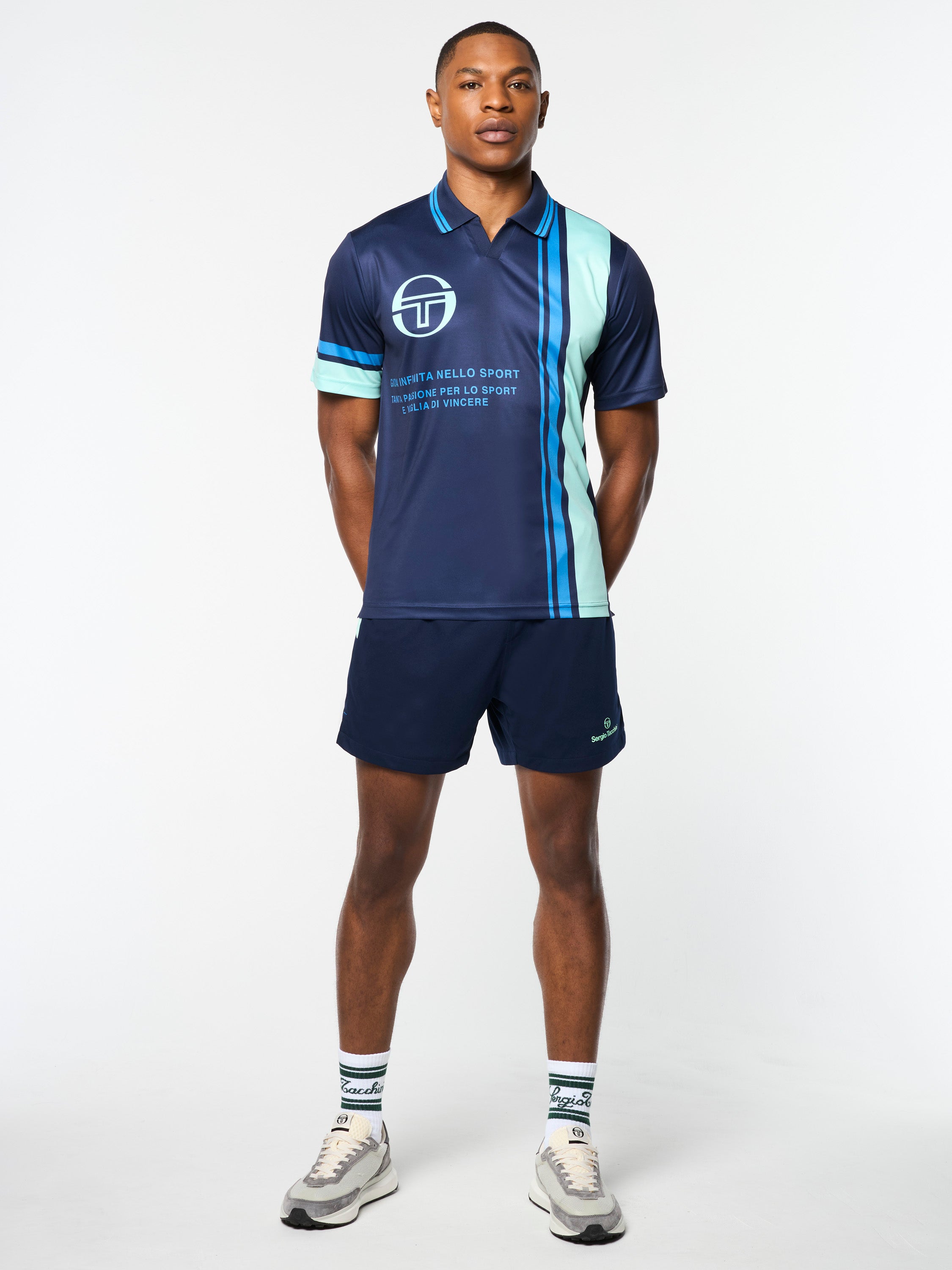 A game changer. Combining elegance and functionality, the Dante Polo is crafted from luxurious peached jersey fabric that's smooth and soft with a subtle stretch to keep you comfortable on the court. Featuring pop color striping and bold branding for a throwback vibe, this performance polo is finished with a notched Johnny collar for extra style points.Pair with the Luca Piqué Short for the full fit. (Sold separately)