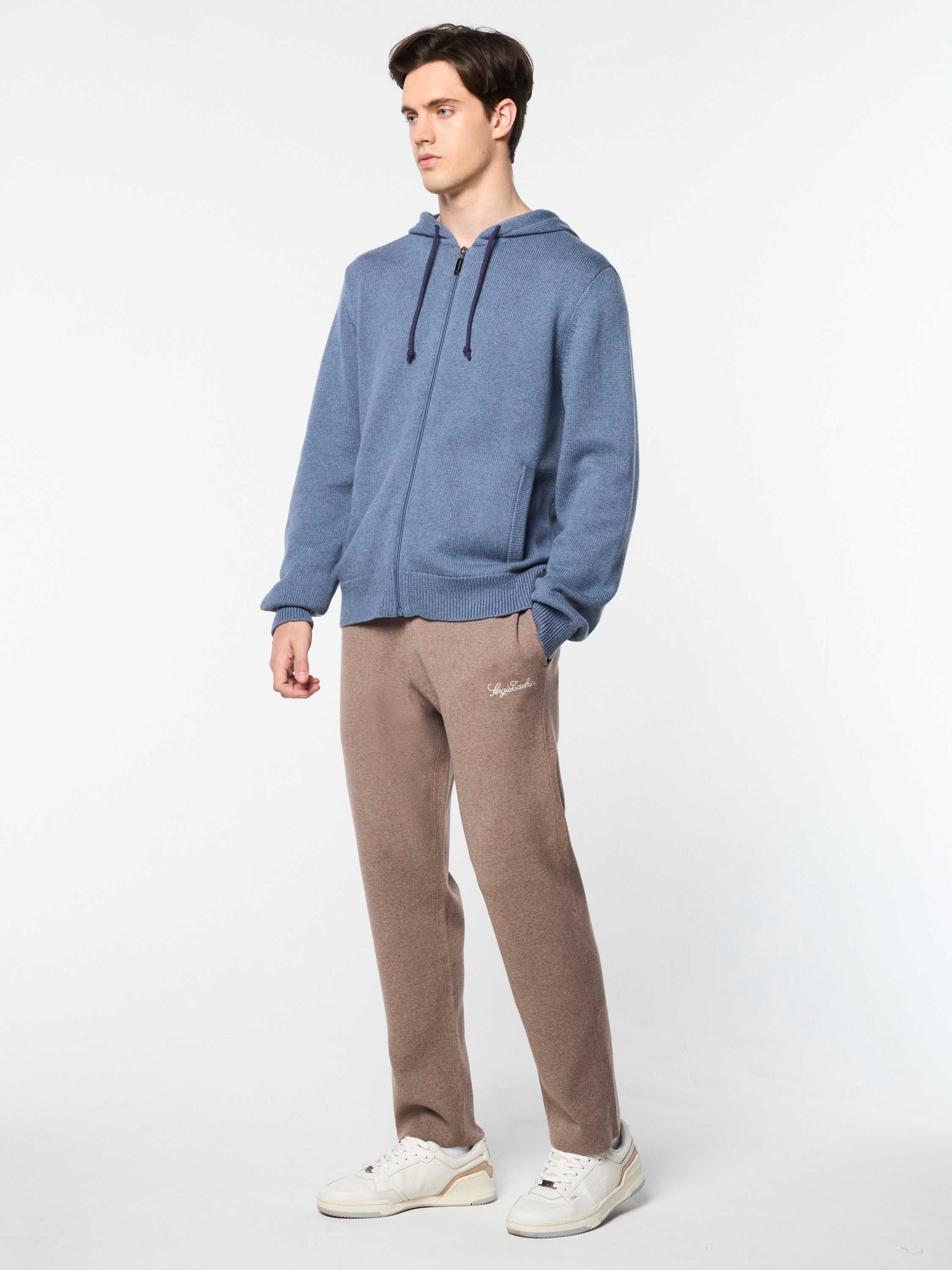 Stay cozy in style with our Fausto Knit Hoodie, crafted from premium nouvelle eco yarn in a cashmere and organic cotton blend for ultimate comfort. Cut with a full-zip front for easy layering, the Fausto features a spacious hood, handwarmer pockets, and our iconic 'ST' monogram logo at the back.