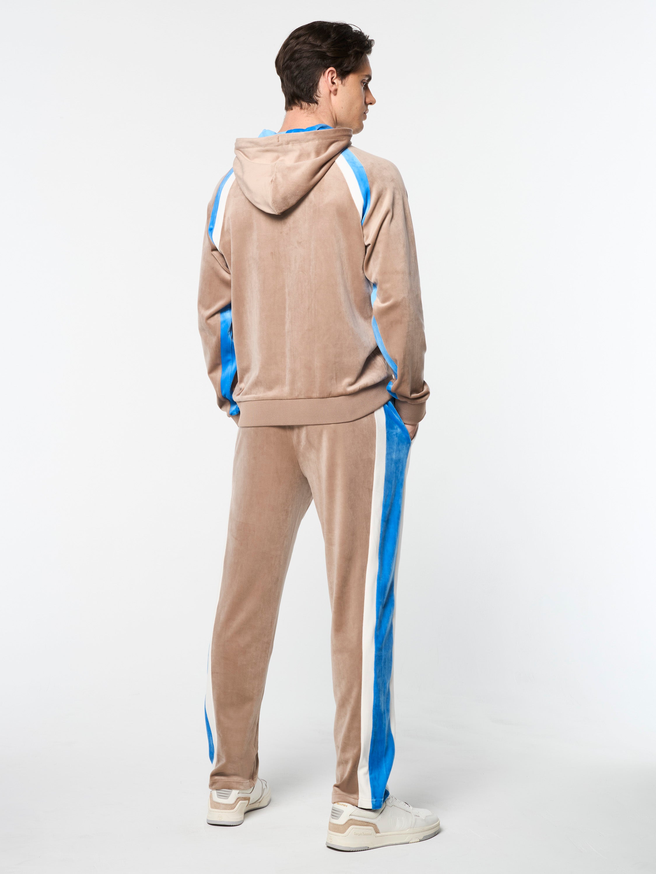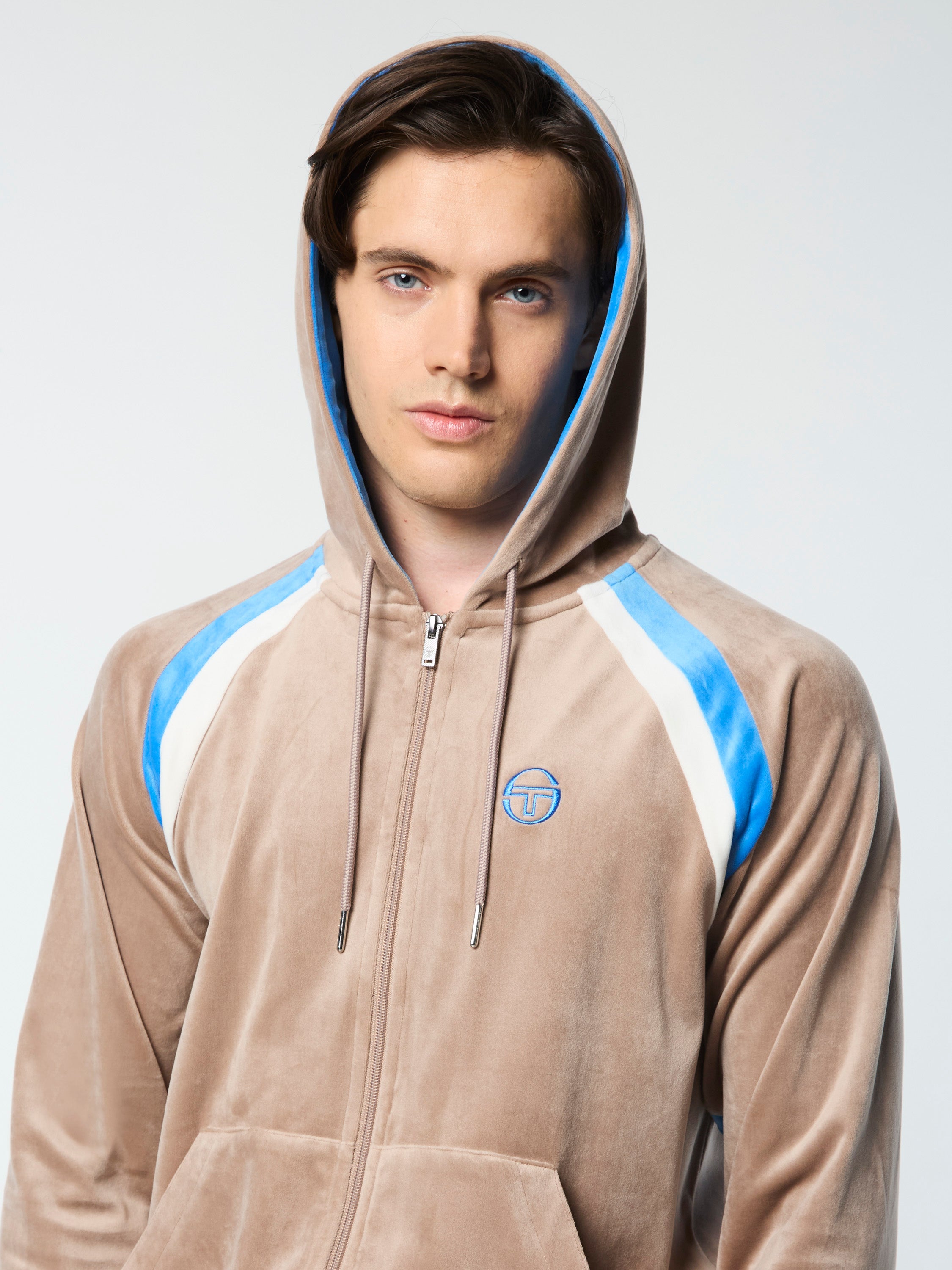 Crafted from luxurious velour that feels super soft against your skin, our Lazaro Hoodie features striking color-block accents at the raglan sleeves for a retro vibe. Combining effortless comfort and elevated style, this premium zip-up is finished with contrast lining at the hood and an embroidered 'ST' monogram at the chest.Pair with the Lazaro Velour Track Pant for the full fit. (Sold separately)