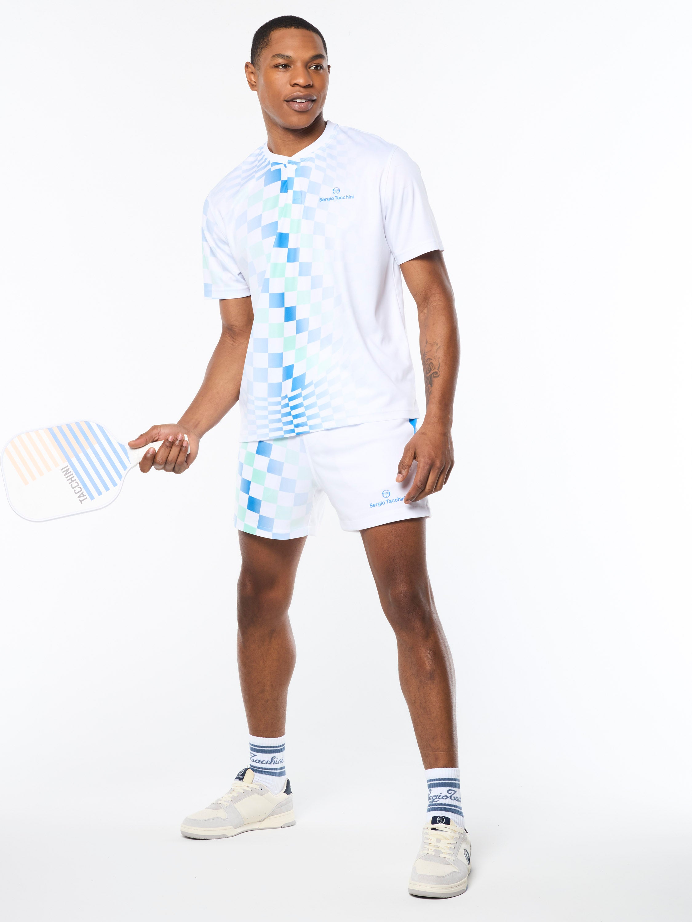 An on-court essential, the Luca T-Shirt is crafted from breathable piqué fabric with a snap-button vent placket to keep you cool and confident when practice heats up. Featuring an all-over checkerboard gradient for a retro vibe, this performance tee ensures you look and feel your best whether you're serving an ace or rallying with friends.Pair with the Luca Piqué Printed Short for the full fit. (Sold separately)