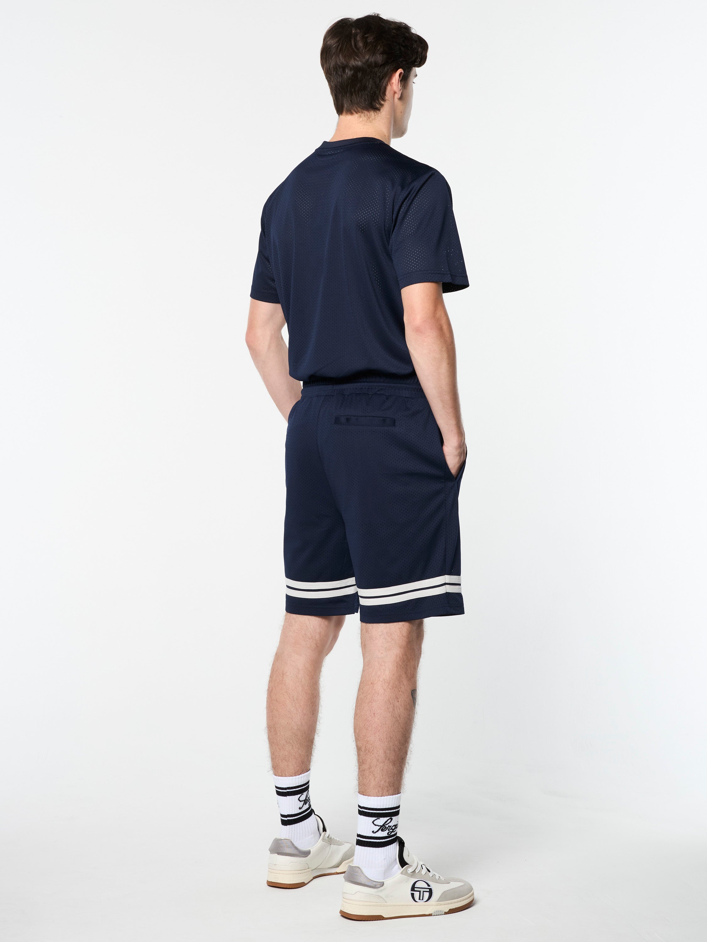 A performance spin on classic sportswear. Crafted from breathable mesh fabric to keep you cool when practice heats up, the Ludovic Mesh Short is equipped with a comfortable elastic waistband and our distinctive double stripe taping at the hem.Pair with the Giacomo Mesh T-Shirt for the full fit. (Sold separately)