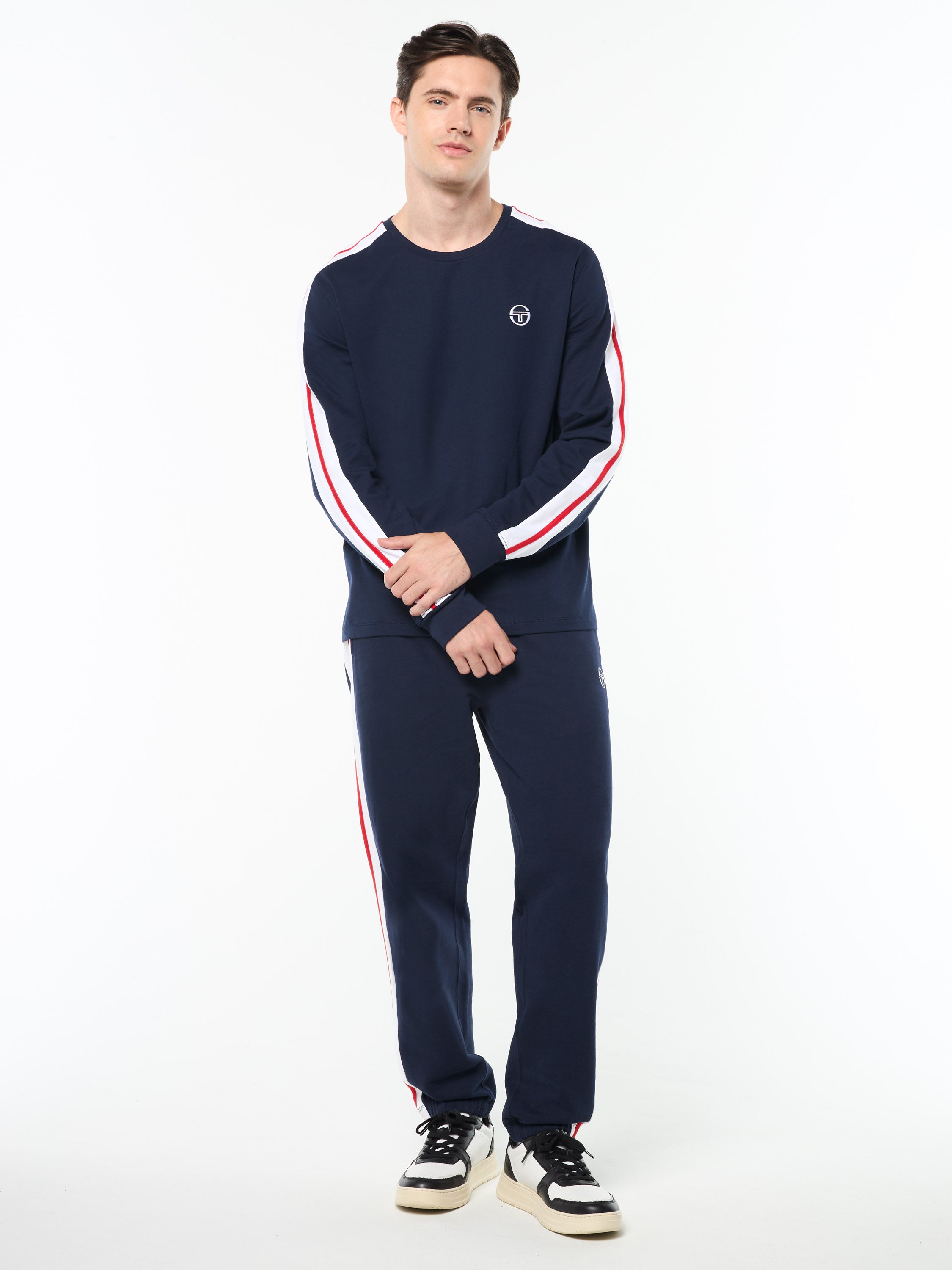 - Embroidered 'ST' monogram logo at left chest