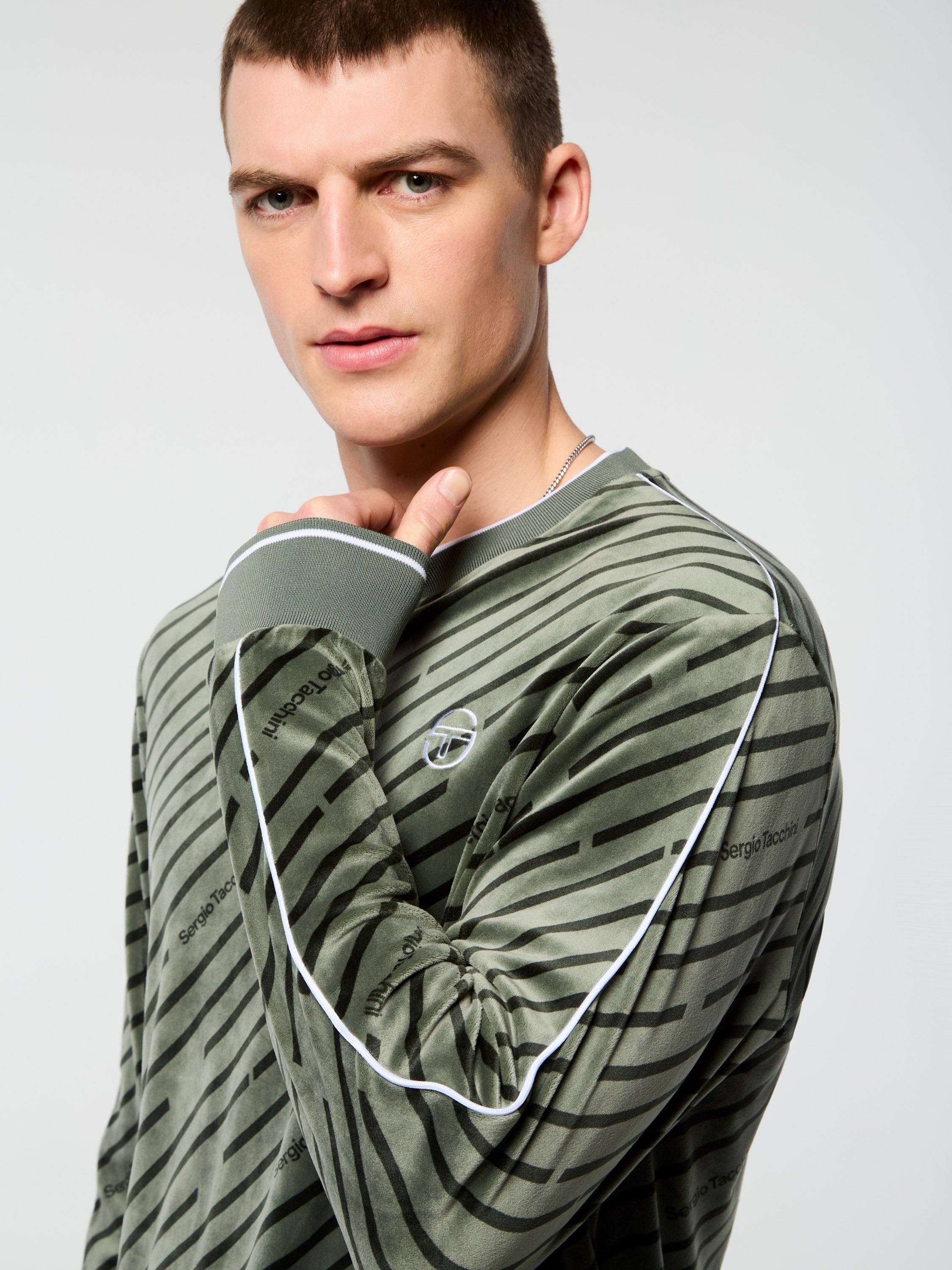 Obliquo Velour Crewneck-Agave Green