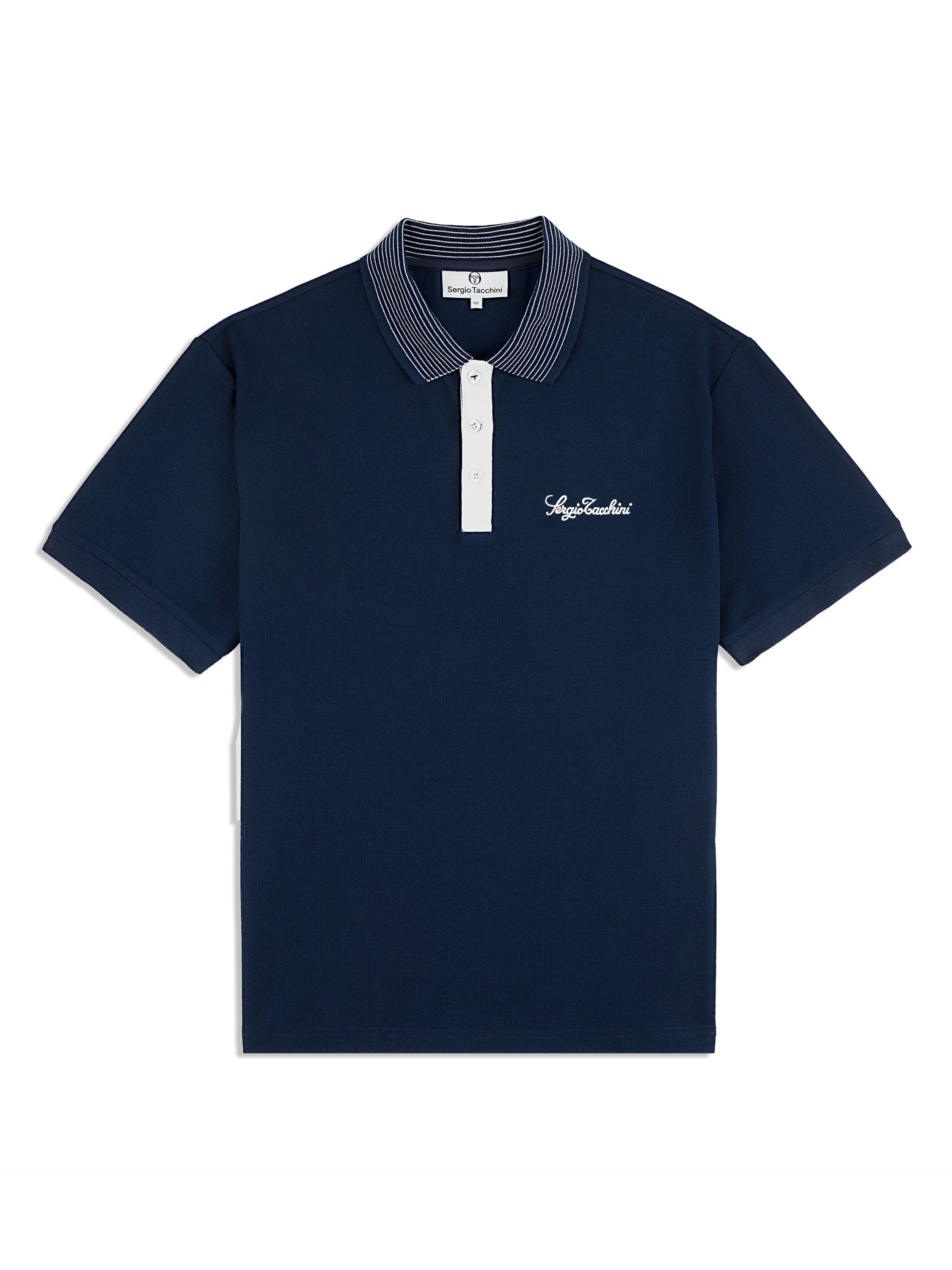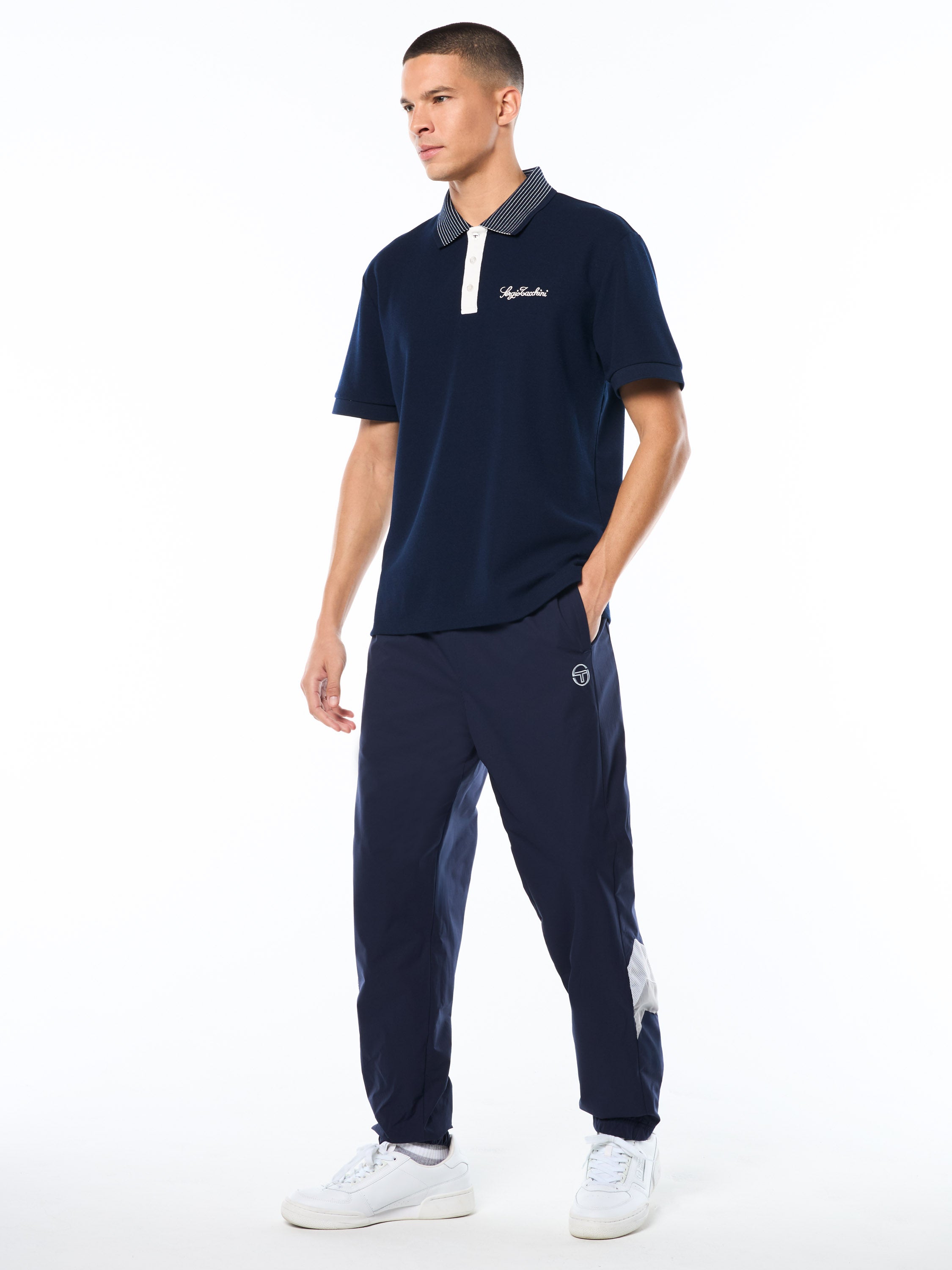 - Embroidered Sergio Tacchini script logo at left chest