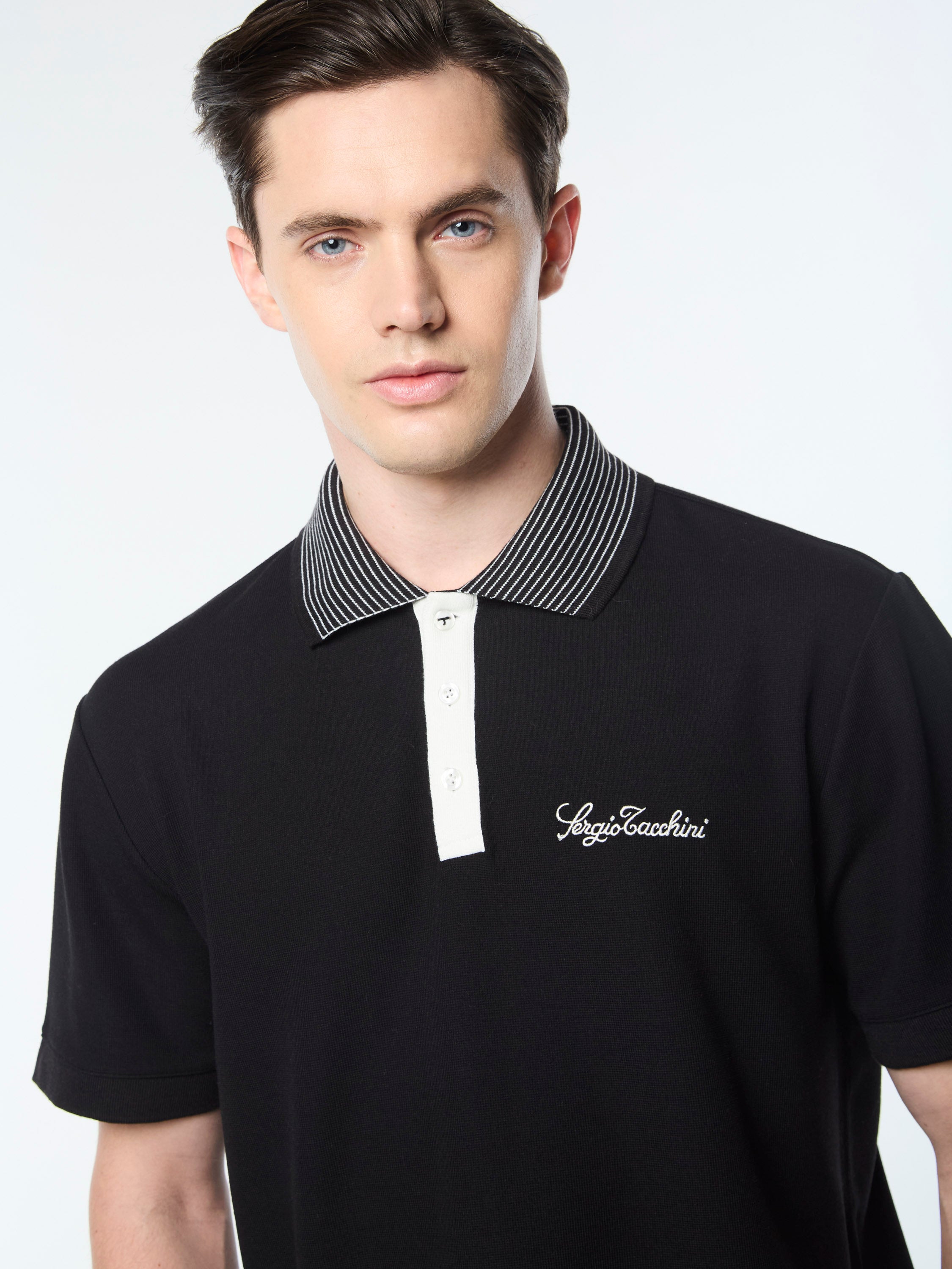 - Embroidered Sergio Tacchini script logo at left chest