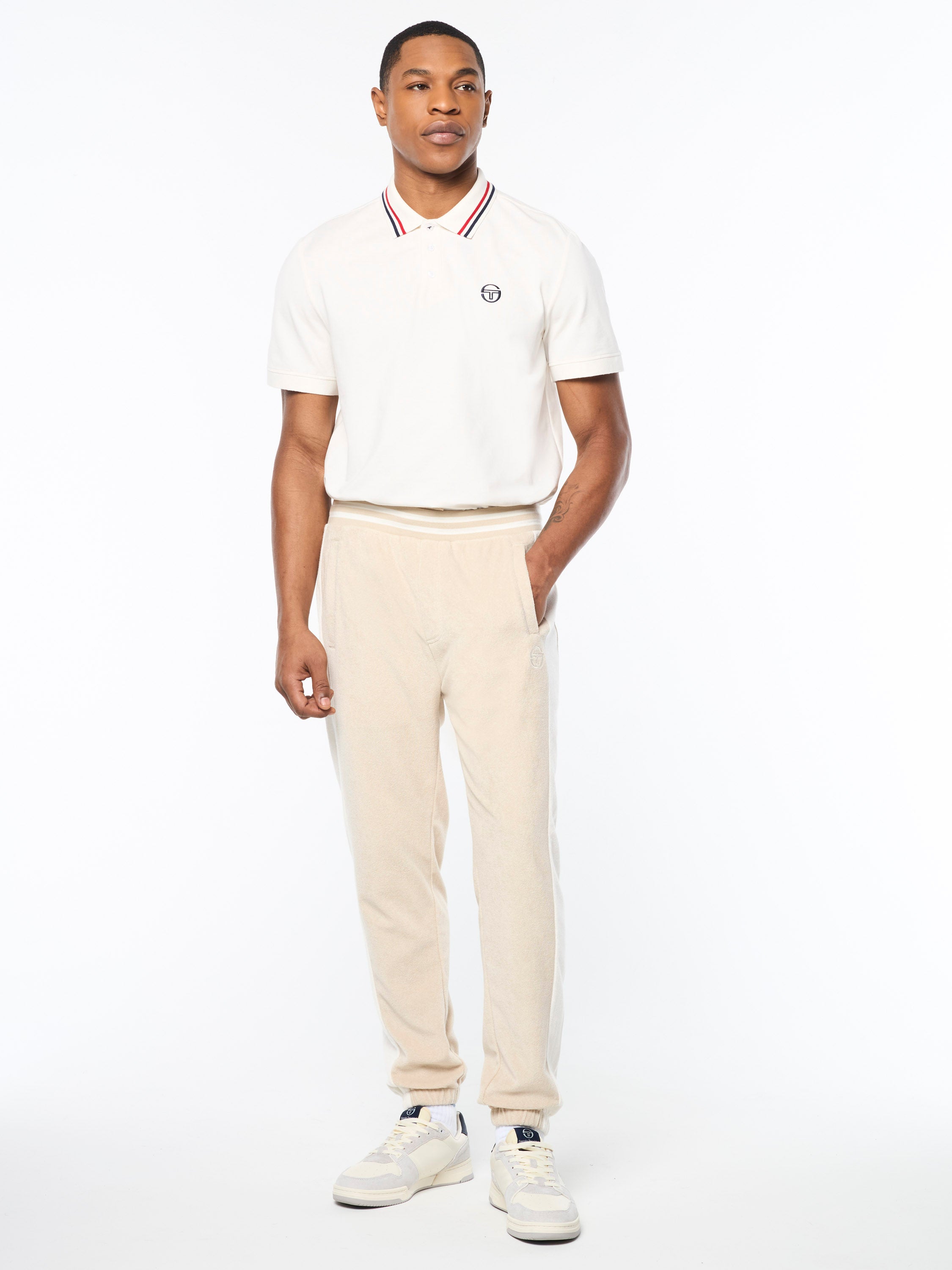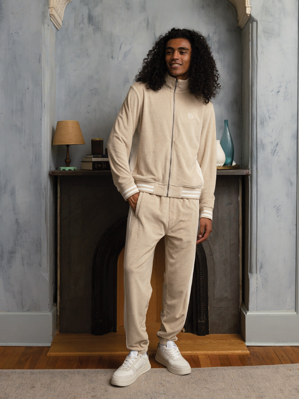 Upgrade your warm-weather wardrobe with the Vitus Track Pant, crafted from luxurious terry towel fabric for contemporary comfort with a touch of breezy nonchalance. Featuring a soft rib-knit waistband and adjustable ankle zips, these premium track pants are finished with color-block paneling and stripe details as a nod to retro leisurewear.Pair with the Vitus Track Jacket for the full fit. (Sold separately)