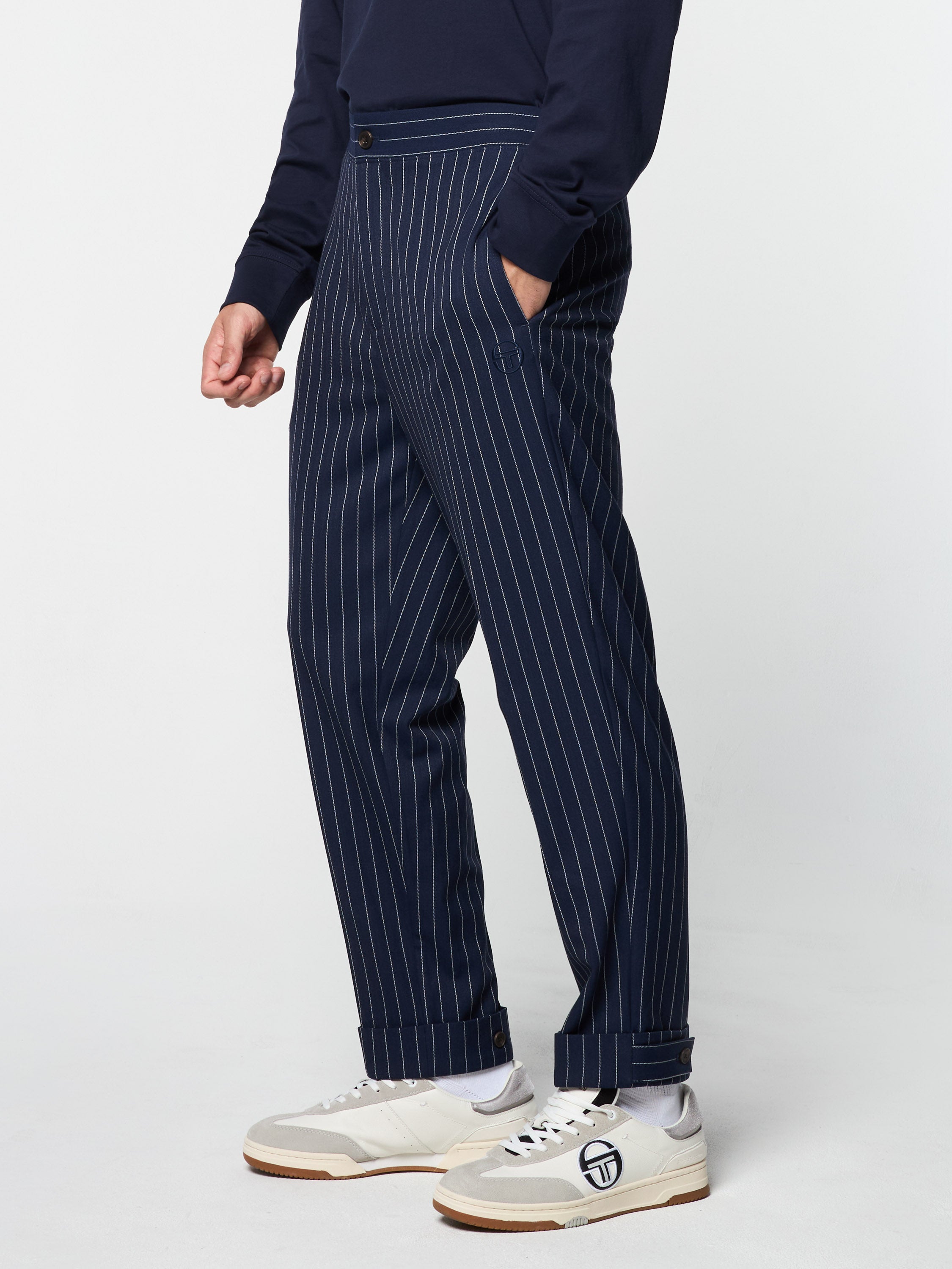 Gessato Suiting Track Pant- Maritime Blue