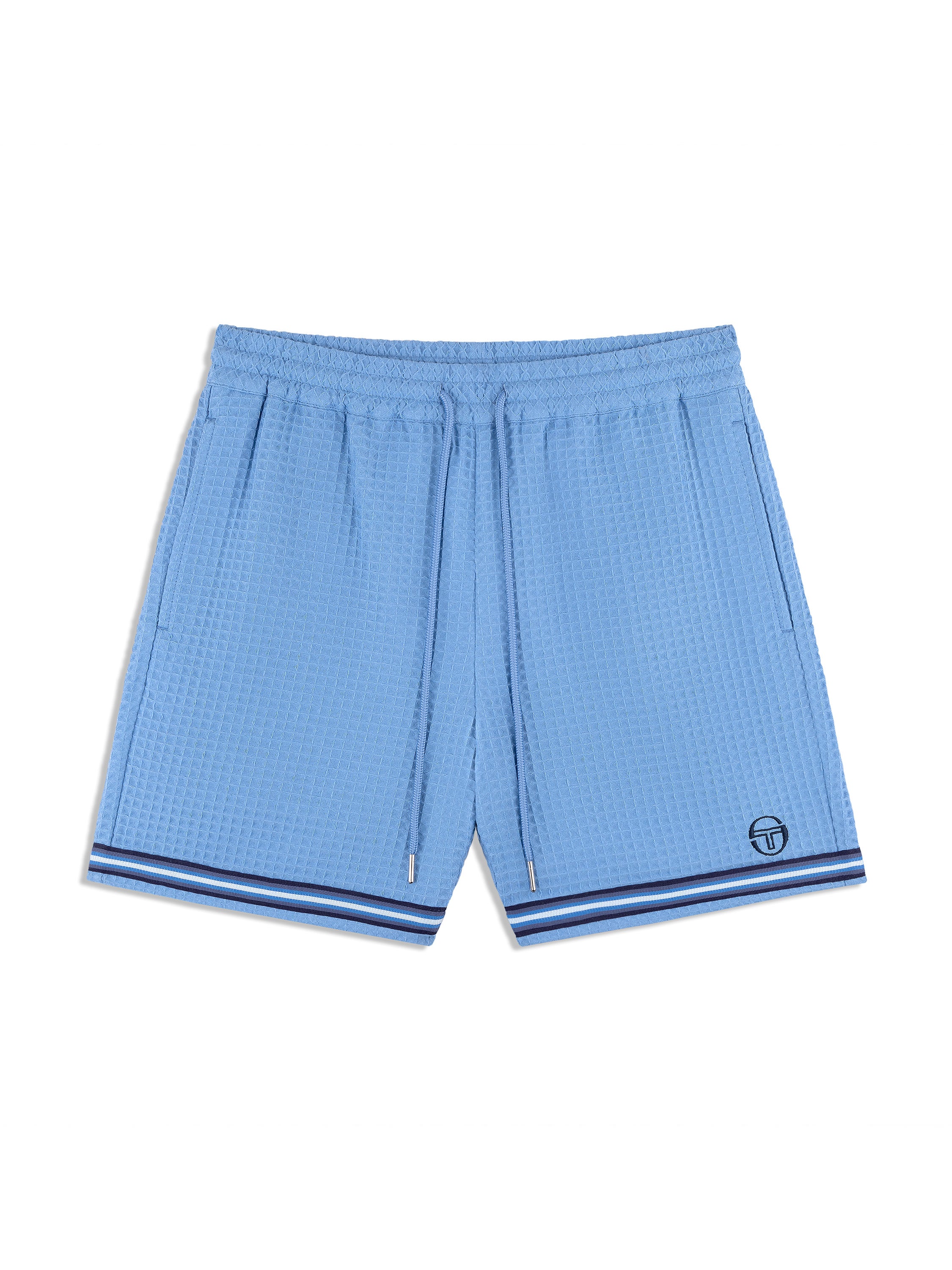 Effortless polish with a textured twist. The Chiaro Cabana Short is crafted from a premium waffle knit for soft texture and laid-back structure. Topped with an elasticated drawstring waistband for a secure fit, these shorts are finished with contrast stripe taping at the hem and rear pocket for a signature sport-inspired touch.