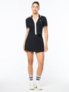 Elevate your game in our Idalia Cropped Polo. Crafted from performance double knit stretch fabric that's buttery-soft, moisture-wicking, and breathable, this athletic polo features a button-up front, contrast Y-placket, and tipping stripes at the rib-knit collar. A cropped cut hits right above the waist—perfect for styling over your favorite tennis skirt and high-rise leggings.Pair with the Idalia Skort for the full fit. (Sold separately)