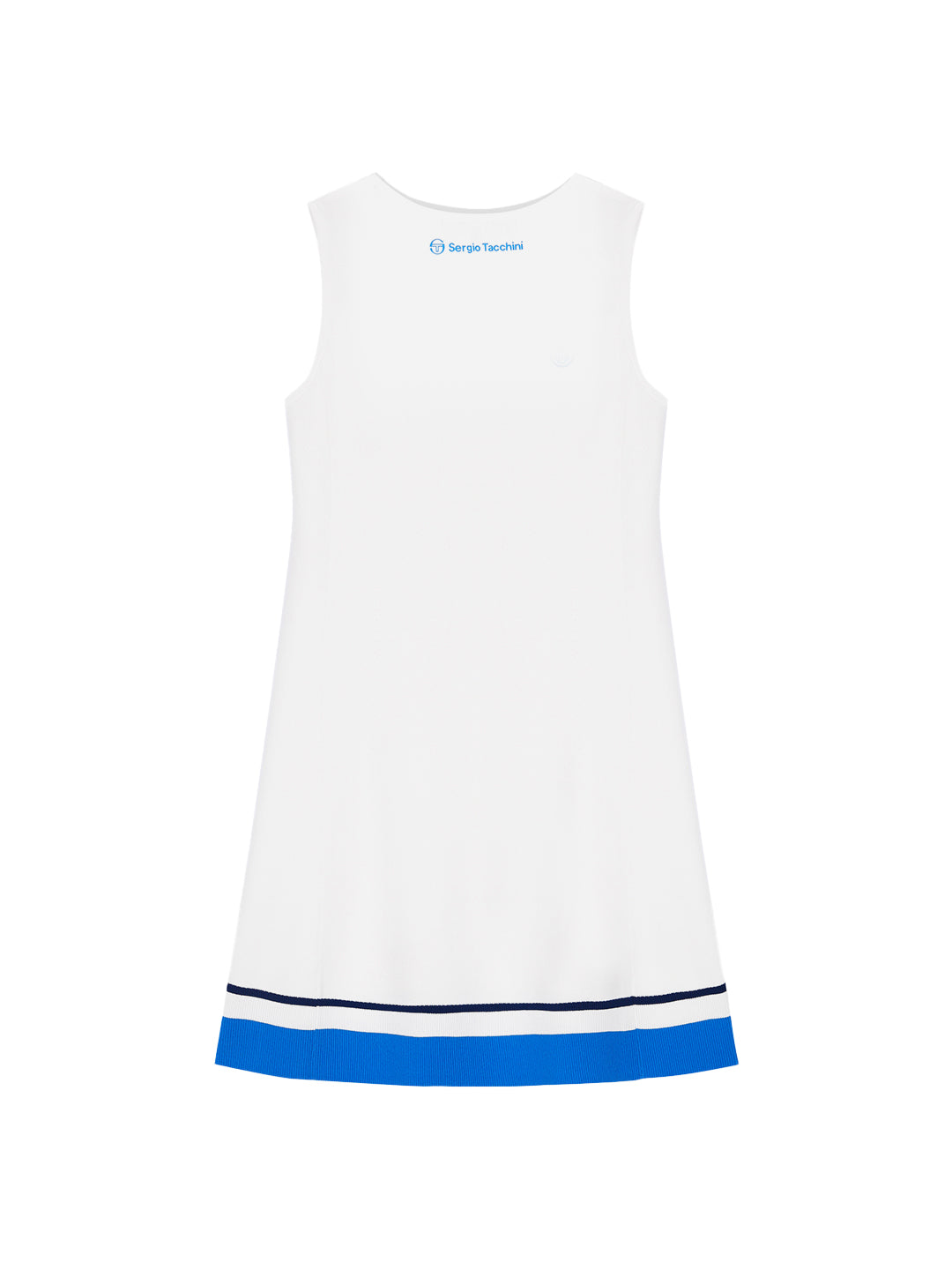 Celebrate timeless tennis style with our premium Resort Flare Dress, crafted from super-comfy ribbed fabric with a subtle stretch to keep you moving freely from the court to your everyday. Topped with a casual round collar and embroidered 'ST' monogram at the chest, this sleeveless dress is complete with pop-color striping at the rib-knit hem.