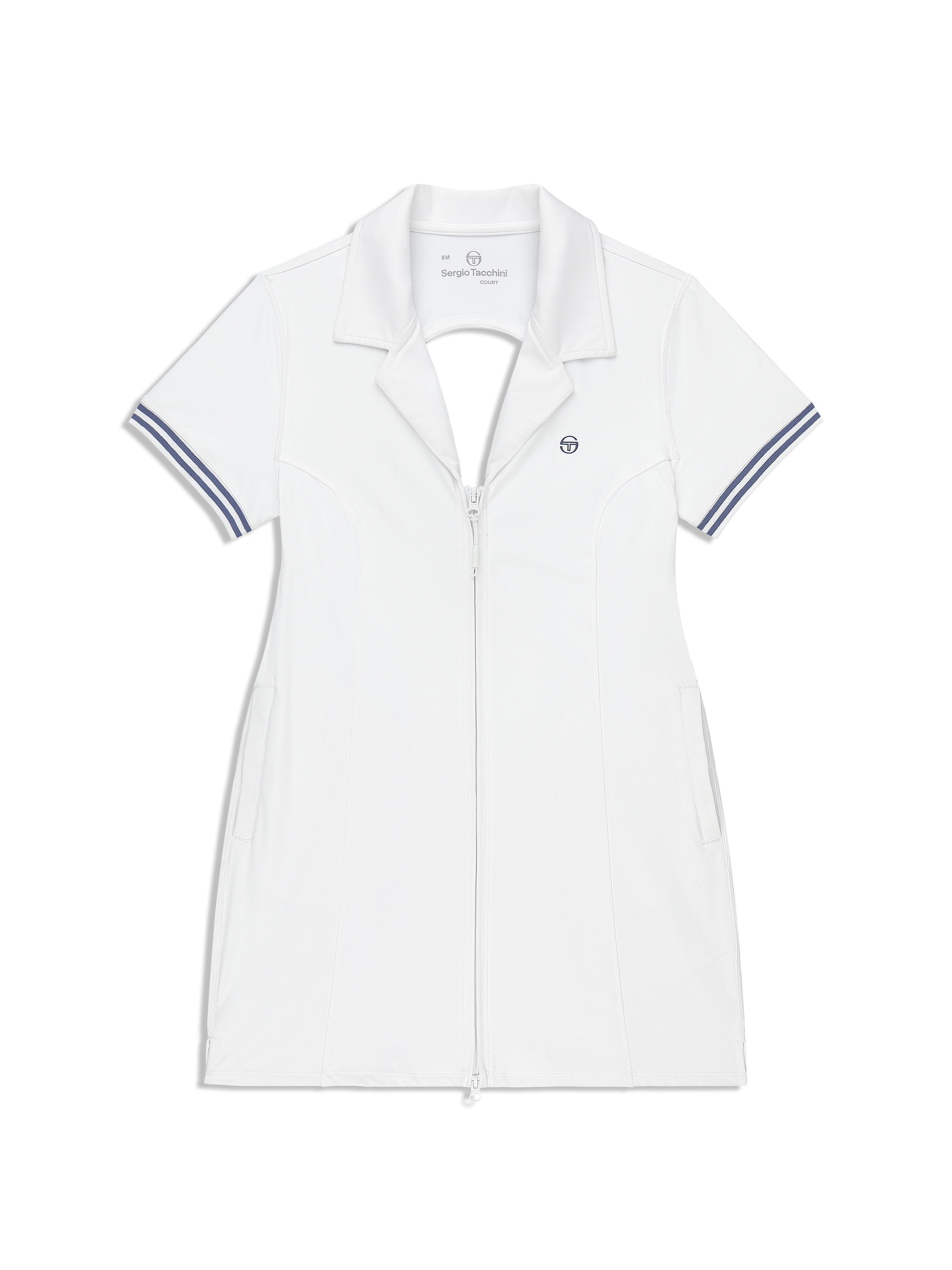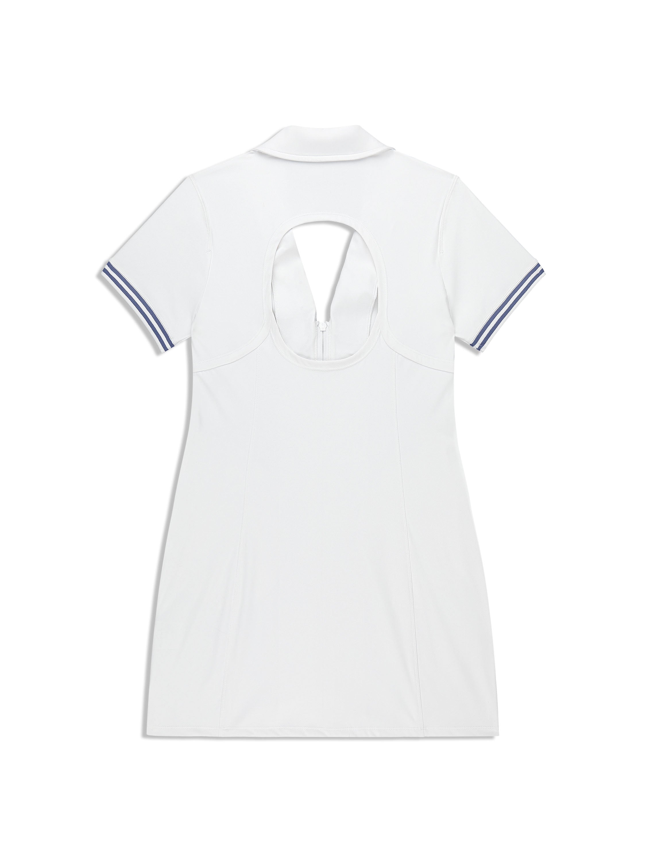 Elevate your fashion game with the Silvia Dress, crafted from buttery-soft performance stretch fabric that's stylish, practical, and made to move with you through any practice. Topped with a notched lapel collar for a touch of class, this elevated tennis dress features a circle cutout at the back and princess seam detailing down the front making it perfect for evenings out.