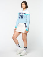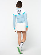 Designed with exquisite attention to detail, the Ruota Cycling Jersey is crafted from premium birds-eye knit fabric that's lightweight, breathable, and exceptionally soft to the touch. Featuring custom Intarsia knit artwork and striping details in fuzzy yarn for a tactile finish, this color-blocked zip-up jersey is finished with classic cycling pockets at the back.