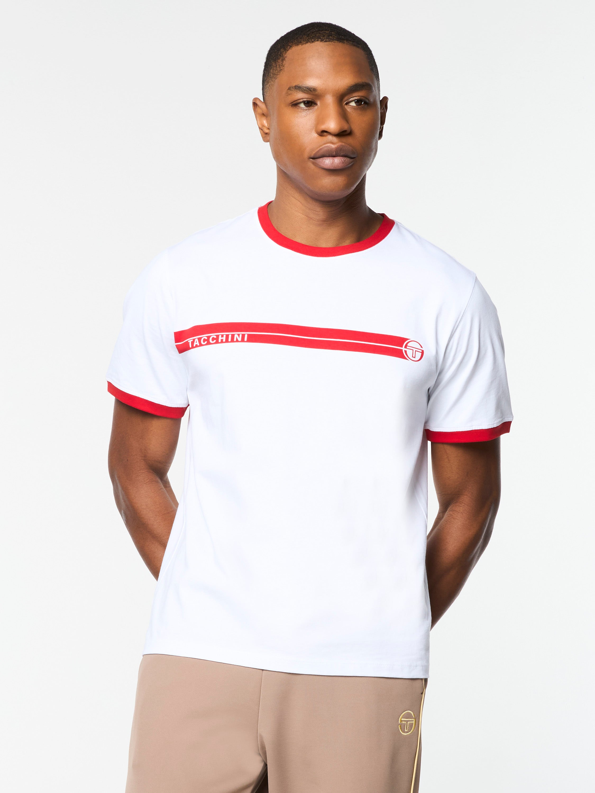 Get your game on in style with our court-ready Leo T-Shirt, crafted from pure cotton for maximum comfort. Featuring custom Sergio Tacchini art at the chest, this premium ringer tee is finished with a contrast collar and cuffs for a retro vibe.