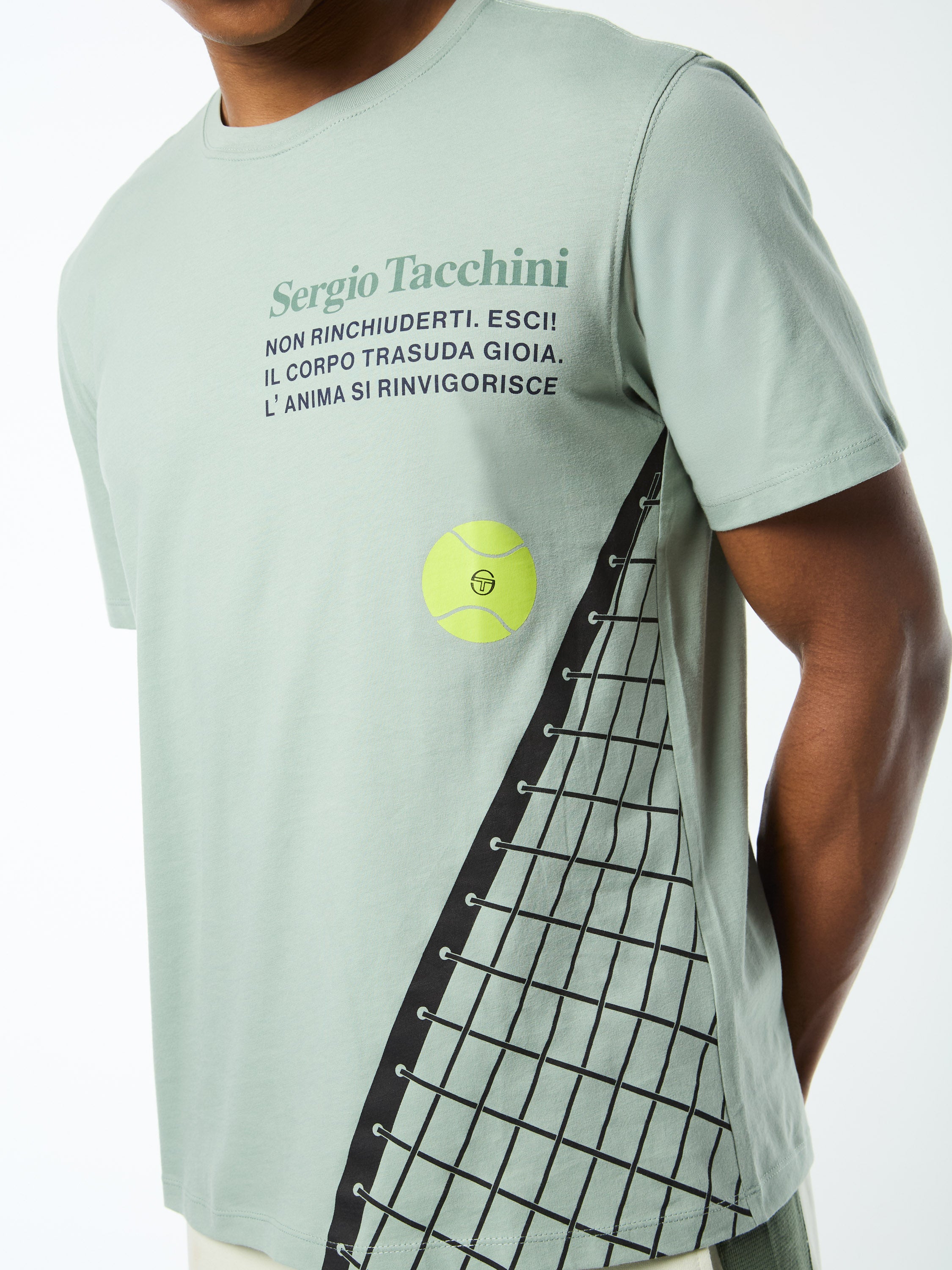 The Netto T-Shirt is crafted from ultra-soft cotton for maximum comfort with an elevated vibe. Featuring custom Sergio Tacchini tennis artwork and Italian sports slogans, this premium tee is an easy-to-wear classic.