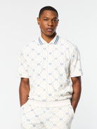 Crafted from luxurious printed velour, our Cosimo Zip-Up Polo features an all-over 'ST' monogram motif and double stripe tipping accents for an elevated look. Exuding sophistication and comfort, this premium full-zip polo transitions seamlessly from everyday outings to nightlife vibes.Pair with the Cosimo Velour Short for the full fit. (Sold separately)