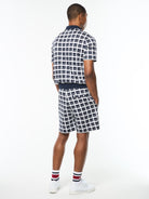 A fresh spin on a long-time Tacchini classic. The Damarindo Check Short features an all-over custom jacquard check pattern derived from our iconic Damarindo double stripe for a breezy, youthful vibe. Topped with a solid rib-knit waistband for comfort and convenience, these premium shorts keep you classy both on and off the court.