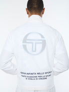An elevated spin on classic athleticwear. The Faro Track Jacket is crafted with a translucent stretch ripstop exterior featuring sports-inspired Italian slogans embroidered at the lower back. A solid inner lining boasts branded stripe taping down the sleeves and an oversized 'ST' monogram at the back, creating a visual effect through the ripstop shell. Gioia infinita nello sport!Pair with the Faro Track Pant for the full fit. (Sold separately)
