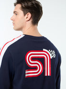 Fuel your fit with racing heritage. Our Macchina Long Sleeve Tee features racing stripes down the sleeves and custom 'ST' racetrack artwork at the back for a bold trackside statement. Midweight French terry keeps things comfortable from the street to the stands.