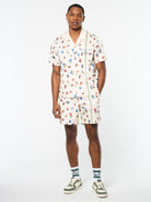 - Relaxed resort silhouette w/ camp collar