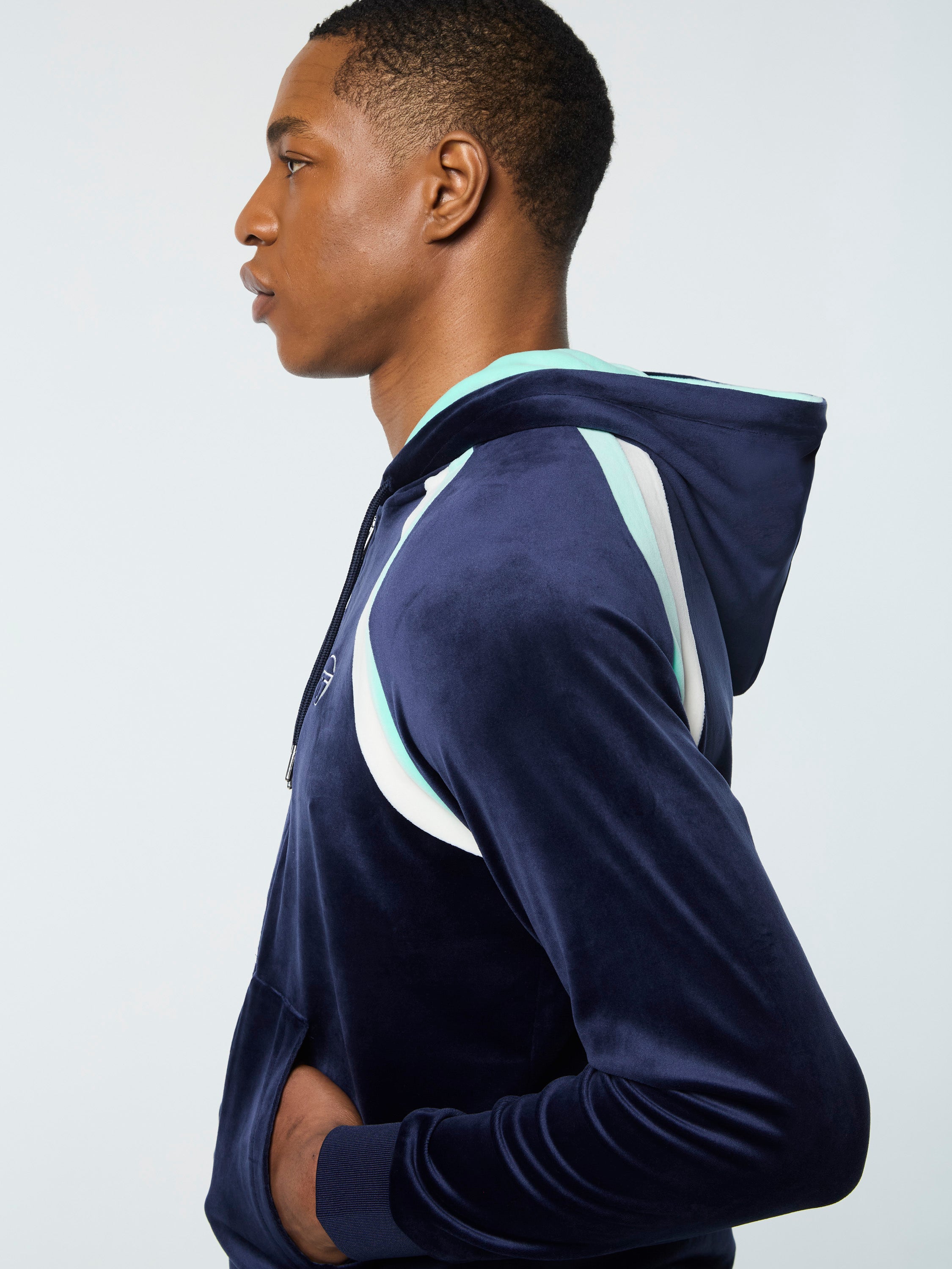 Cosimo Velour Zip-Up Polo- Faded Denim