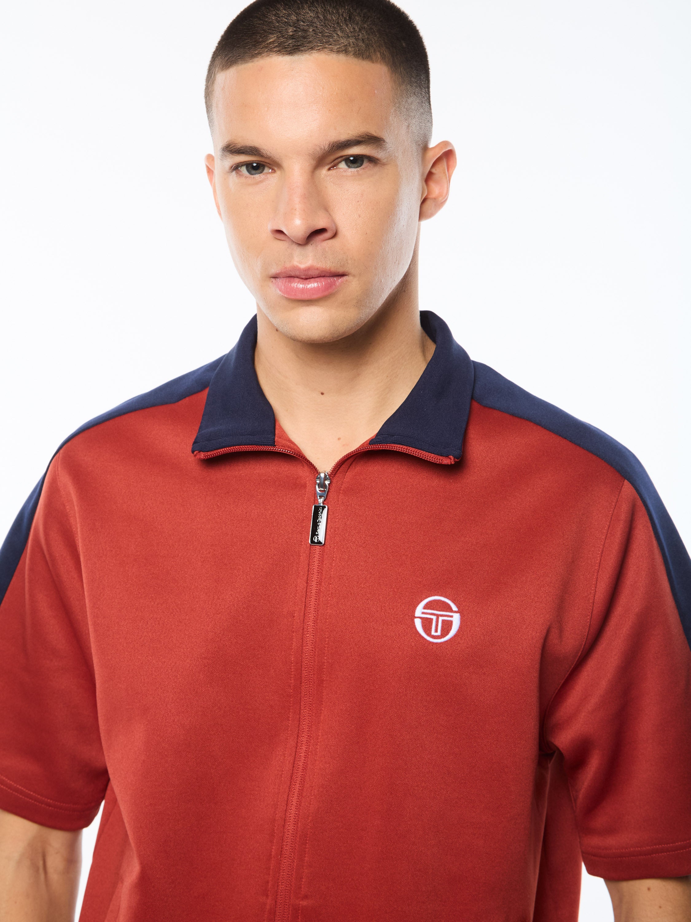 A premium spin on retro sportswear, the Viscotti Short Sleeve Track Jacket is crafted from poly cotton double knit and features contrast-color panels on sleeves for a sporty vibe. This full-zip track top elevates everyday leisurewear into luxury and is complete with an embroidered 'ST' monogram logo at left chest and welt pockets.