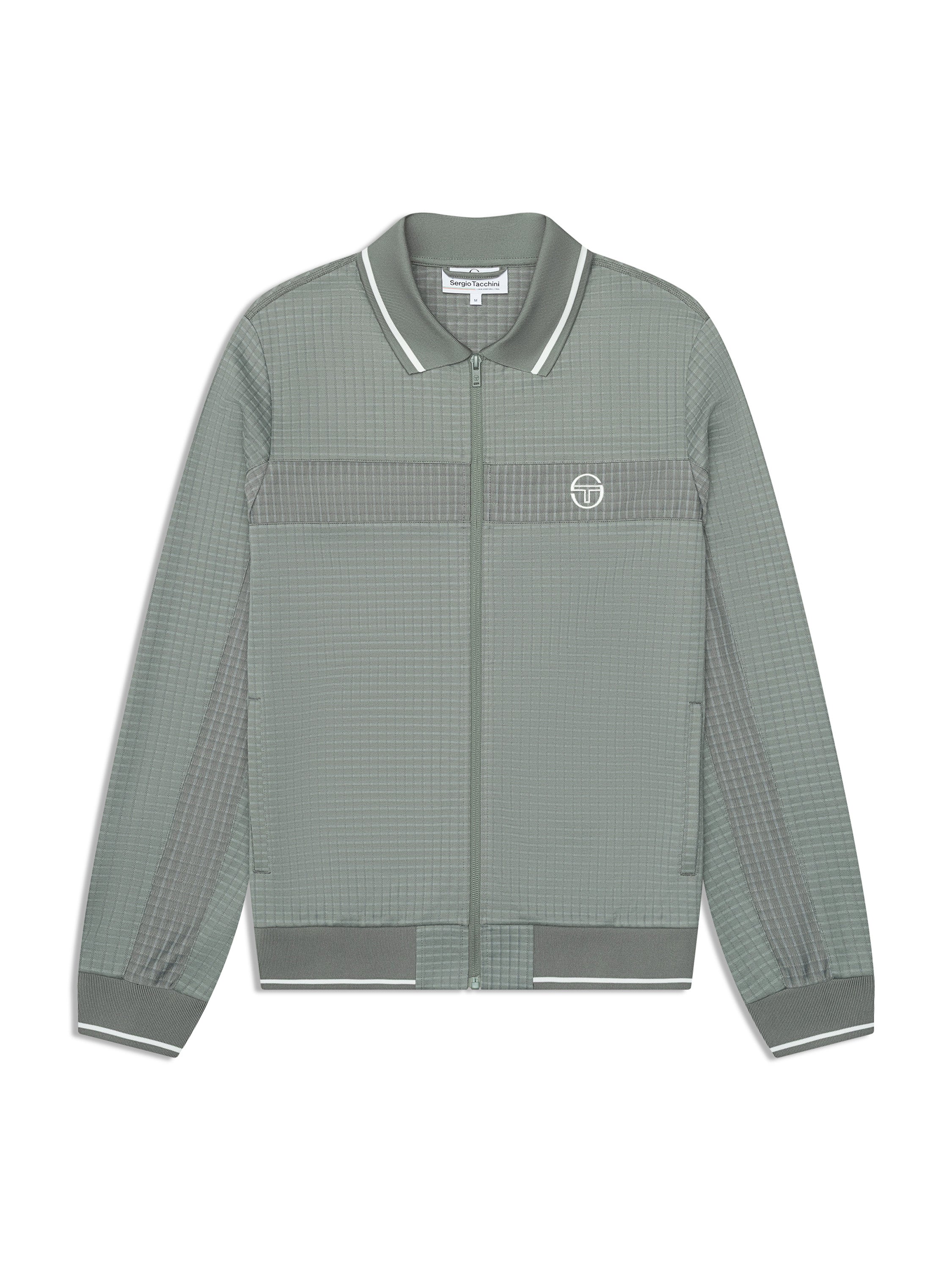 Classic track style gets a refined refresh with the Rete Track Jacket. Crafted from a comfortable jacquard knit blend with stretch, it features allover check patterning that adds a sharp, elevated look while staying rooted in Sergio Tacchini's sport heritage. Designed with a full-zip front and clean finishing, it's completed with signature Tacchini branding for an unmistakable touch.