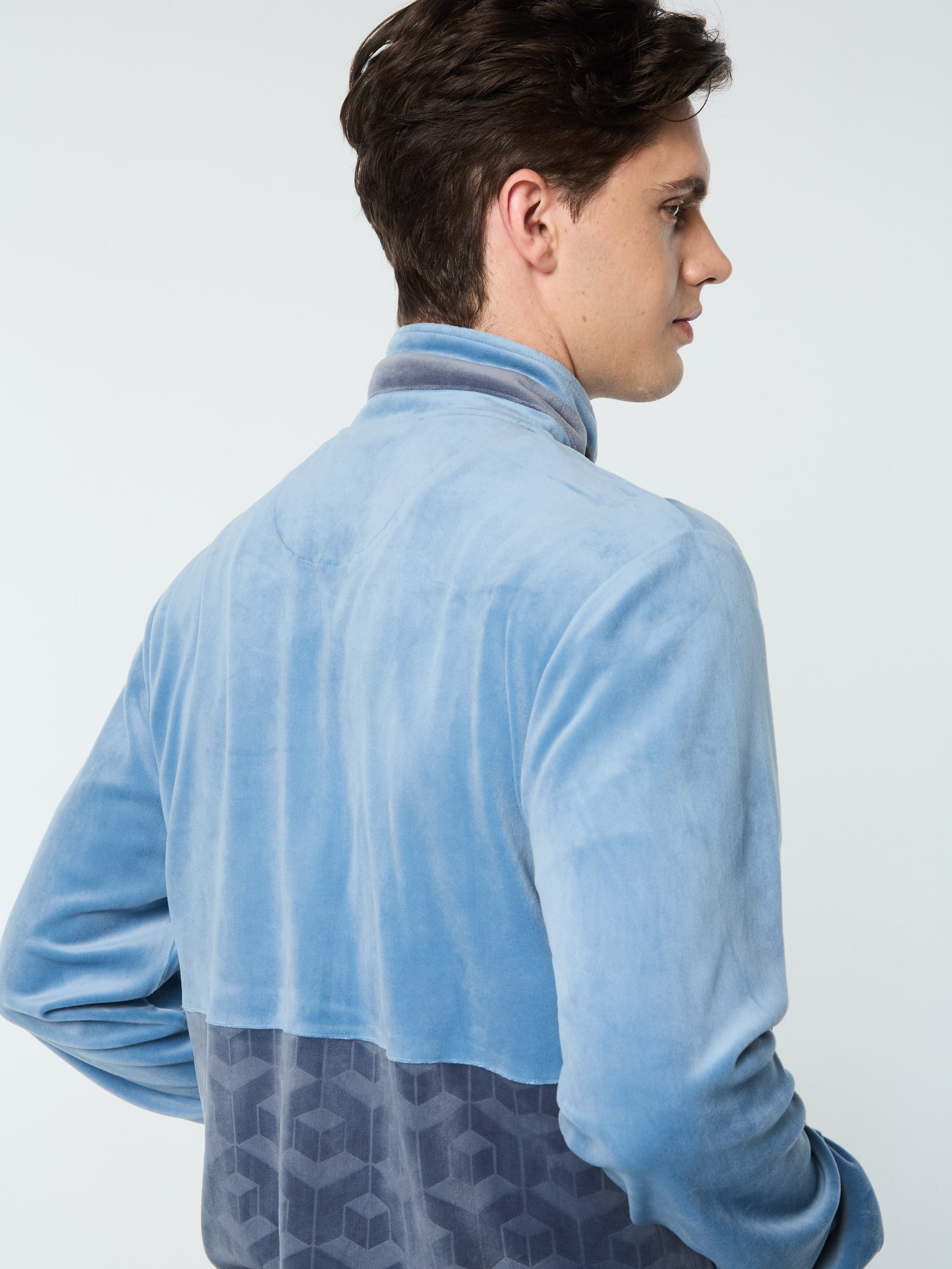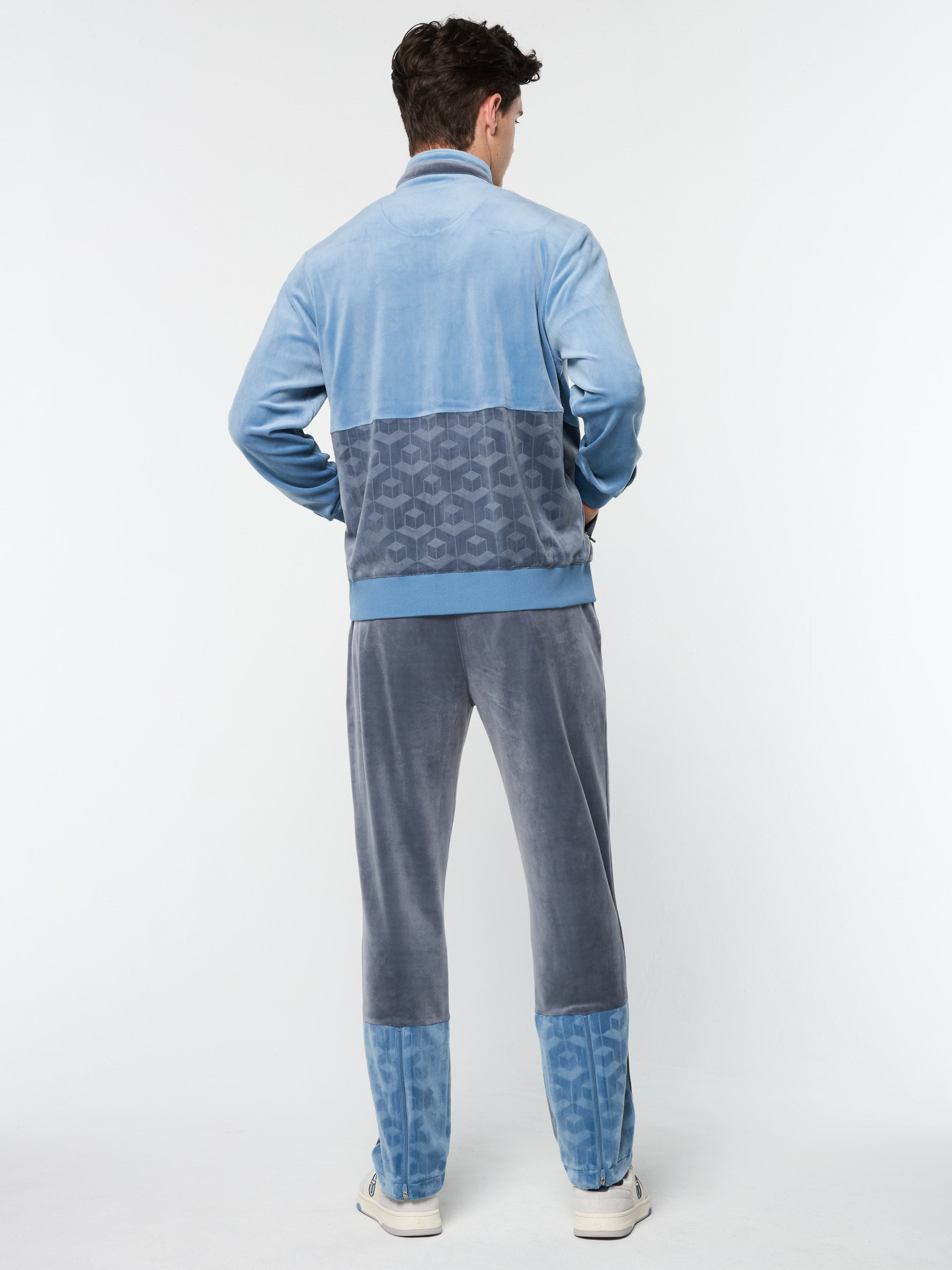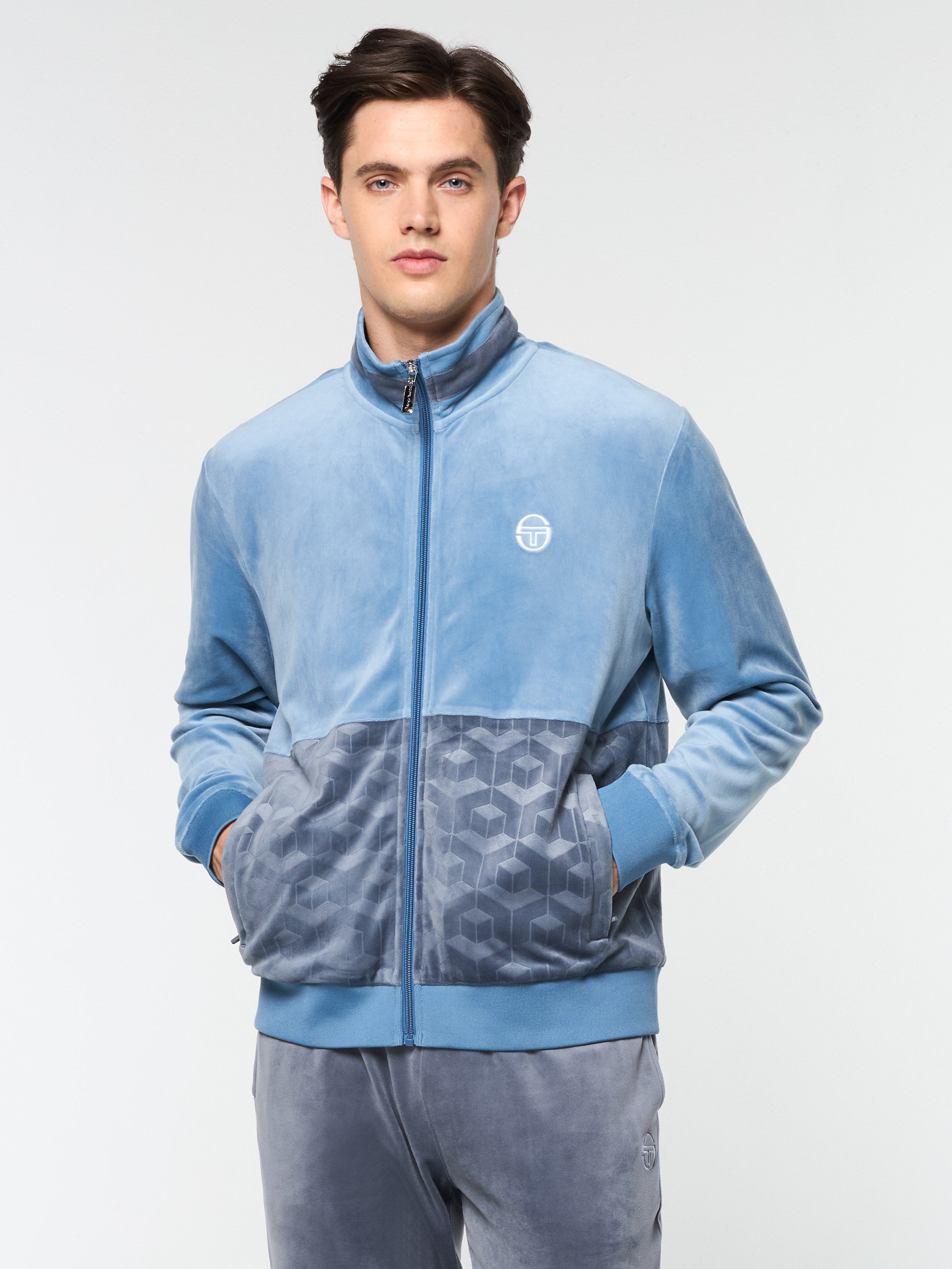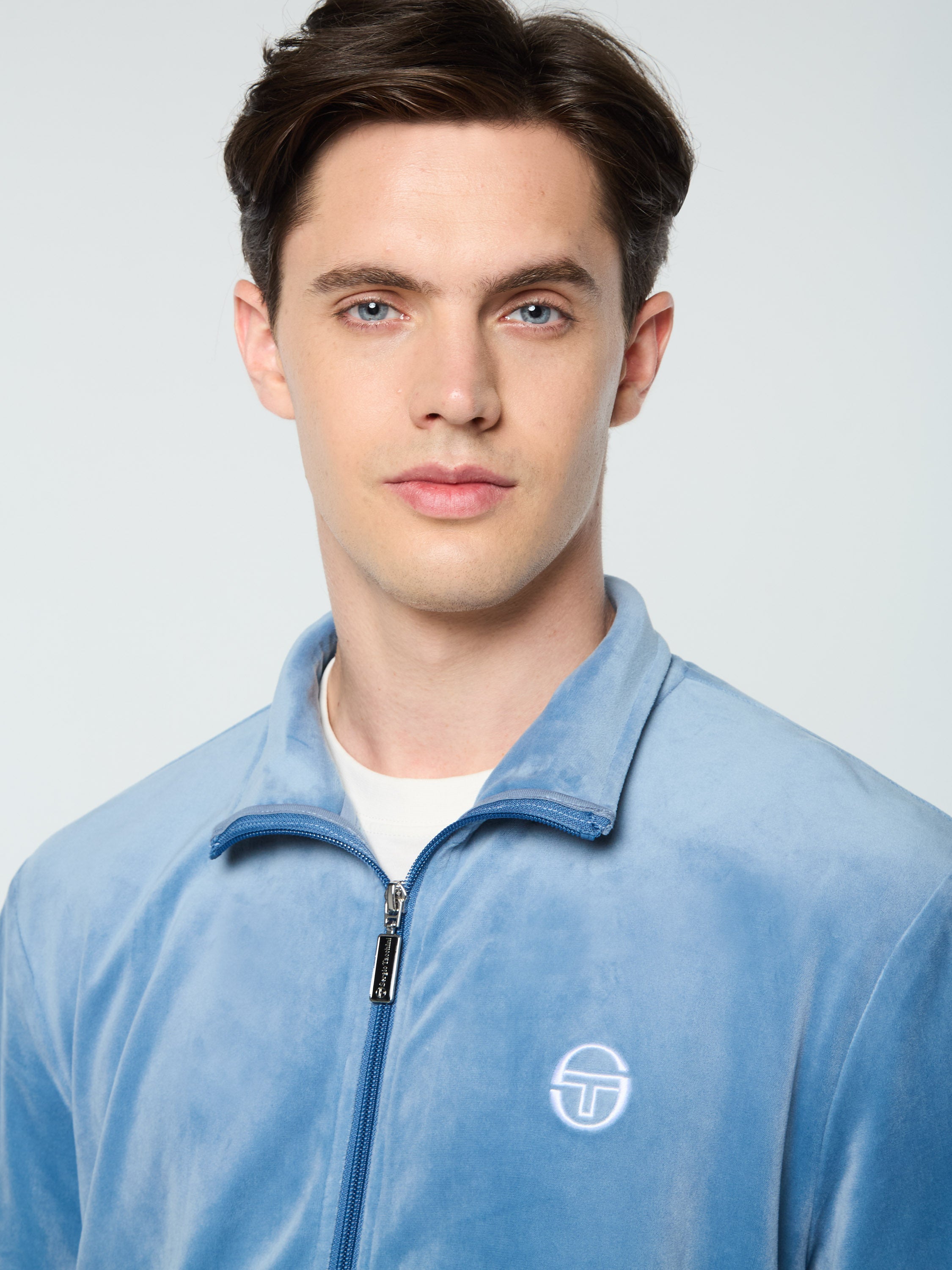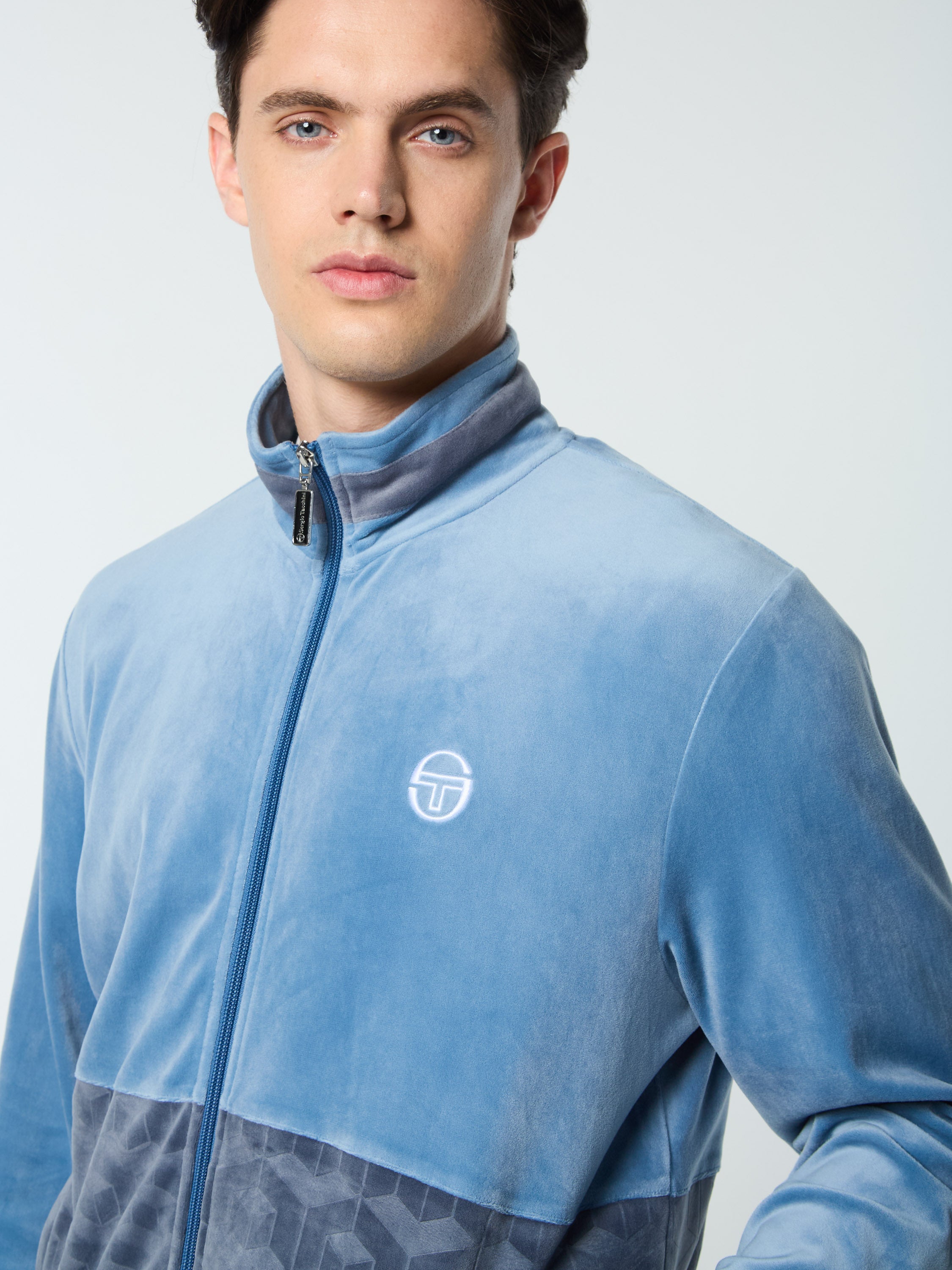 Foggia Velour Debossed Track Jacket- Coronet Blue