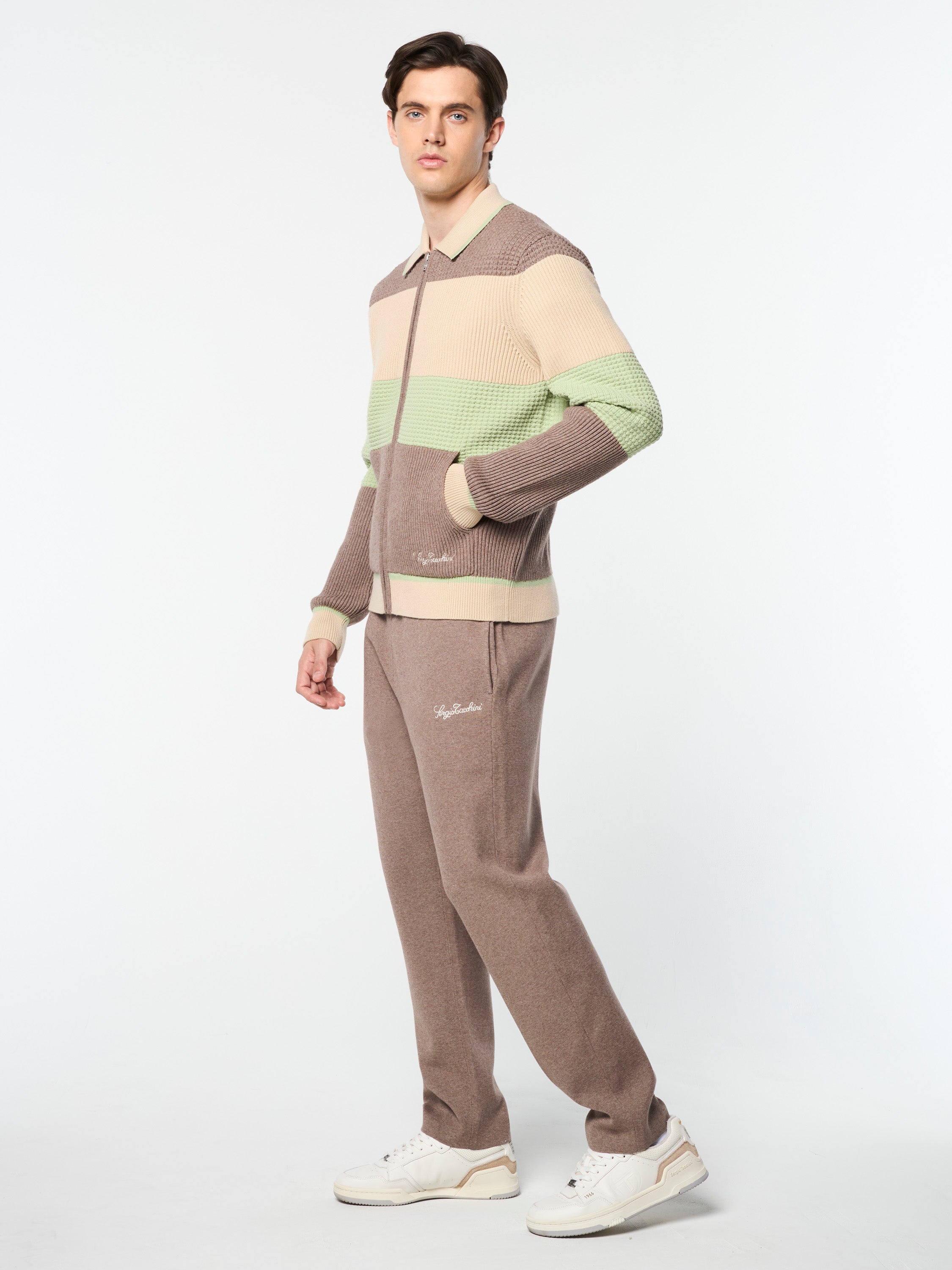 Paolo Knit Track Jacket- Taupe Grey