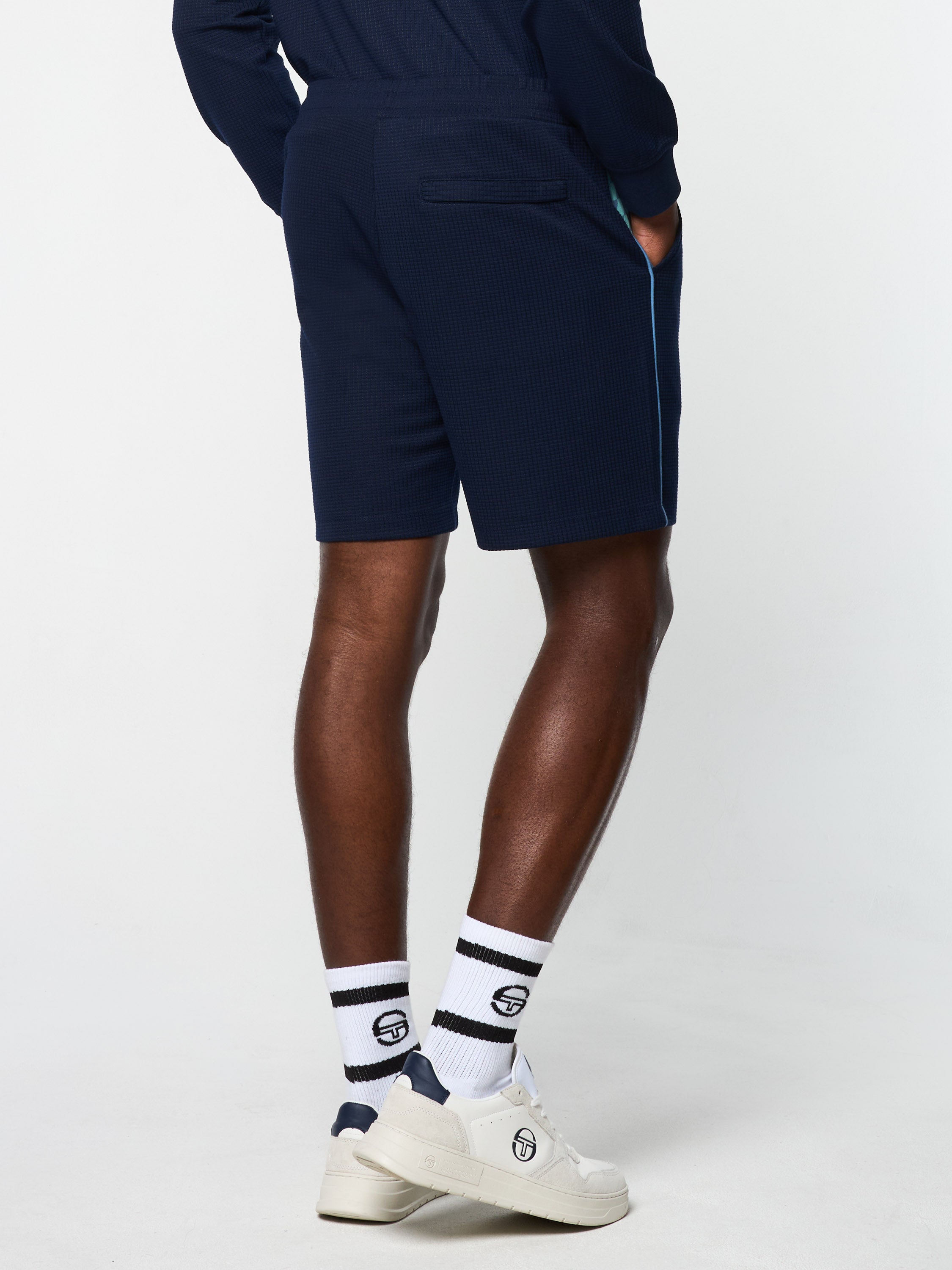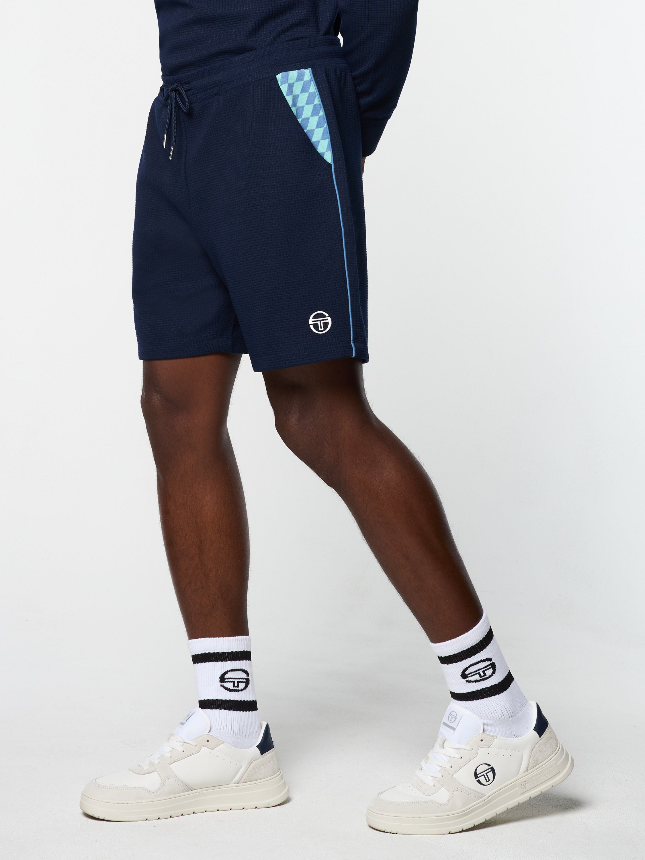 A fresh take on performance sportswear, the Cialda Short is crafted from textured waffle knit featuring a retro pop color checkerboard print at the pockets to keep you stylish and comfortable from morning warm-ups to evening outings. Accented with contrast piping details, these premium shorts are complete with our iconic 'ST' monogram logo embroidered at the hem.Pair with the Cialda Half Zip & Polo for the full fit. (Sold separately)