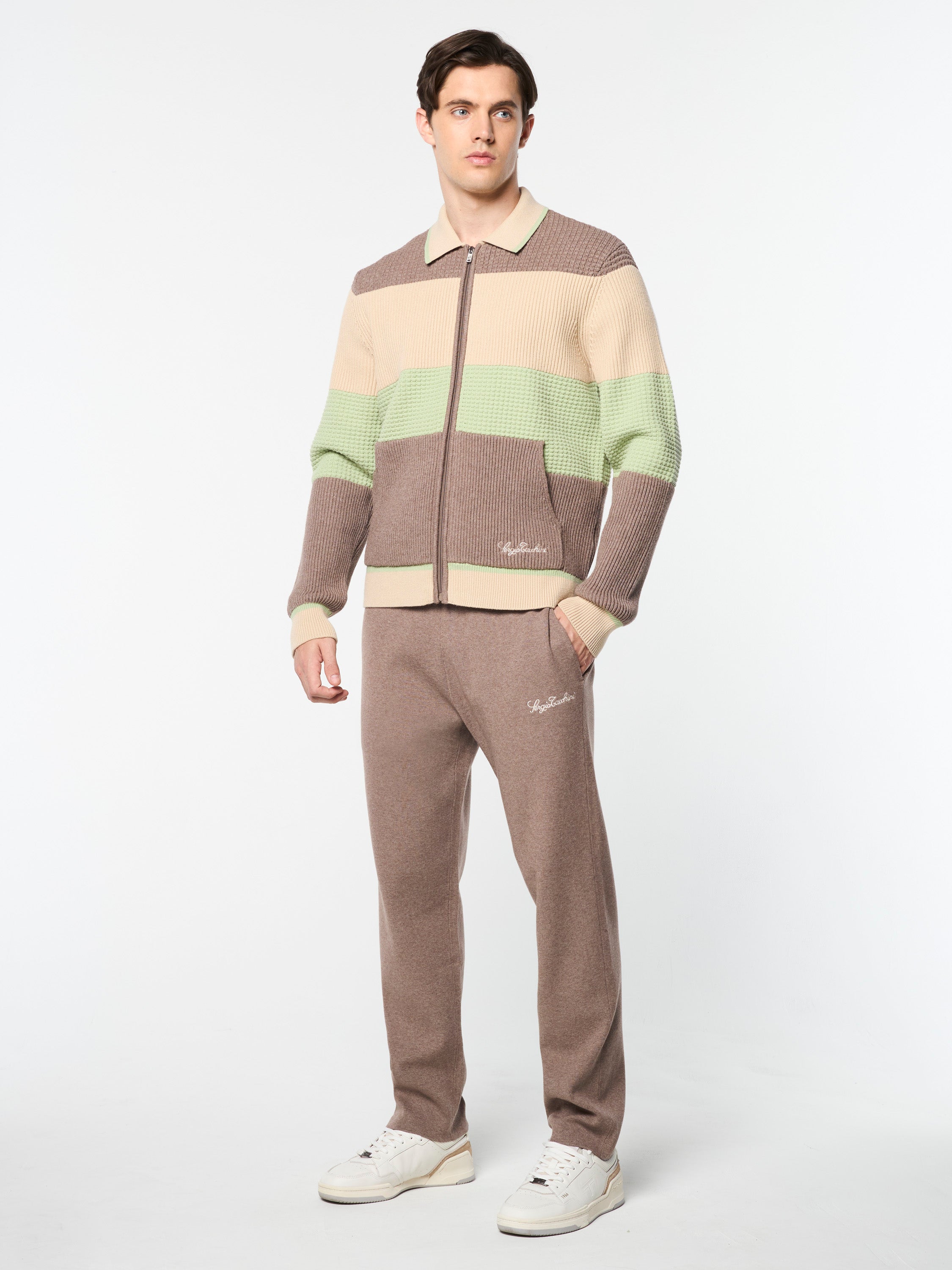 Our premium Enzo Striped Track Jacket is crafted from luxurious Athena yarn that's breathable, moisture-wicking, and exceptionally soft to the touch with a sweater-like feel. Designed with exquisite attention to detail, this elevated track jacket is constructed in mixed cardigan and waffle knit panels for a multi-textural, color-blocked finish.Pair with the Enzo Track Pant for the full fit. (Sold separately)
