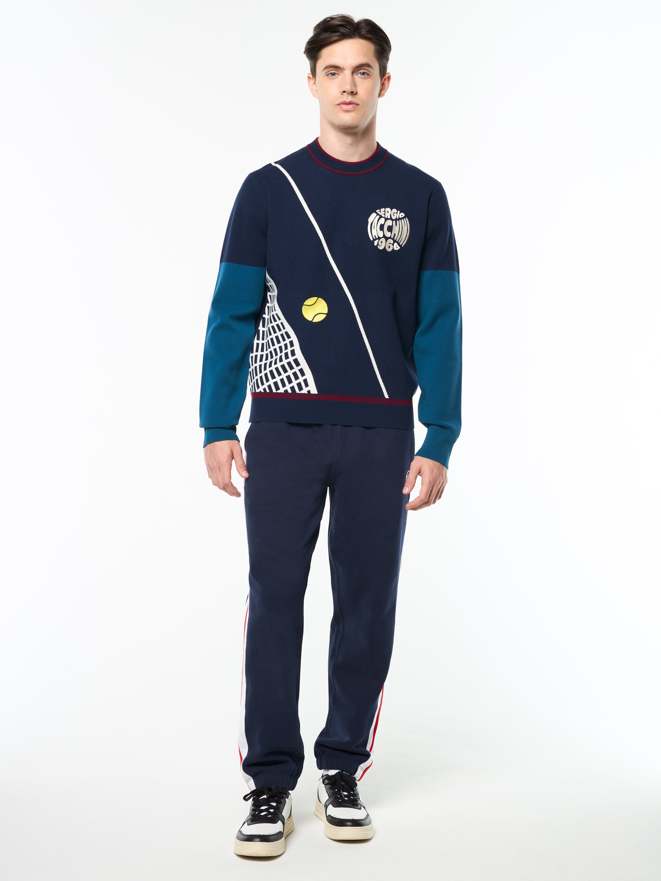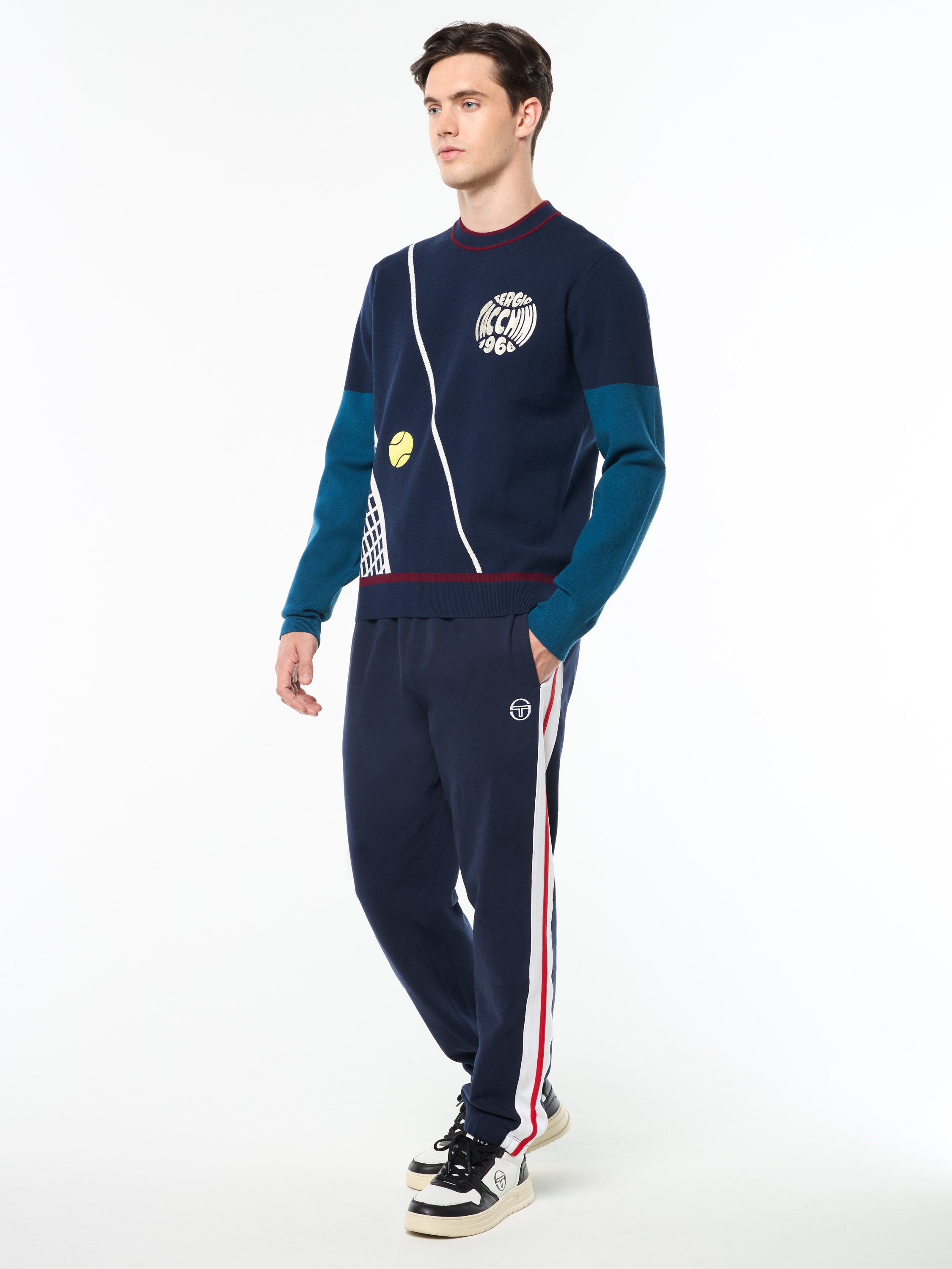 The Nota Crewneck redefines casual luxury with a refined combination of comfort and craft. Spun from high-quality Athena yarn—an eco-conscious viscose blend prized for its breathability, moisture-wicking performance, and soft hand feel—this premium layer is constructed using an artful birdseye-back knit that drapes effortlessly while maintaining structure. Finished with custom embroidered tennis artwork and color-block hits, the Nota unites timeless sport with elevated sophistication.