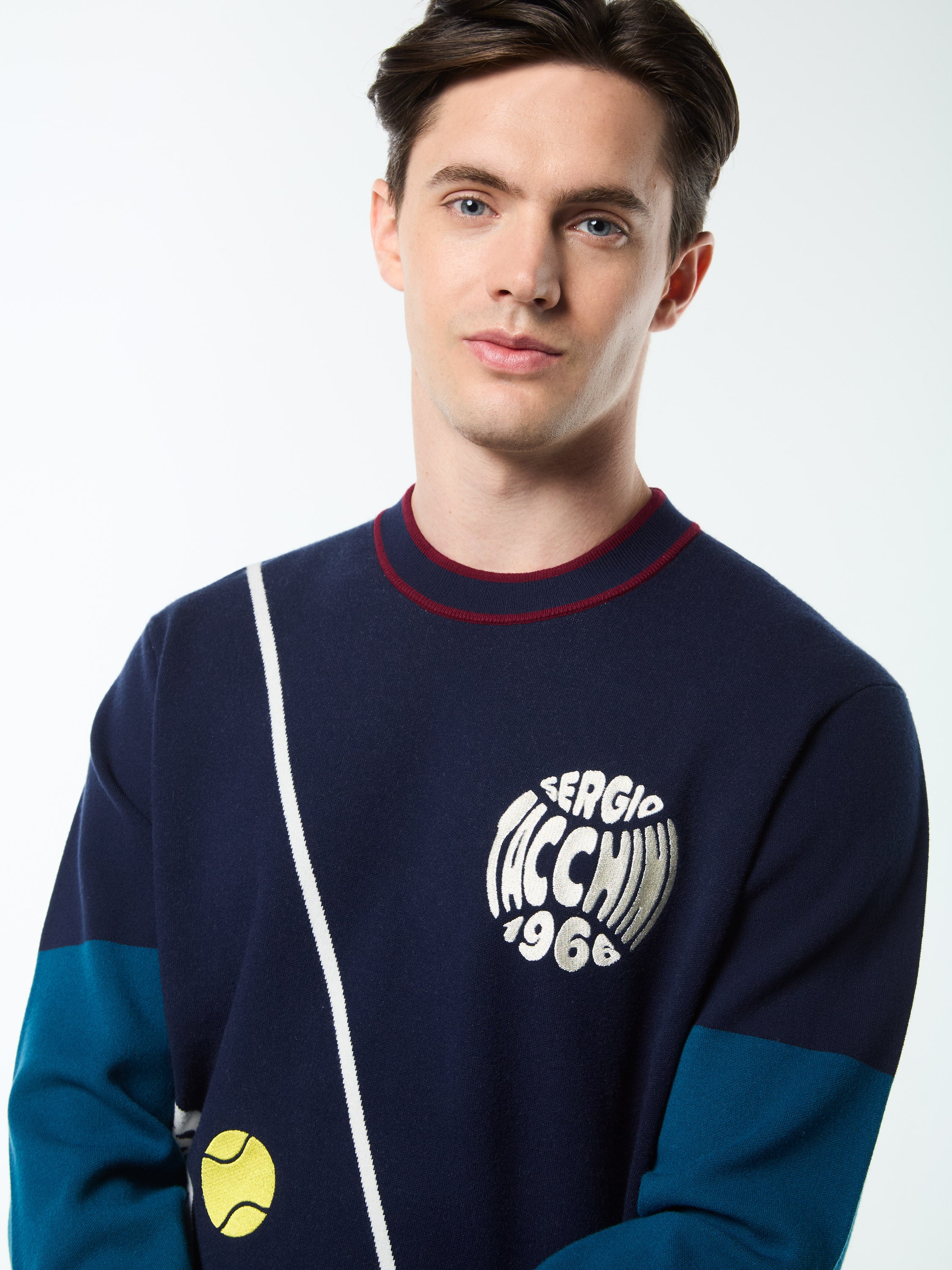 - Custom embroidered Sergio Tacchini tennis artwork at front